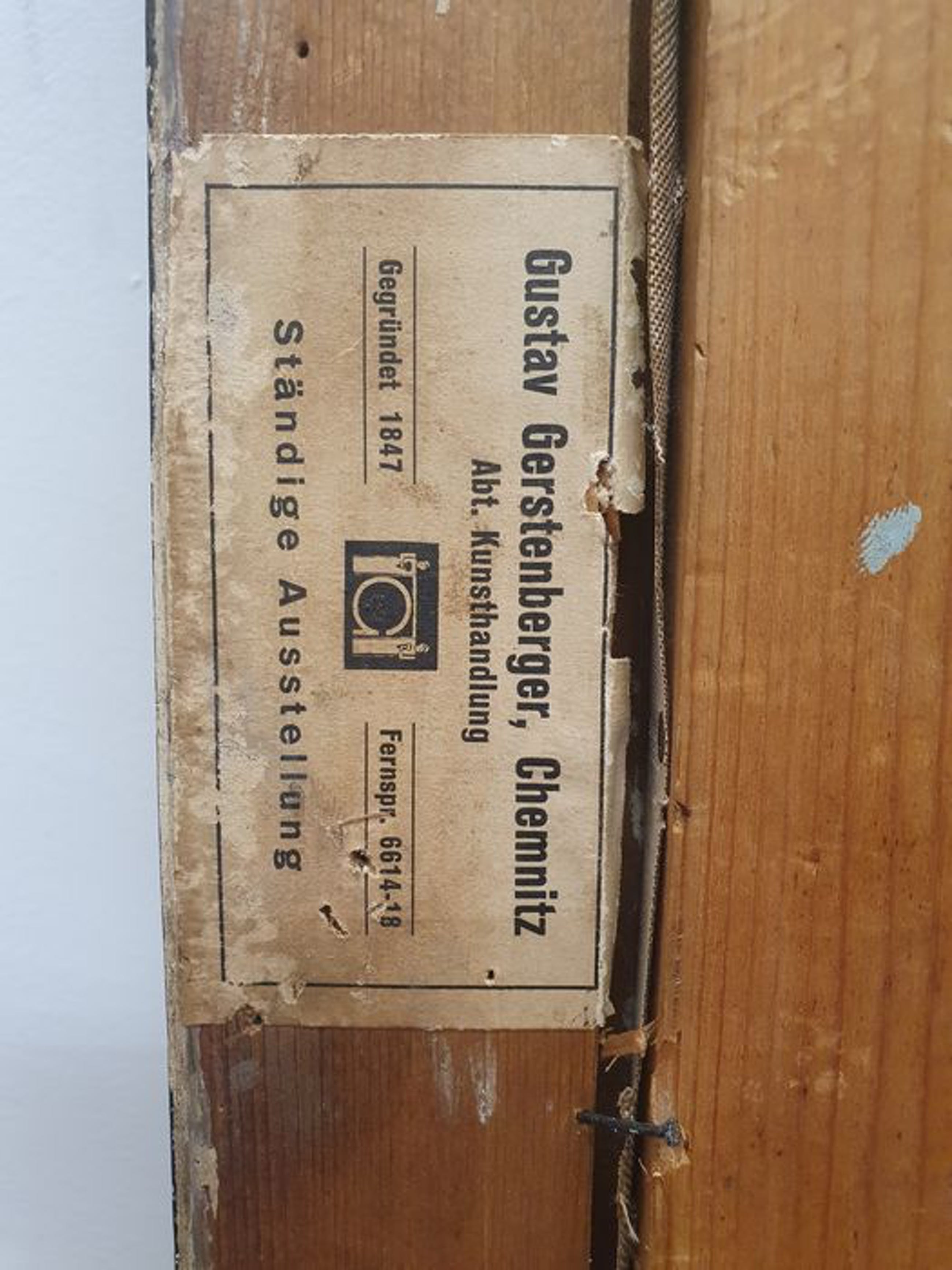 Tekst achterzijde: Gustav Gerstenberger Chemnitz Abt. Kunsthandlung (Kunsthandel) Gegründet 1847 - Fernspr. (Opgericht 1847) Ständige Ausstellung (Permanente tentoonstelling)