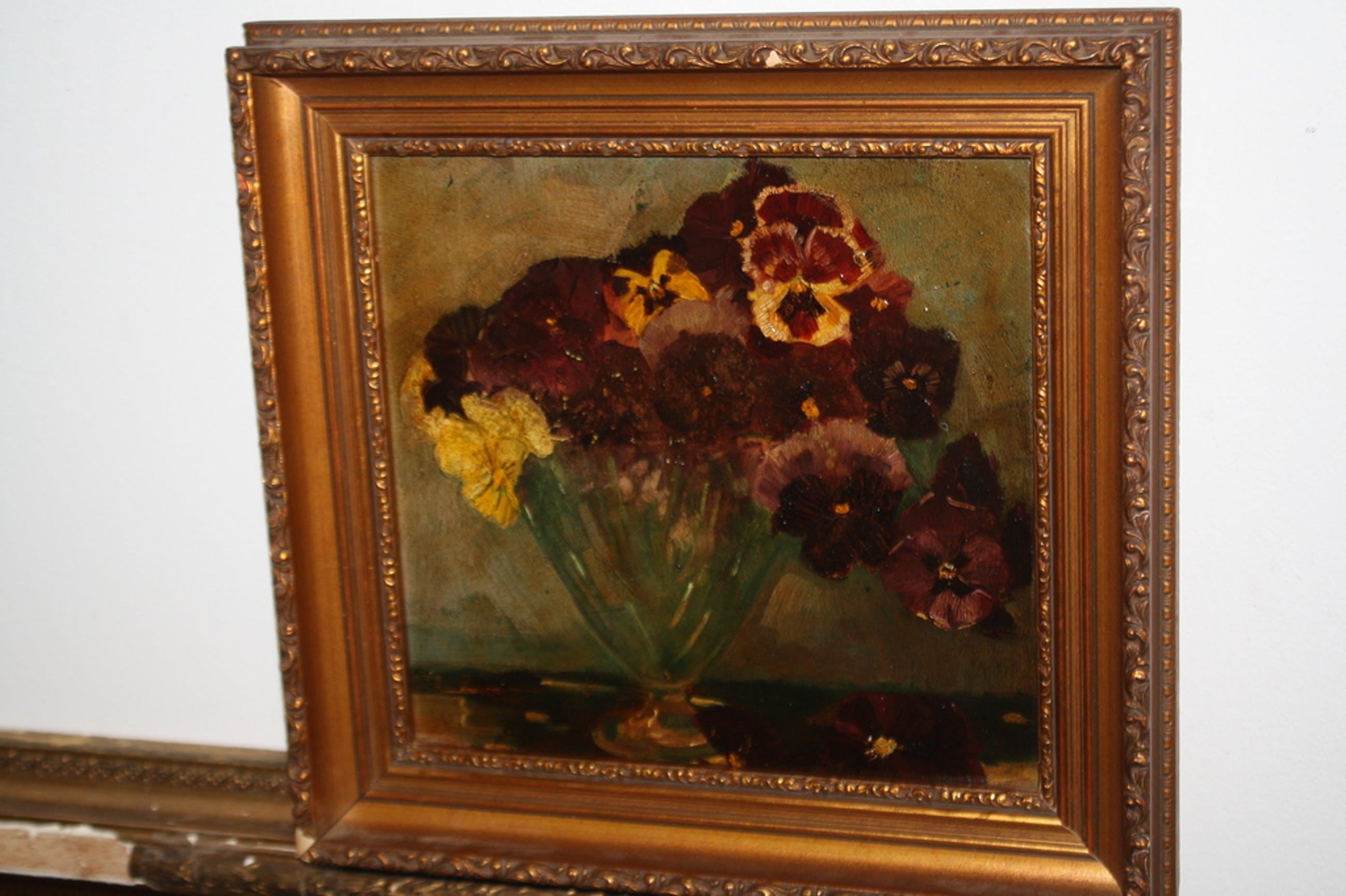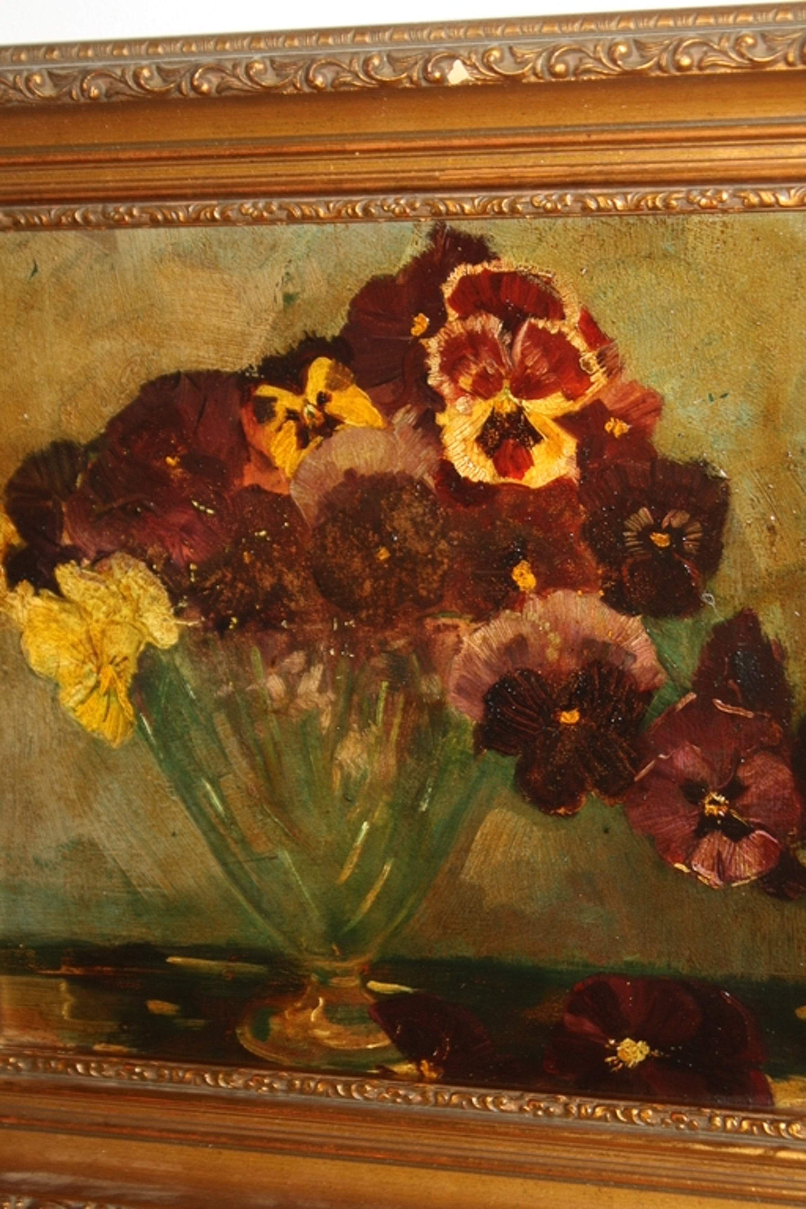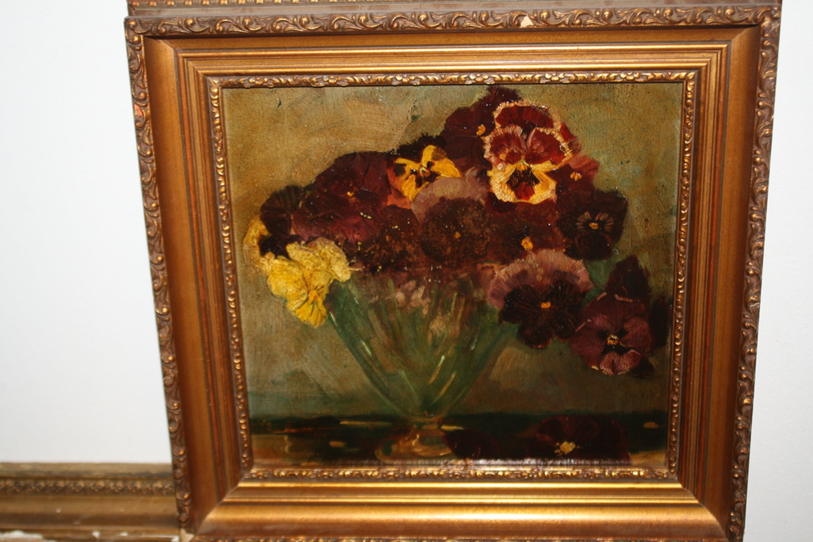 OLIEVERF OP KARTON UIT DE JAREN 30 IN DE MAAT 24 X 25 CM