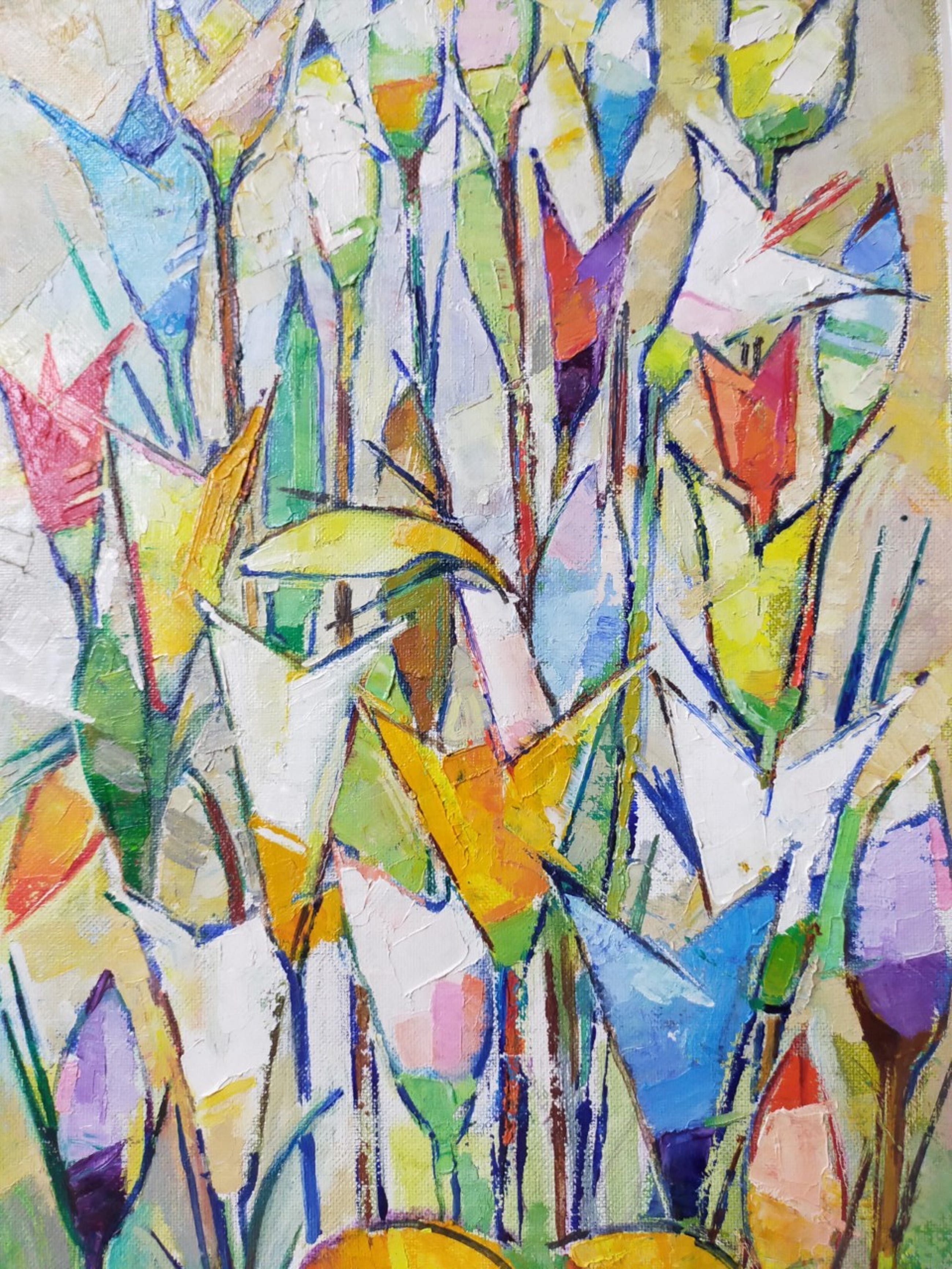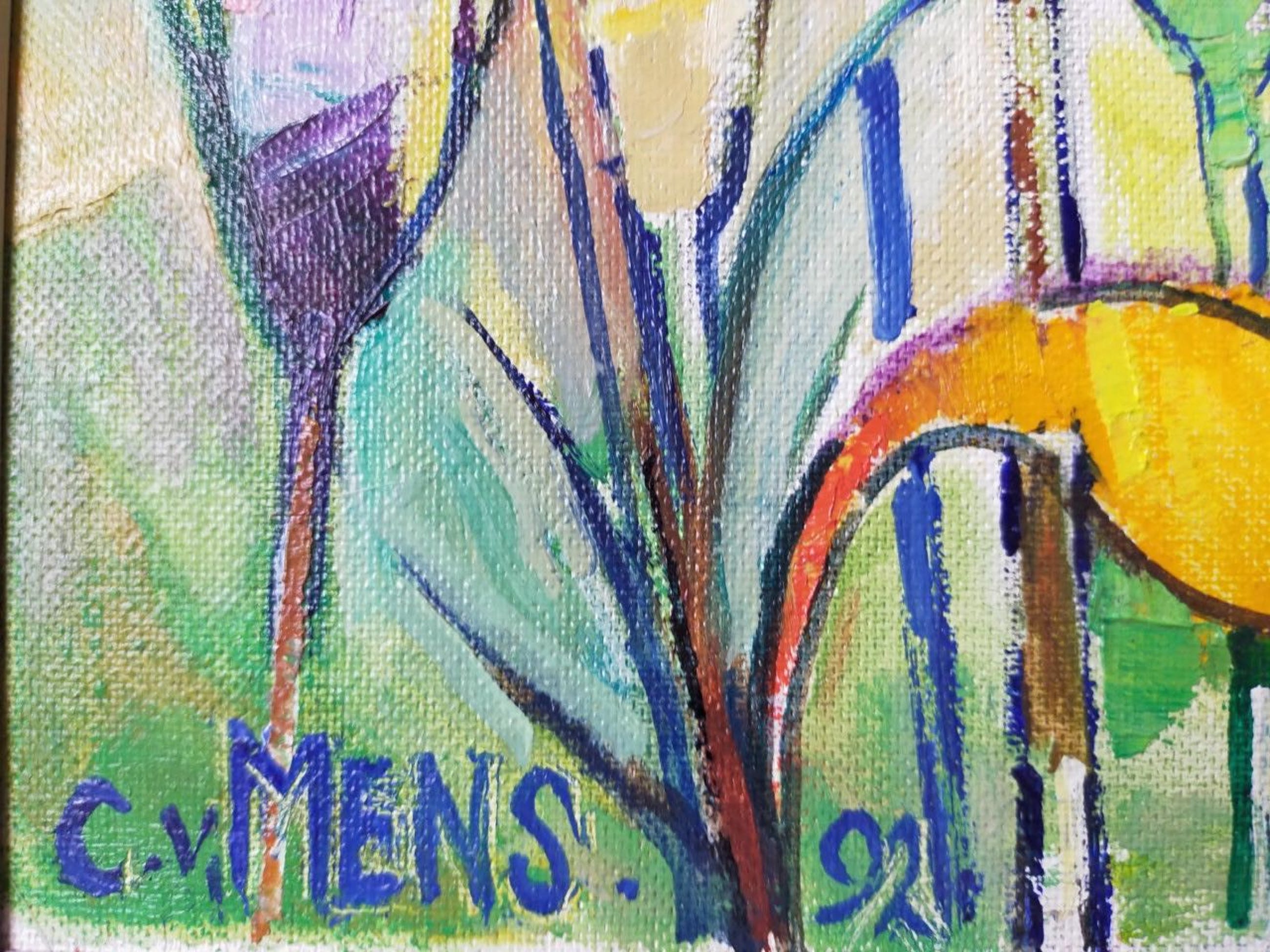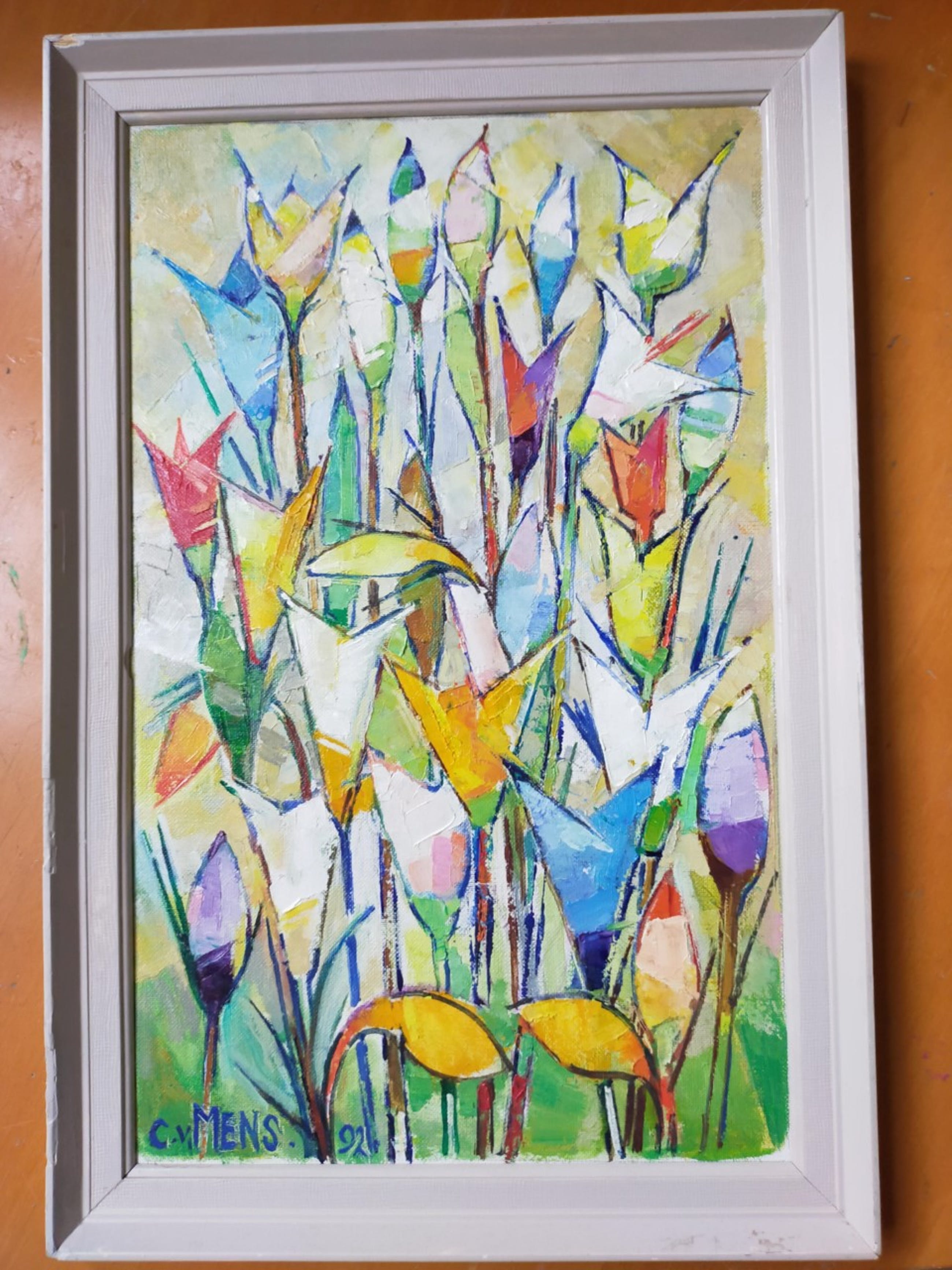 Kleur-rijk, pasteus werk van C van Mens (1915- ? ) - ooit op veiling kunnen kopen met bijzonderheden kunstenaar C van Mens - kan helaas niets van vinden op het internet.. spijtig want is fraai werk, mes & kwast.. Verdiend m.i. ander type lijst....