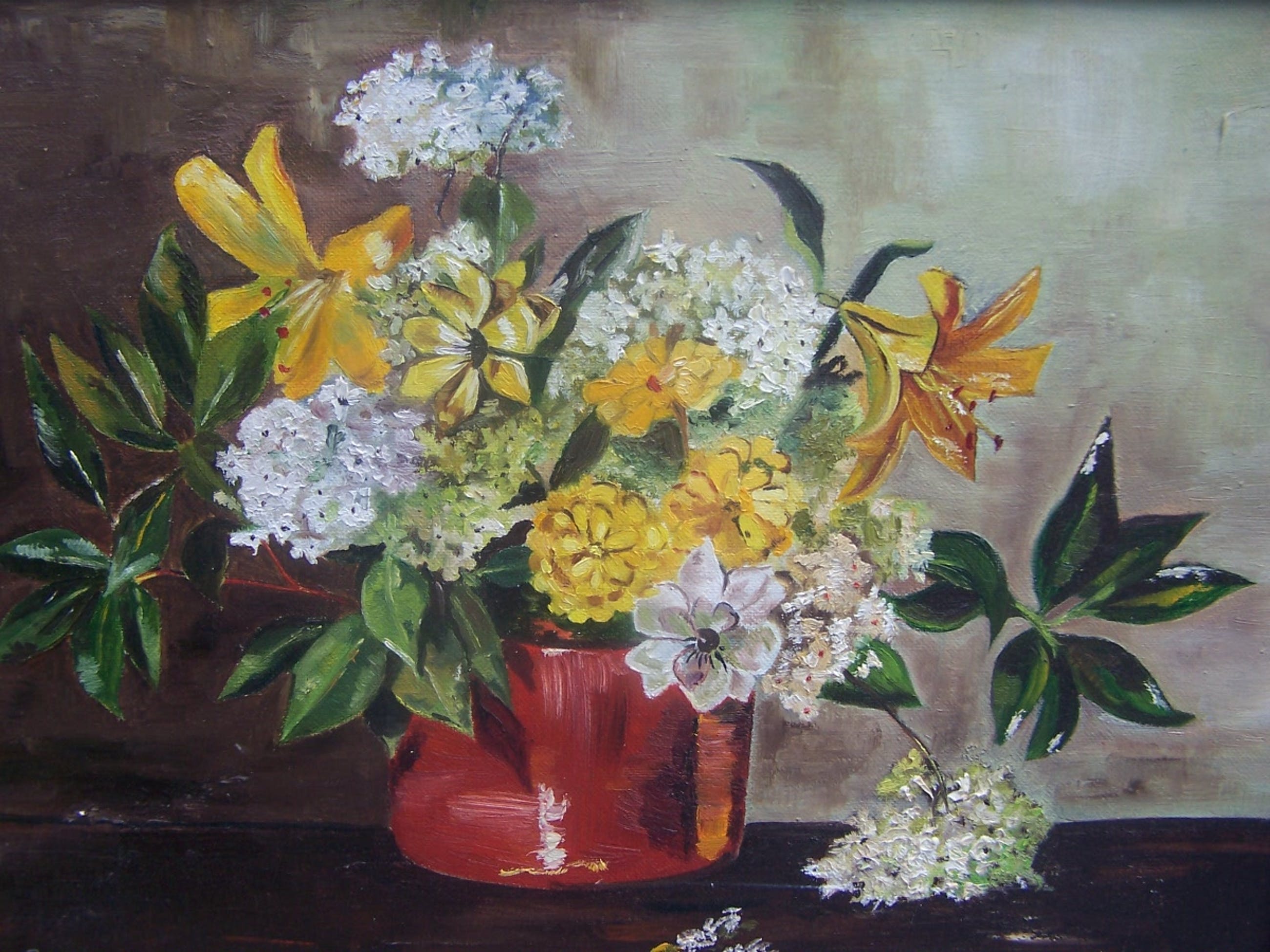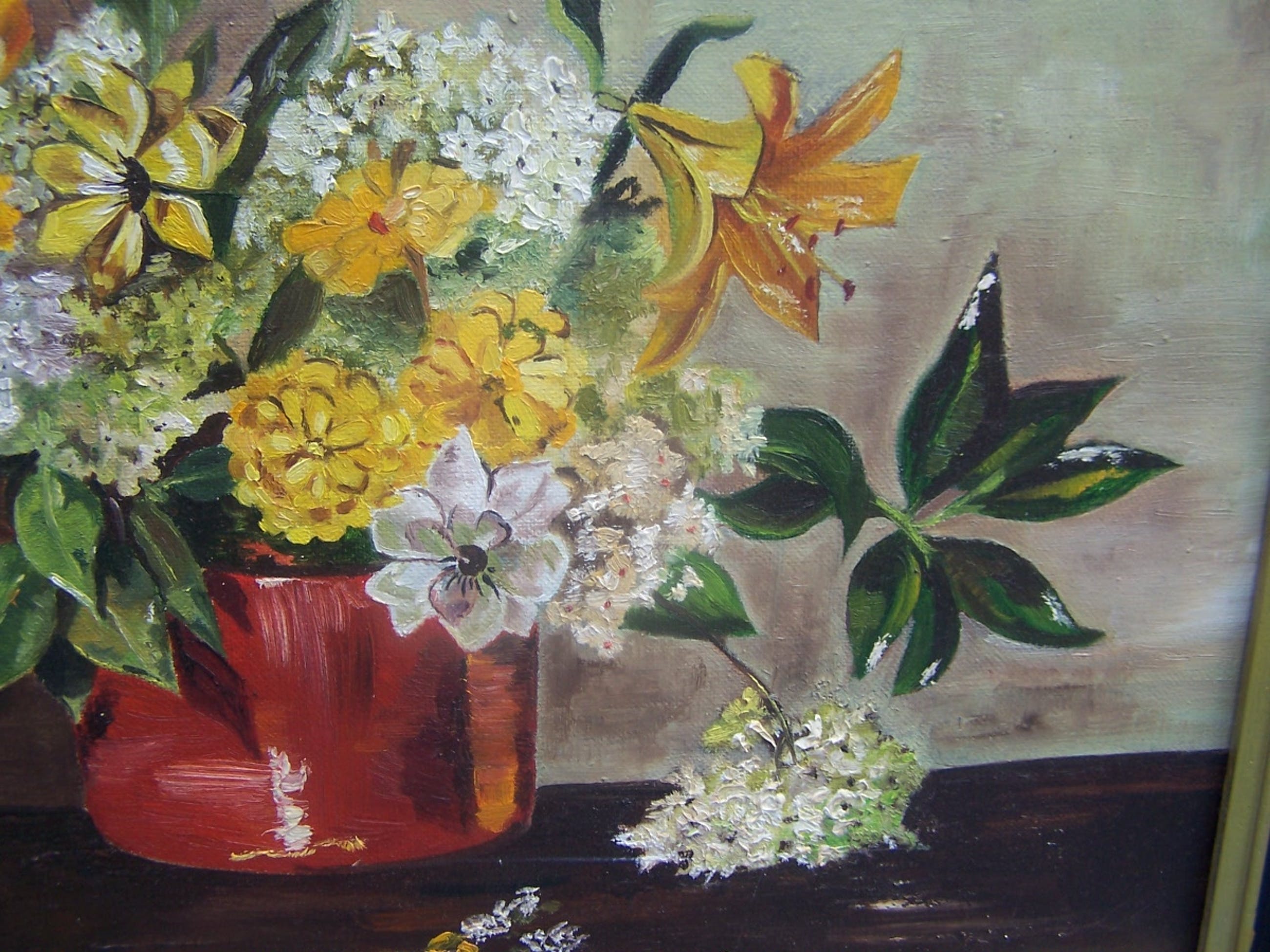 Doek en lijst zijn in goede condtitie. De kleuren zijn mooi helder