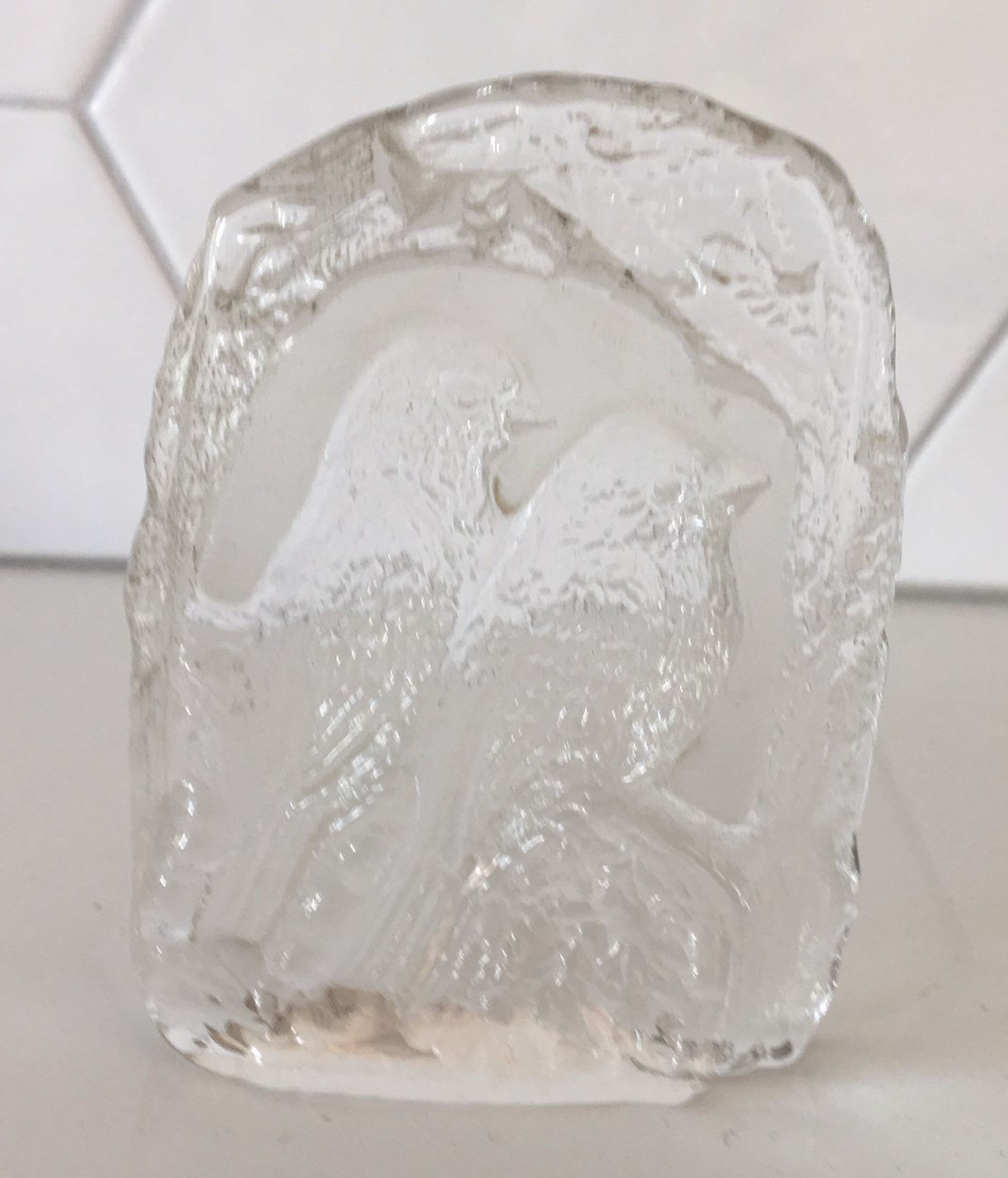 Niet of onleesbaar gesigneerd - Blok glazen presse papier "twee vogels op een tak" kopen? Bied vanaf 1!