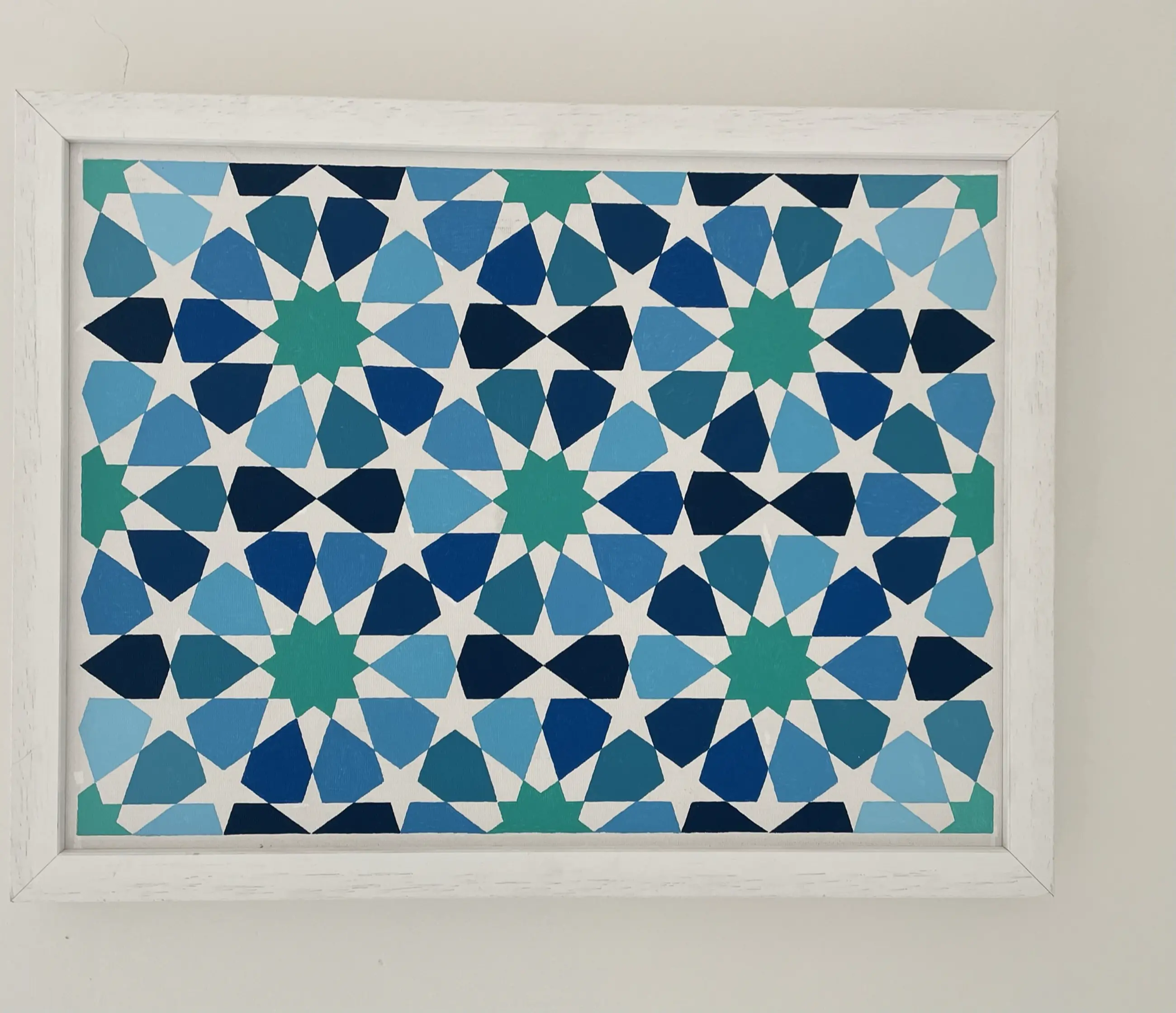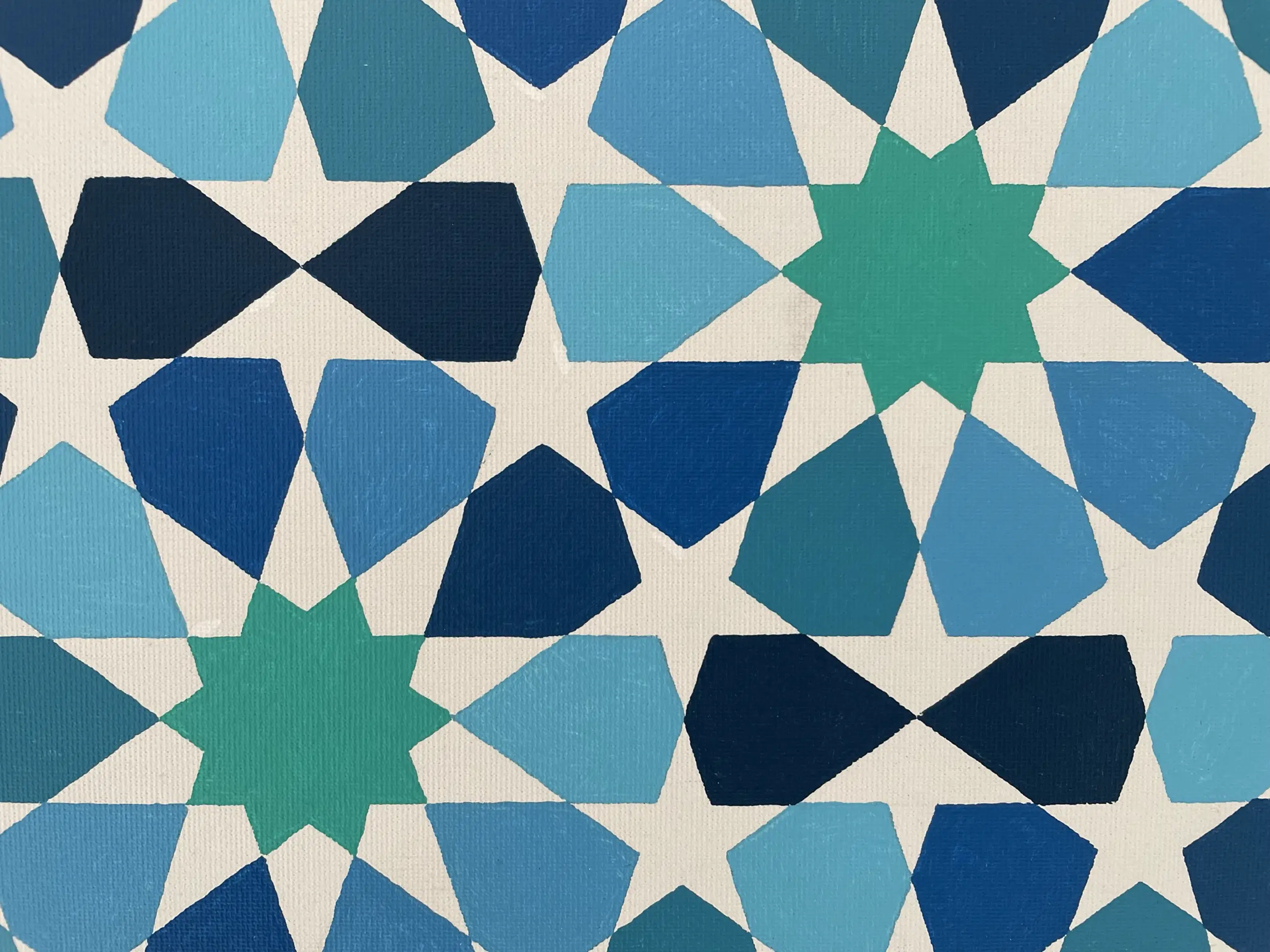 Ton Ensink levert ook kunst aan “ Werk aan de muur “ Ton is autodidact en schildert vooral geometrische patronen met acrylverf die hij soms combineert met papiersnijwerk. Hij is geïnspireerd door Victor Vasarely, Escher en islamitisch geometrische patronen. In zijn werk ziet hij kleur vooral als ondersteuning van de vorm.