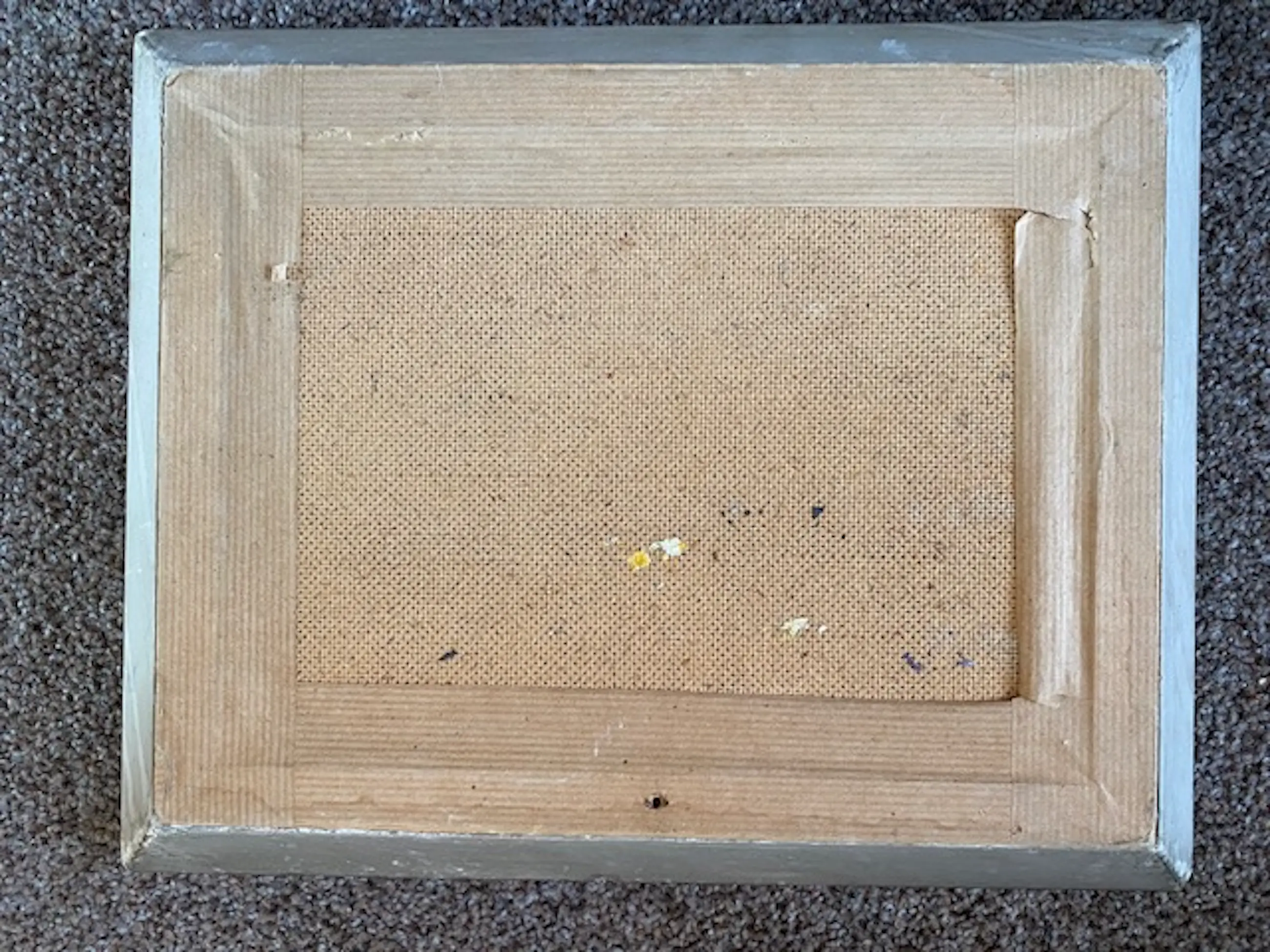 zowel het paneeltje als de originele houten lijst vertonen de gebruikelijke sporen van gebruik en ouderdom
