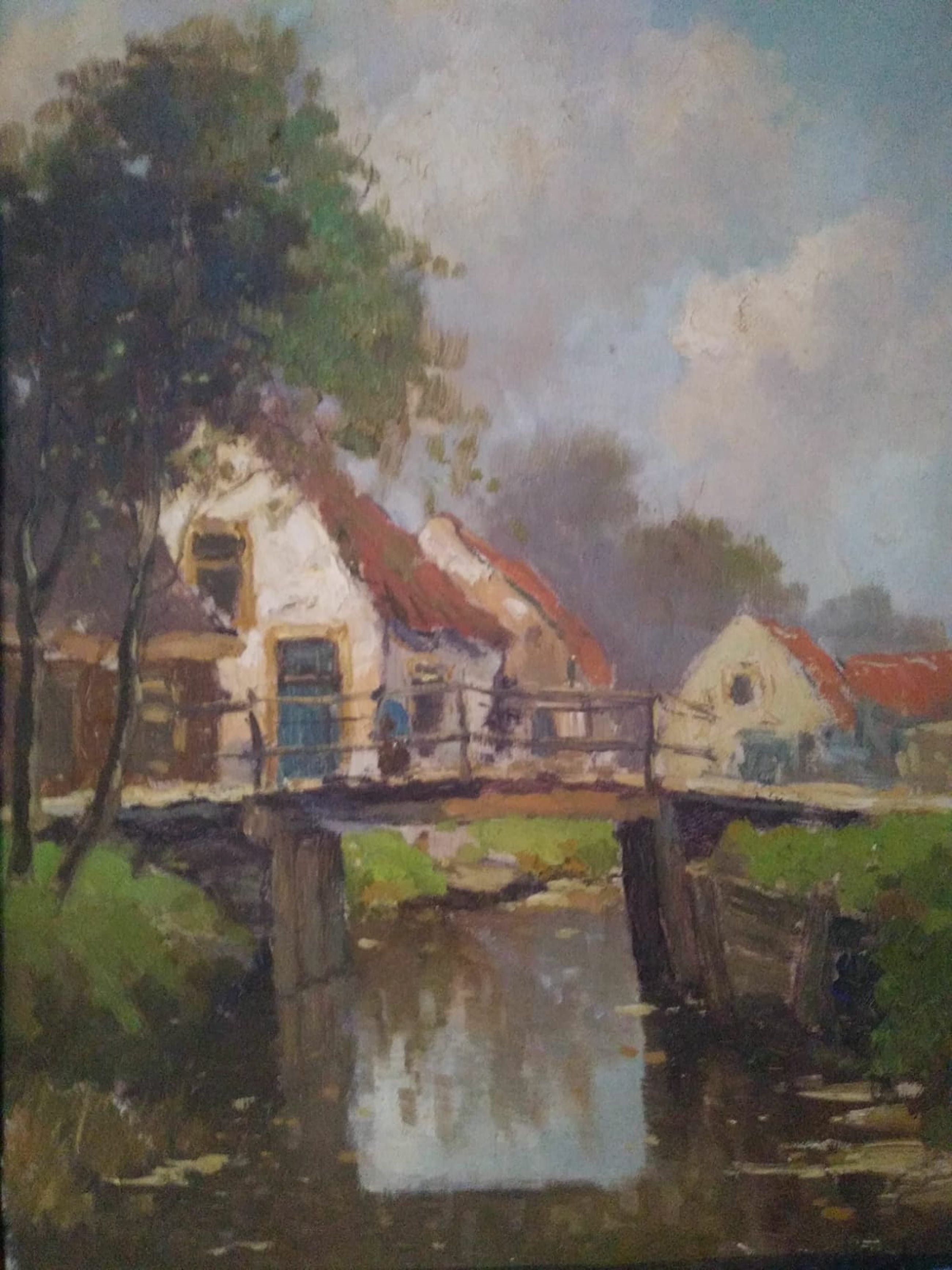 Boerderij aan een rivier door onleesbare meester zie foto.