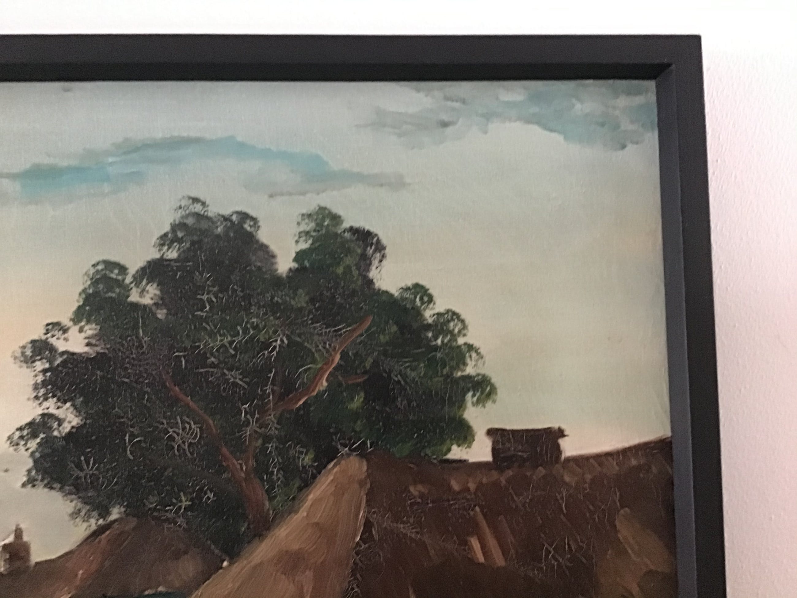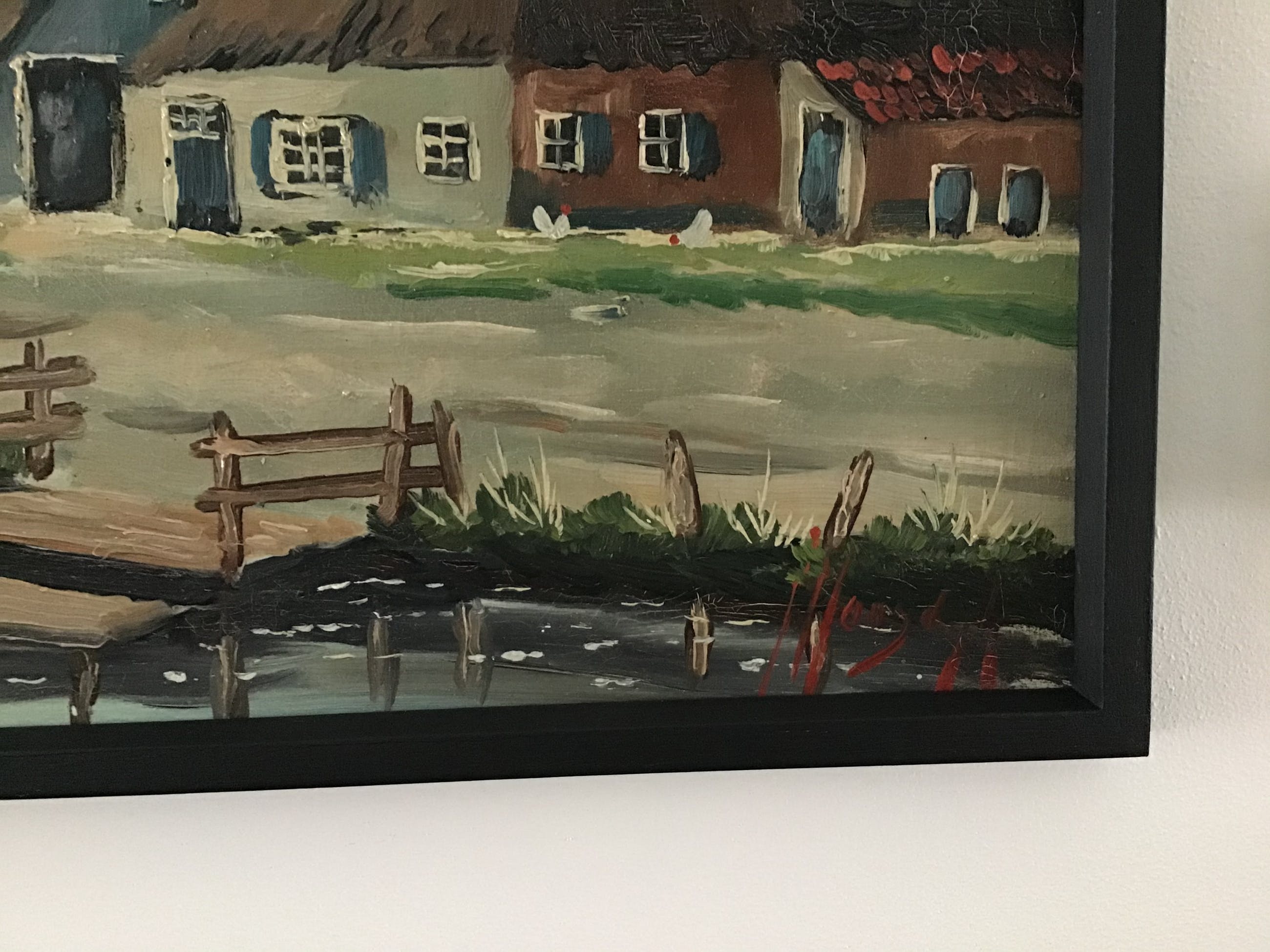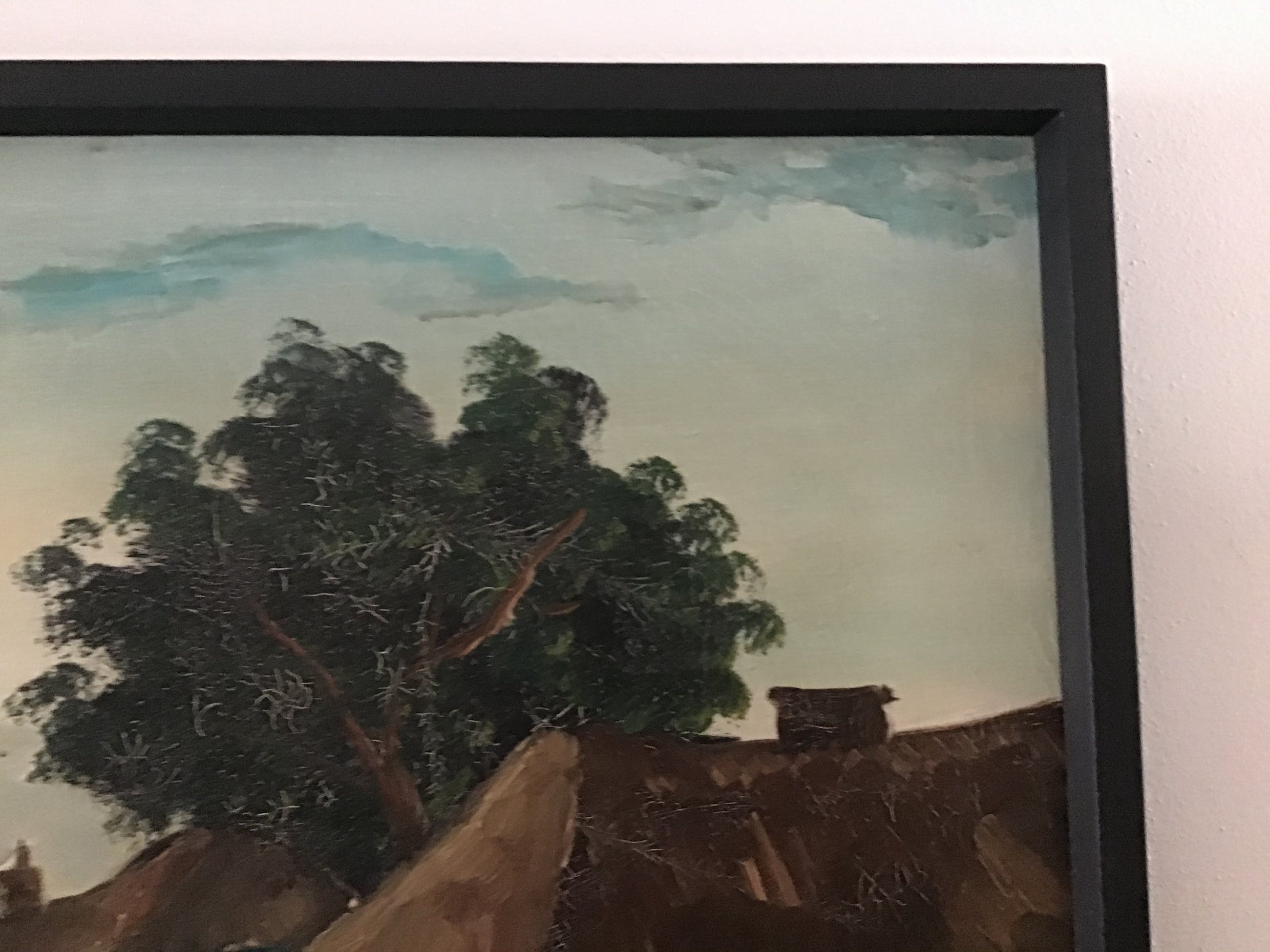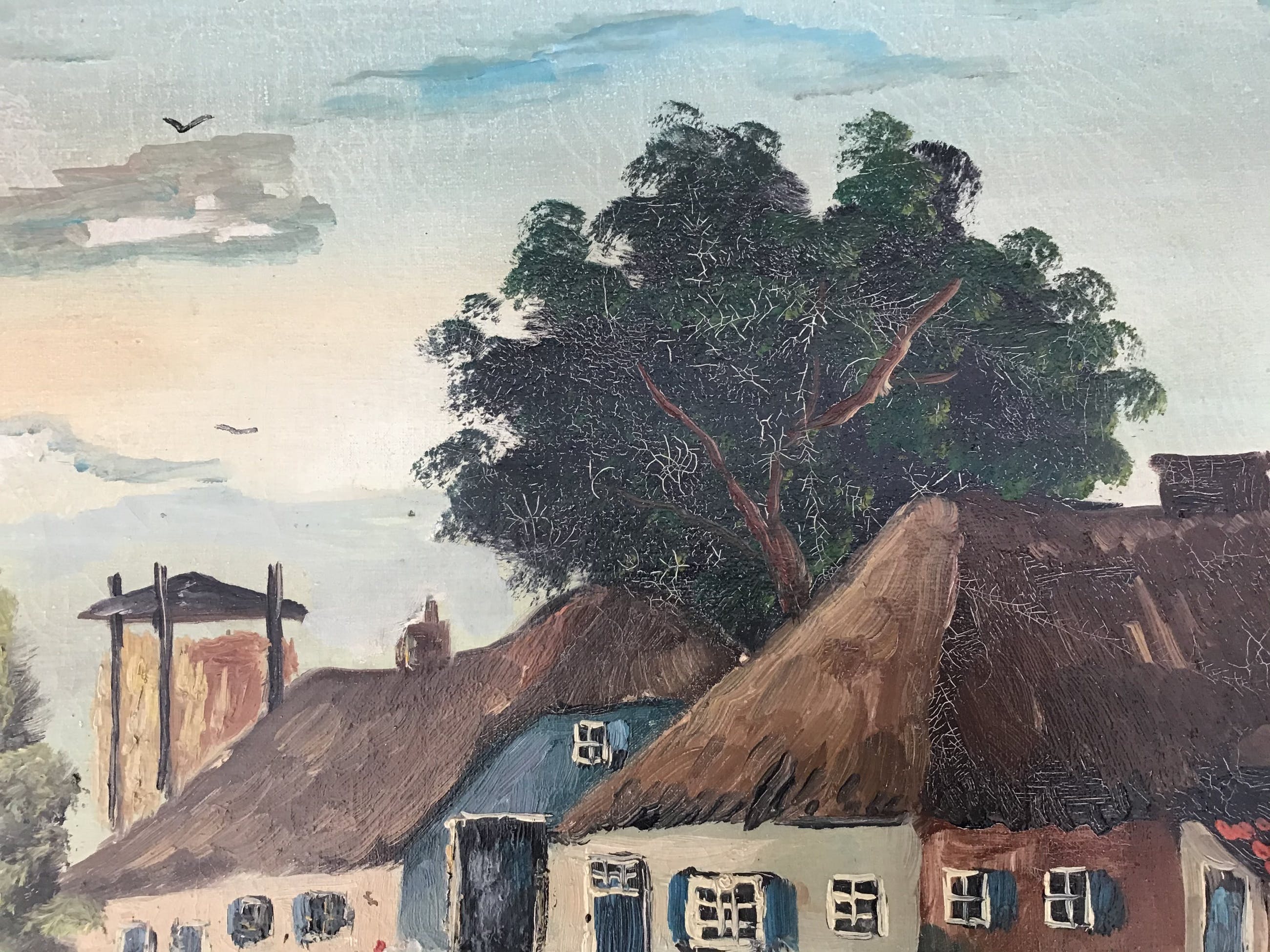 Zeker meer dan 60 jaar oud. Signering J.Moosdijk. Geen beschadigingen, wel craquelé. Eenvoudige houten lijst.