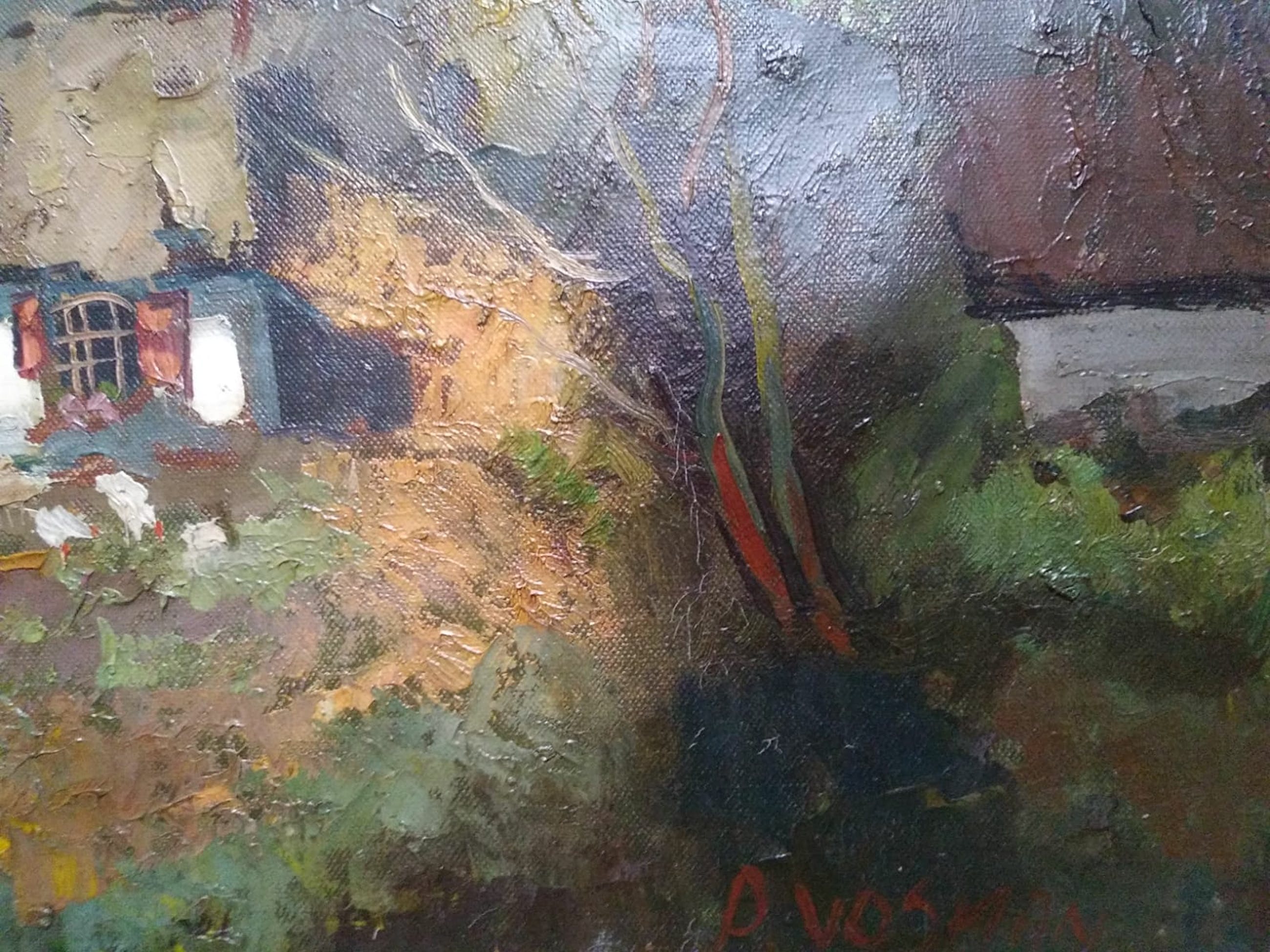 Prachtig werk van P. Vosman (?) van een boerderij met vee . Met het mes opgezet. Het is een groter werk dus moet met PostNL XL verzonden worden.