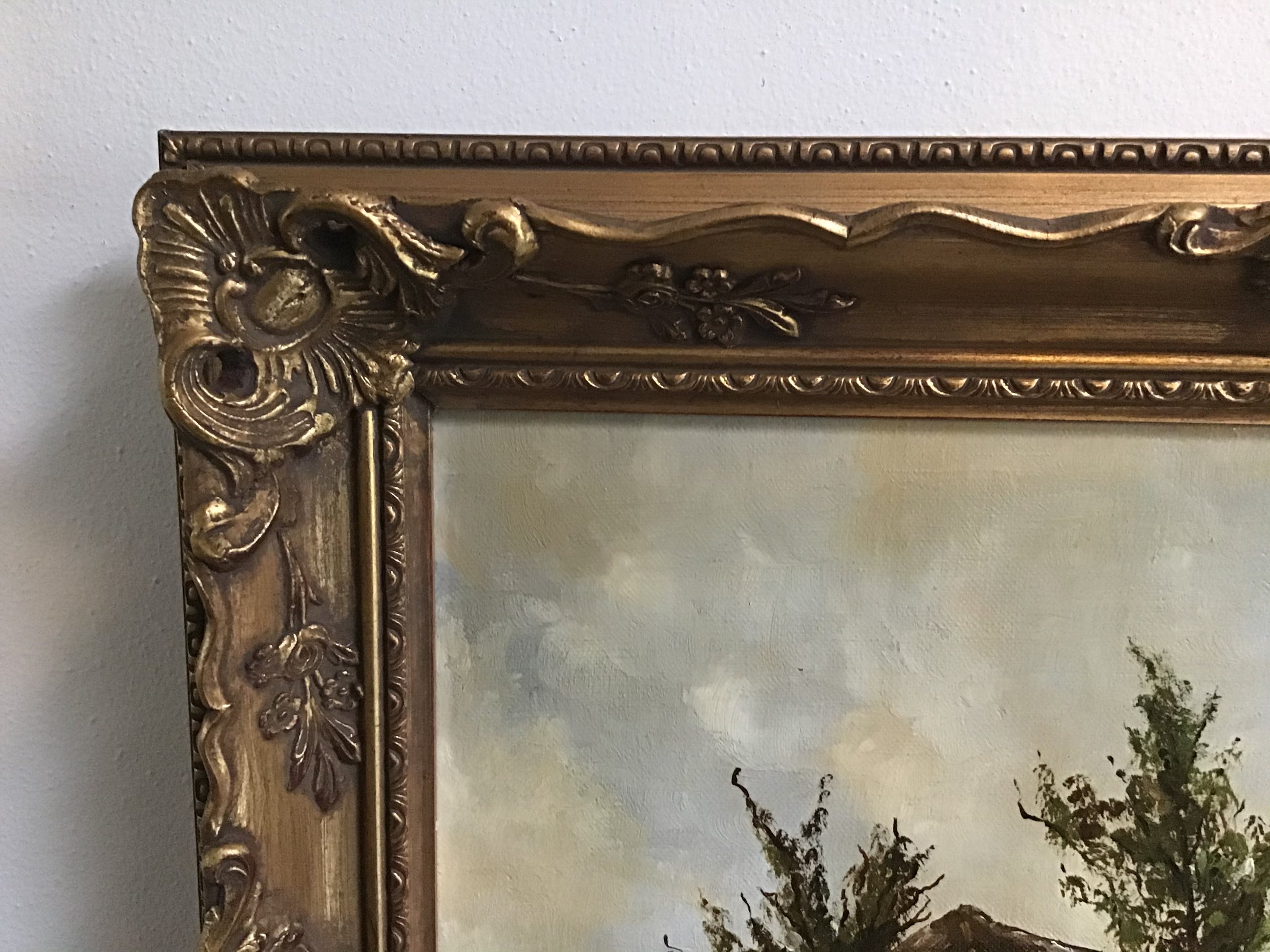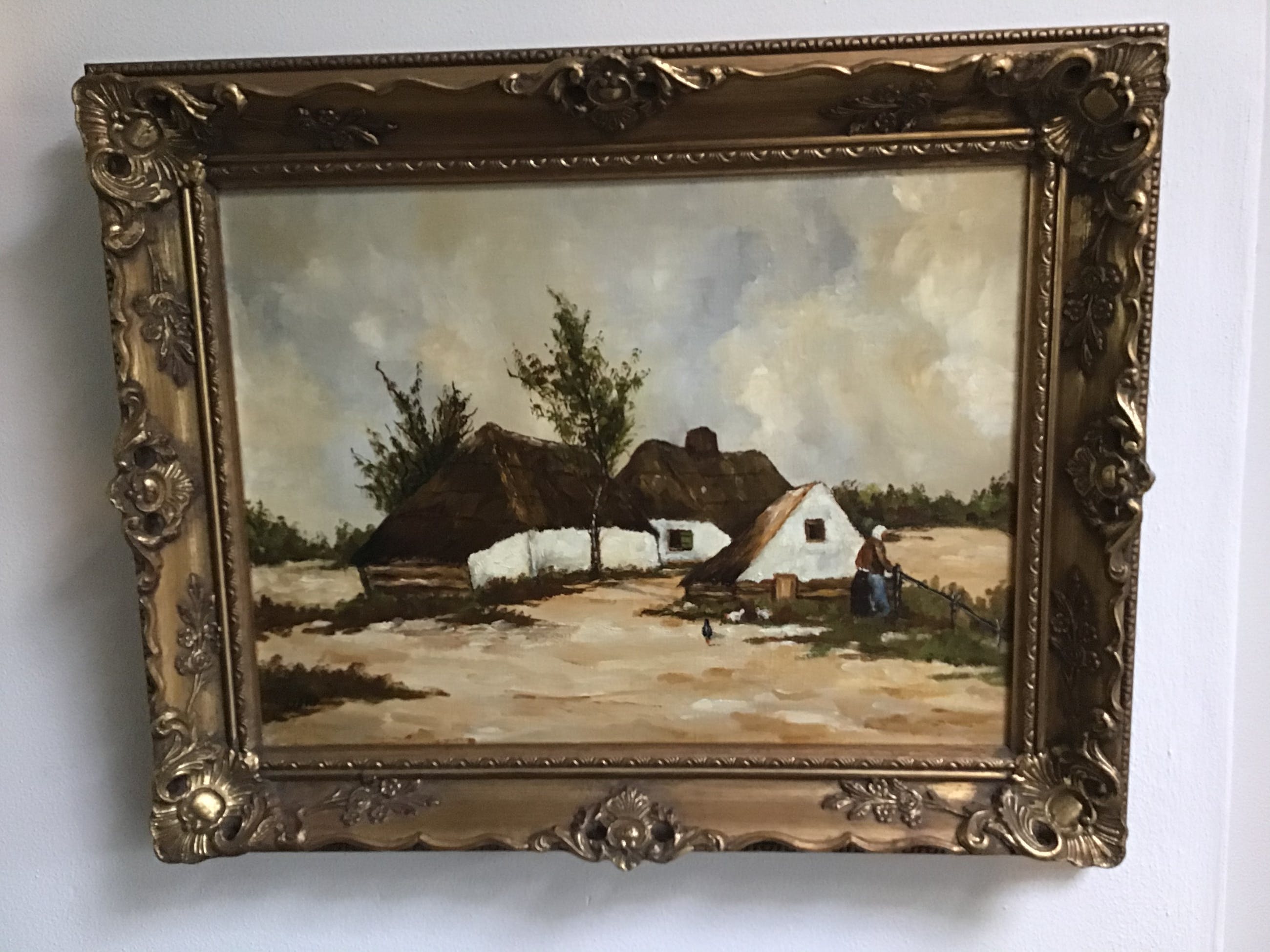 Boerenerf in Brabant door Eindhovense schilder L. van Erp. Hij heeft dit onderwerp vaker geschilderd. Linksonder gesigneerd. In perfecte staat zowel qua verf/vernis als de lijst.