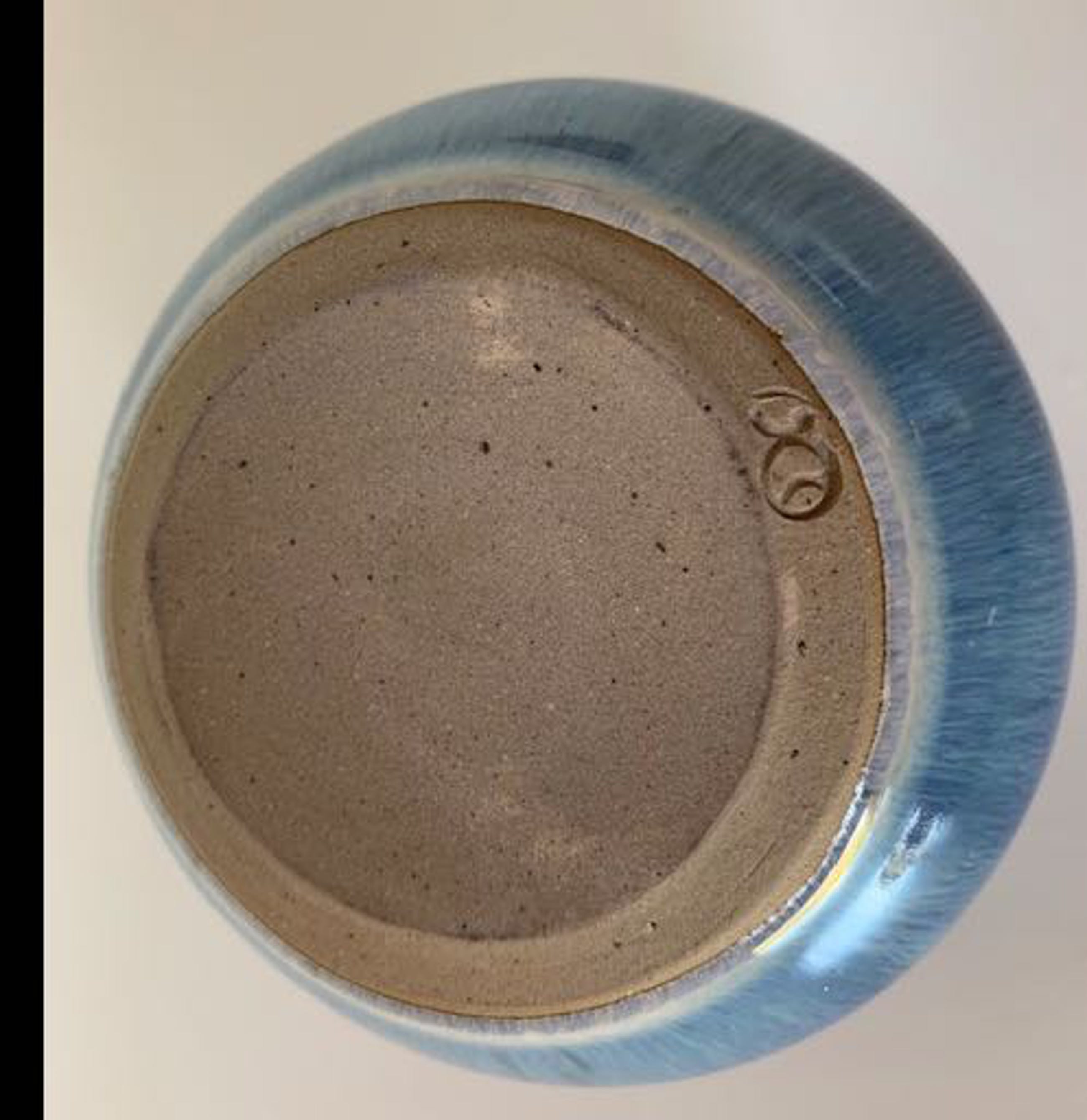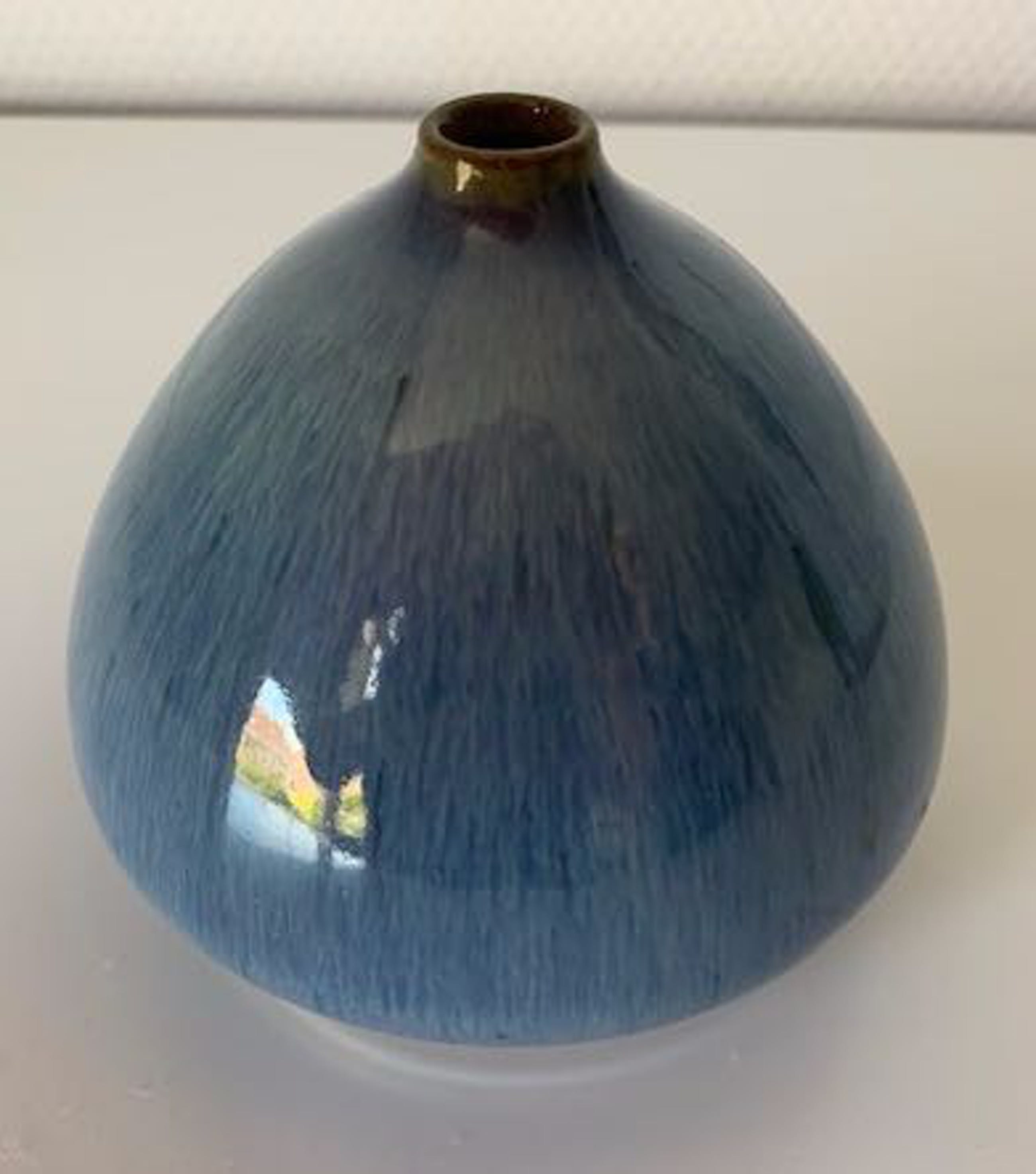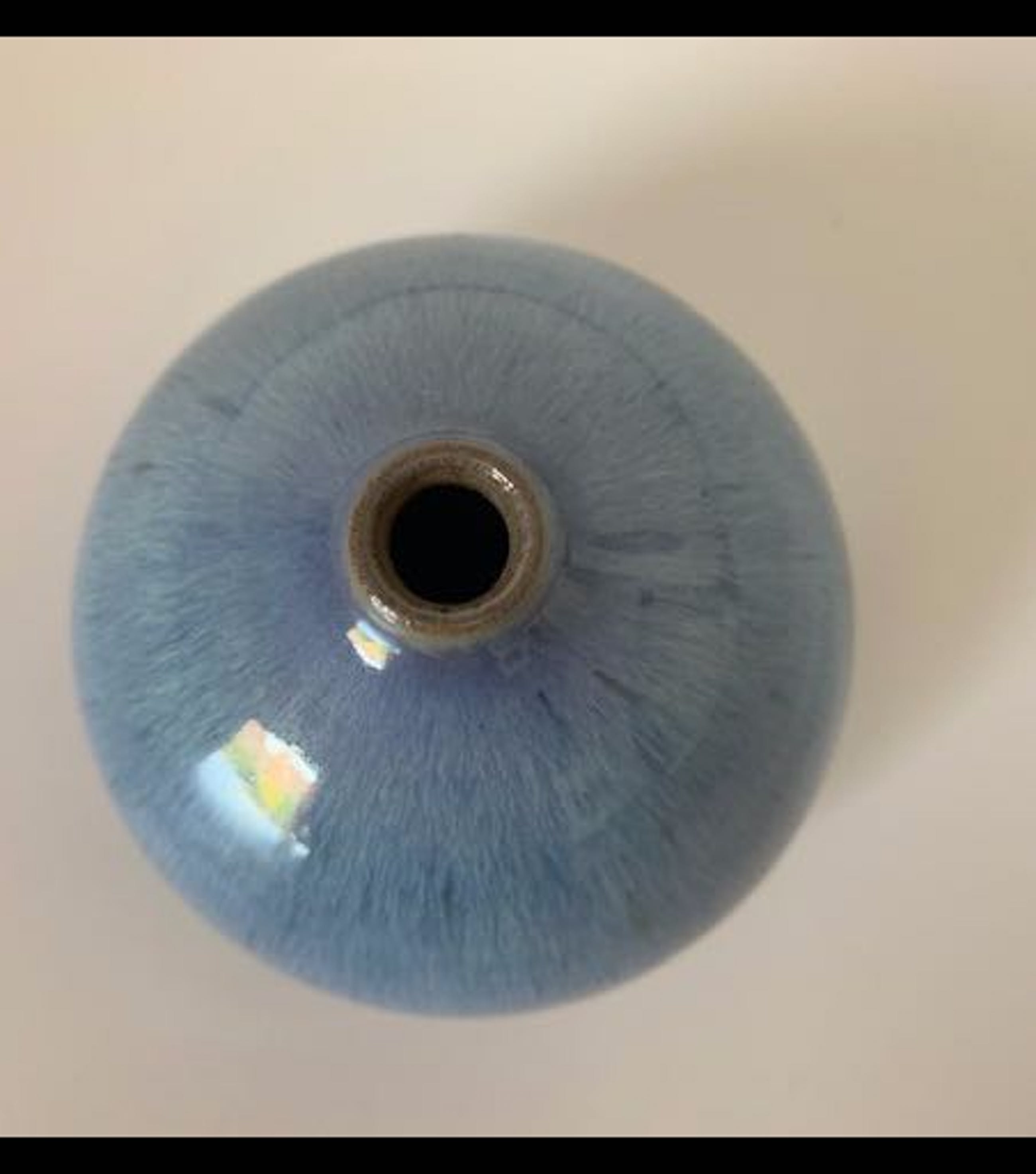 Fraai vormgegeven bolvormig vaasje met kleine opening.