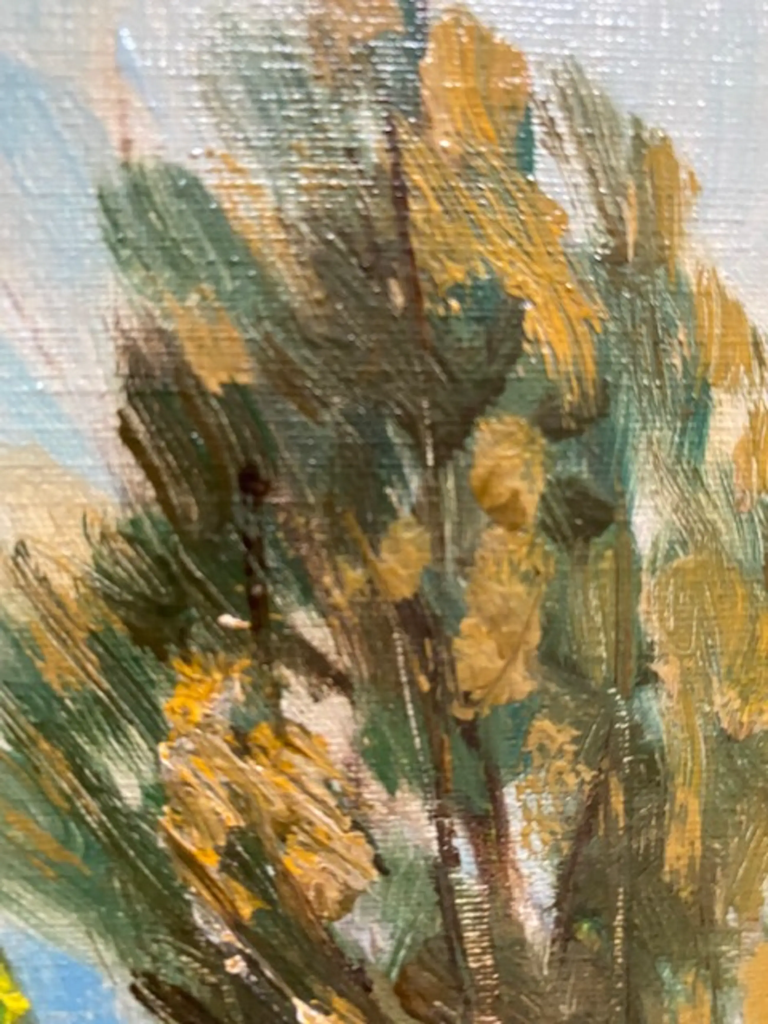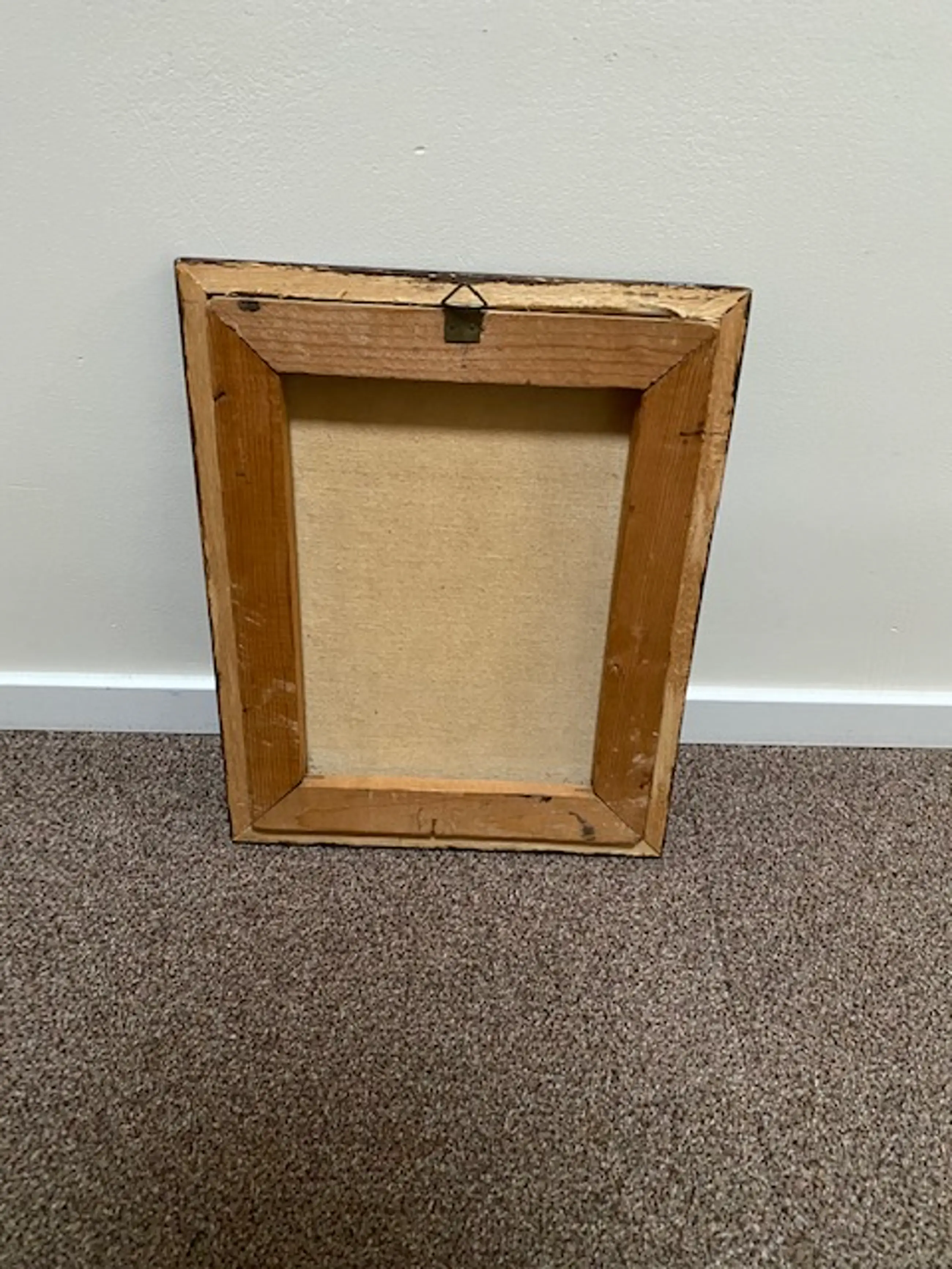 Zowel het schilderij als de lijst vertonen de gebruikelijke sporen van gebruik en ouderdom
