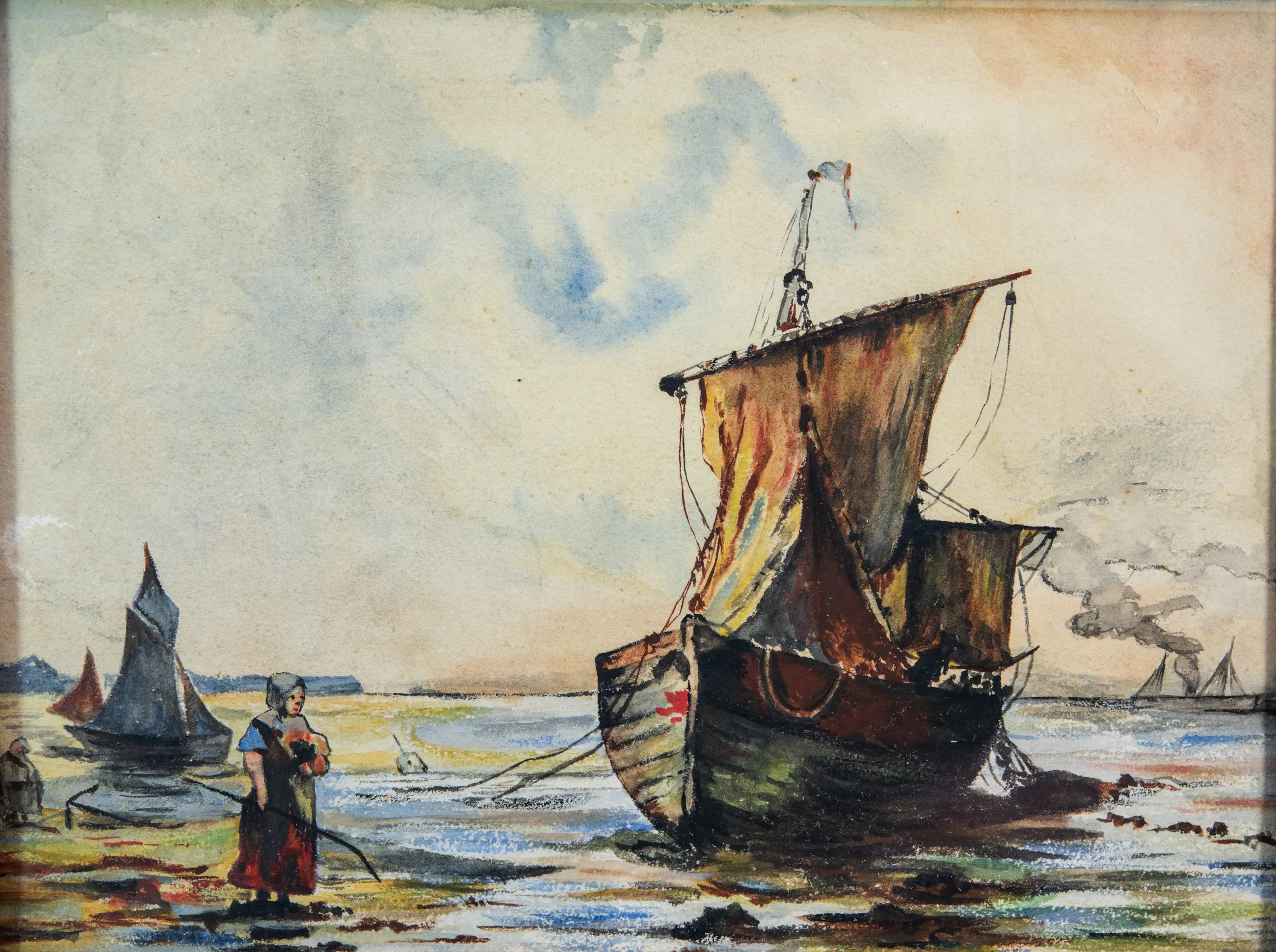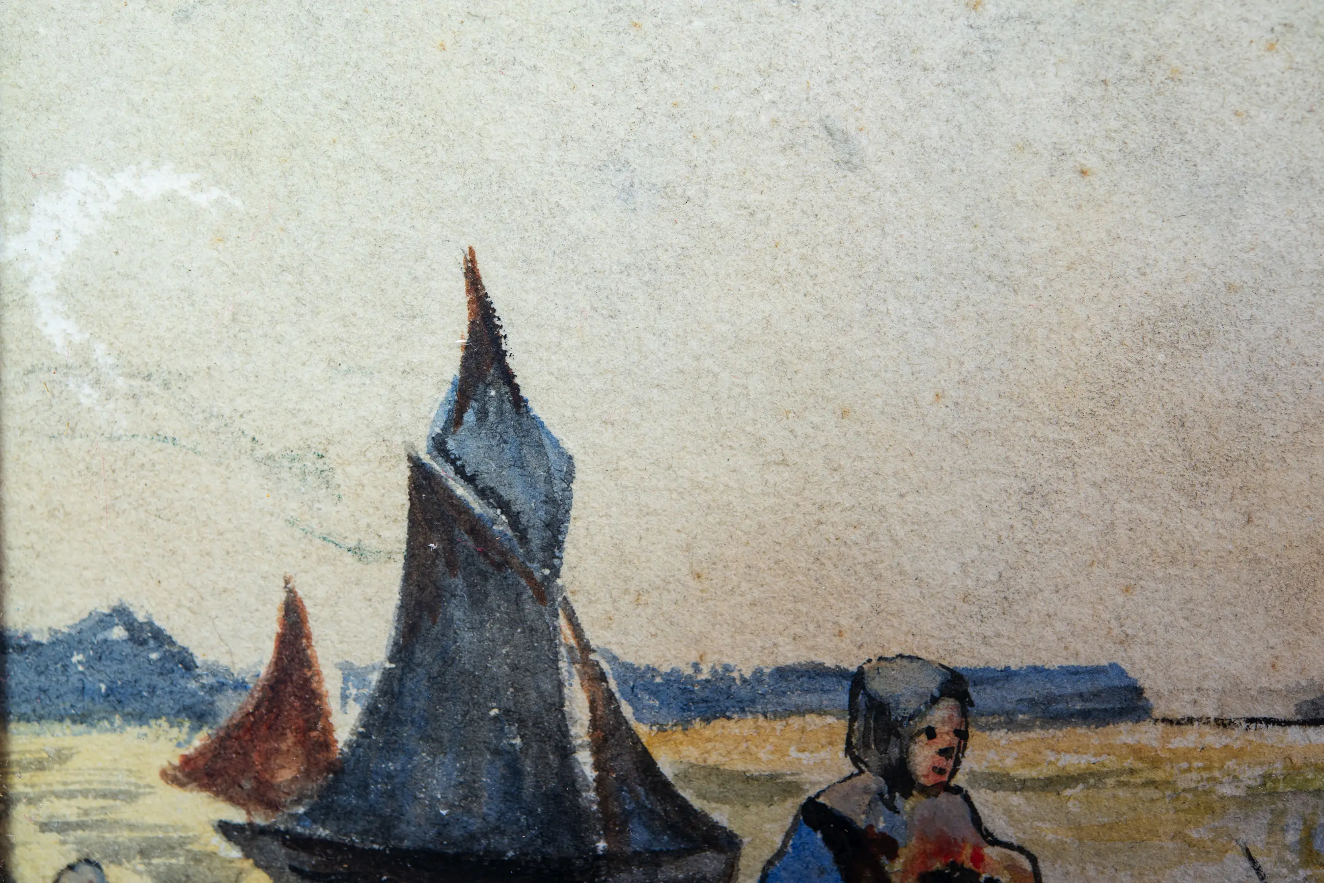 Deze aquarel is niet alleen een prachtig voorbeeld van Mesdag's kunstenaarschap, maar biedt ook inzicht in zijn proces van schets tot voltooid werk. Het is een aantrekkelijke aanwinst voor verzamelaars van Nederlandse maritieme kunst en een authentieke weerspiegeling van de 19e-eeuwse fascinatie voor de zee en het leven langs de kust.