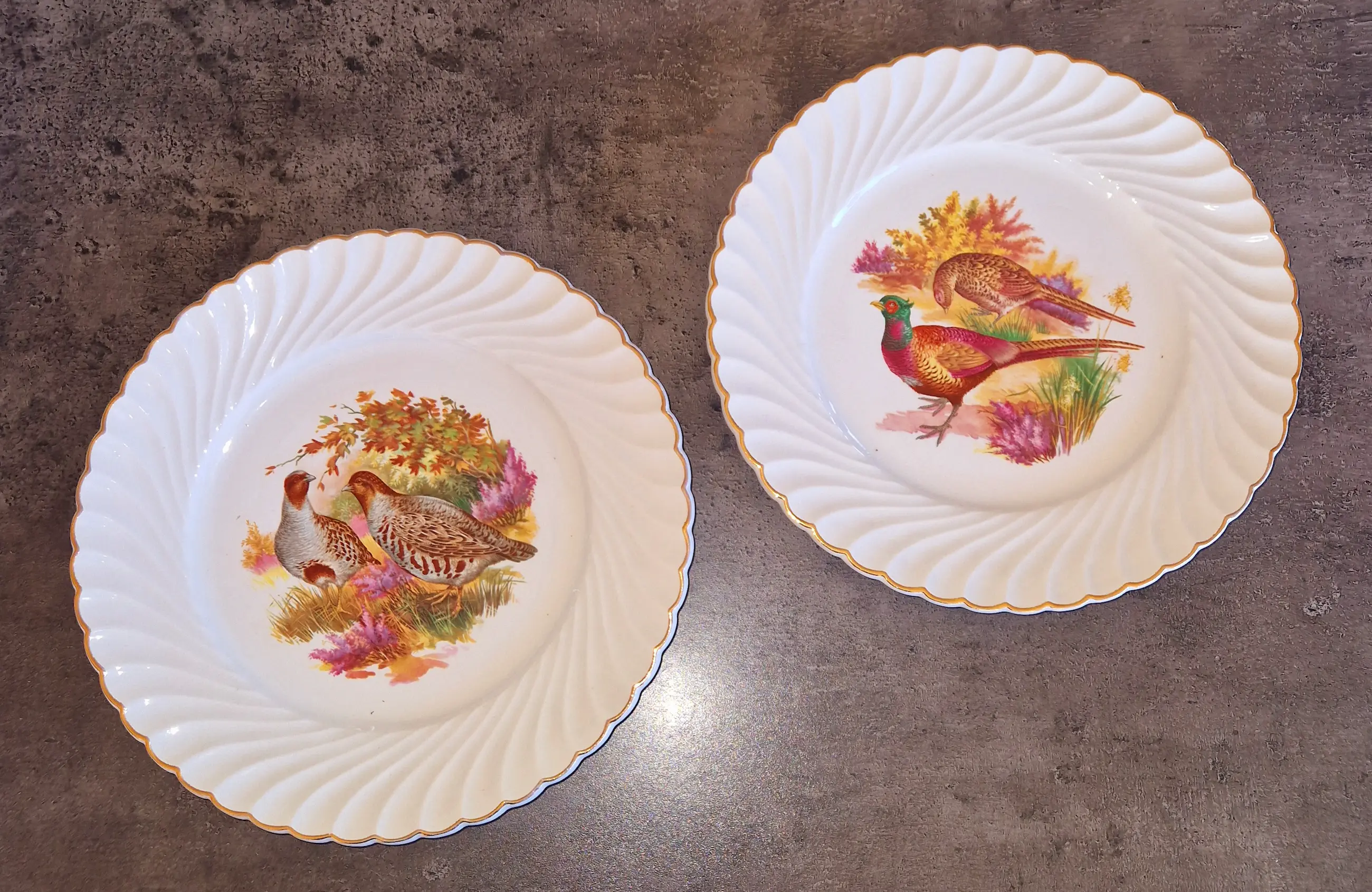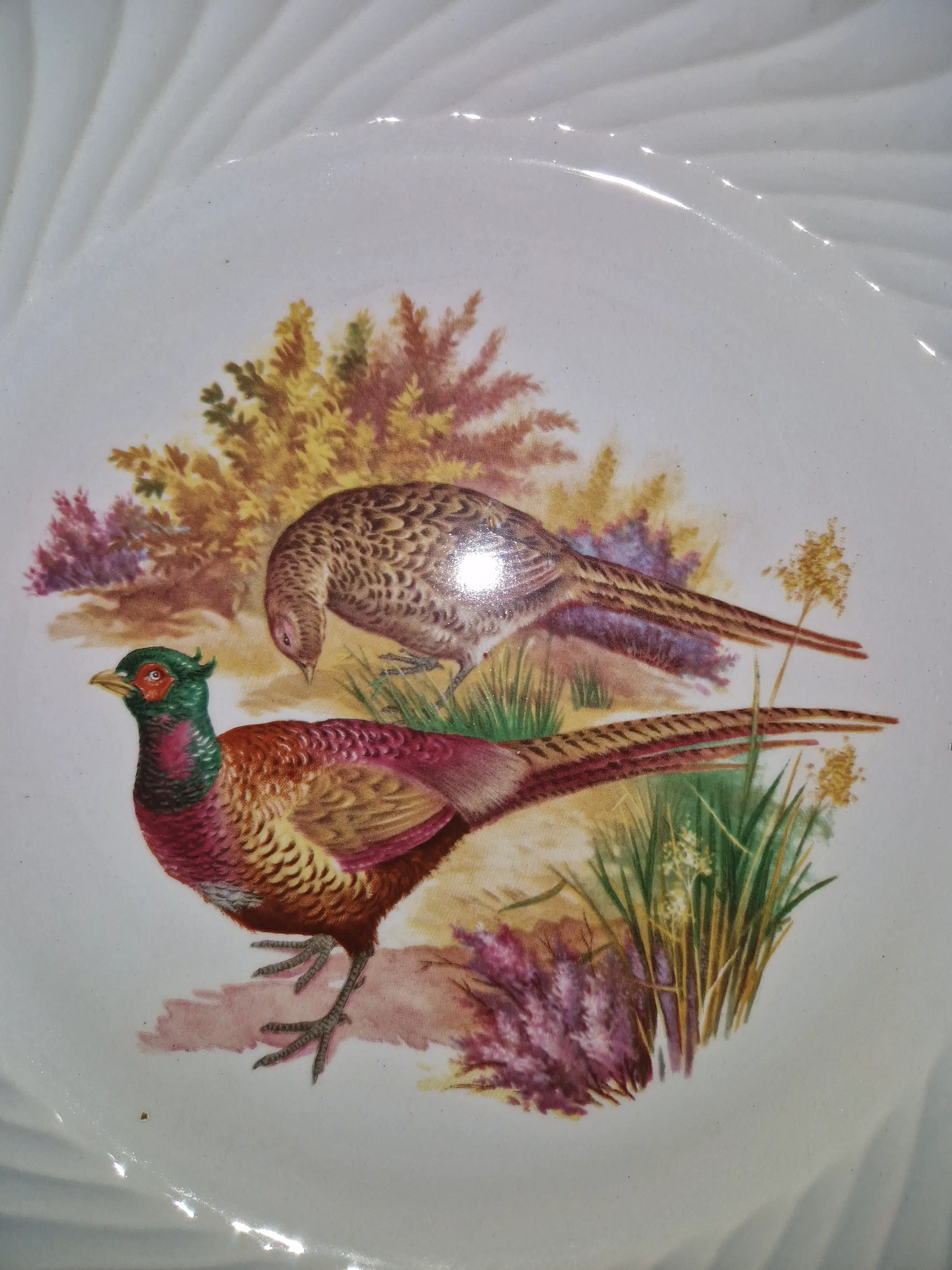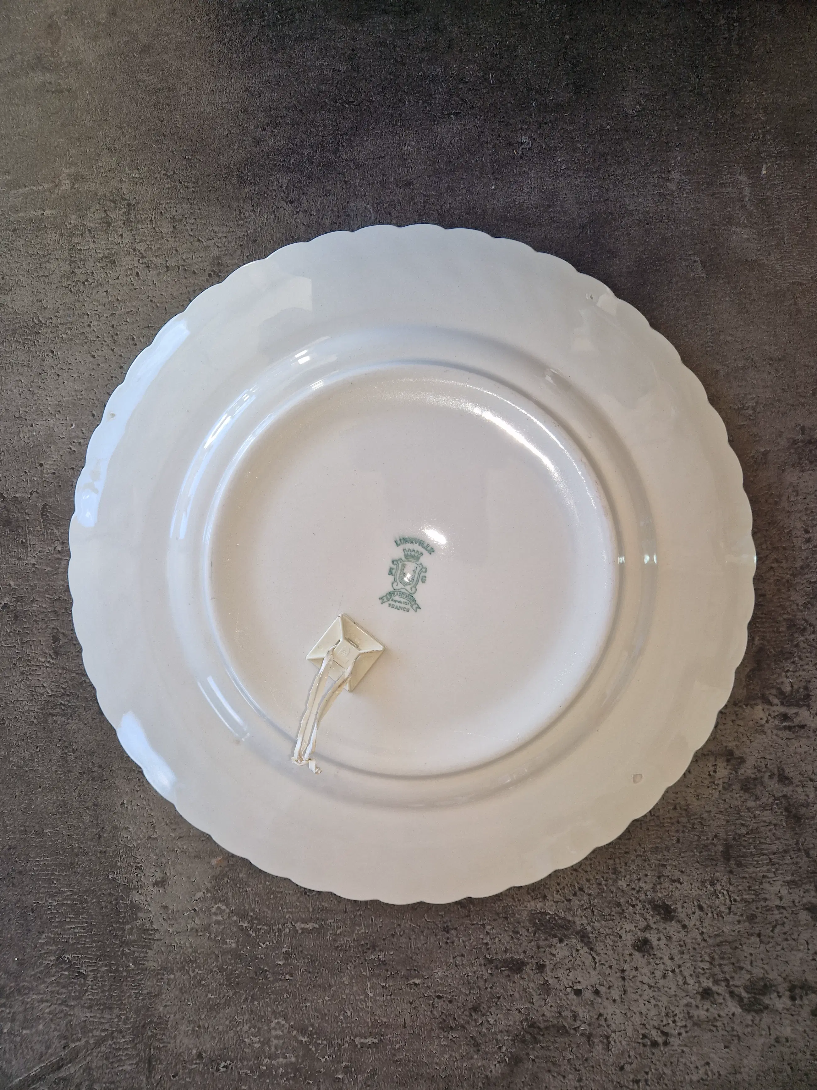 deze prachtige decoratieve borden zijn heel mooi afgewerkt en hebben geen beschadeging,ze zijn afge werkt met een mooi rand design en een goudkleurige rand. ze zijn gemaakt volgens de stempel op de achterkant in Lunneville(france 1931) mooi decoratief item.