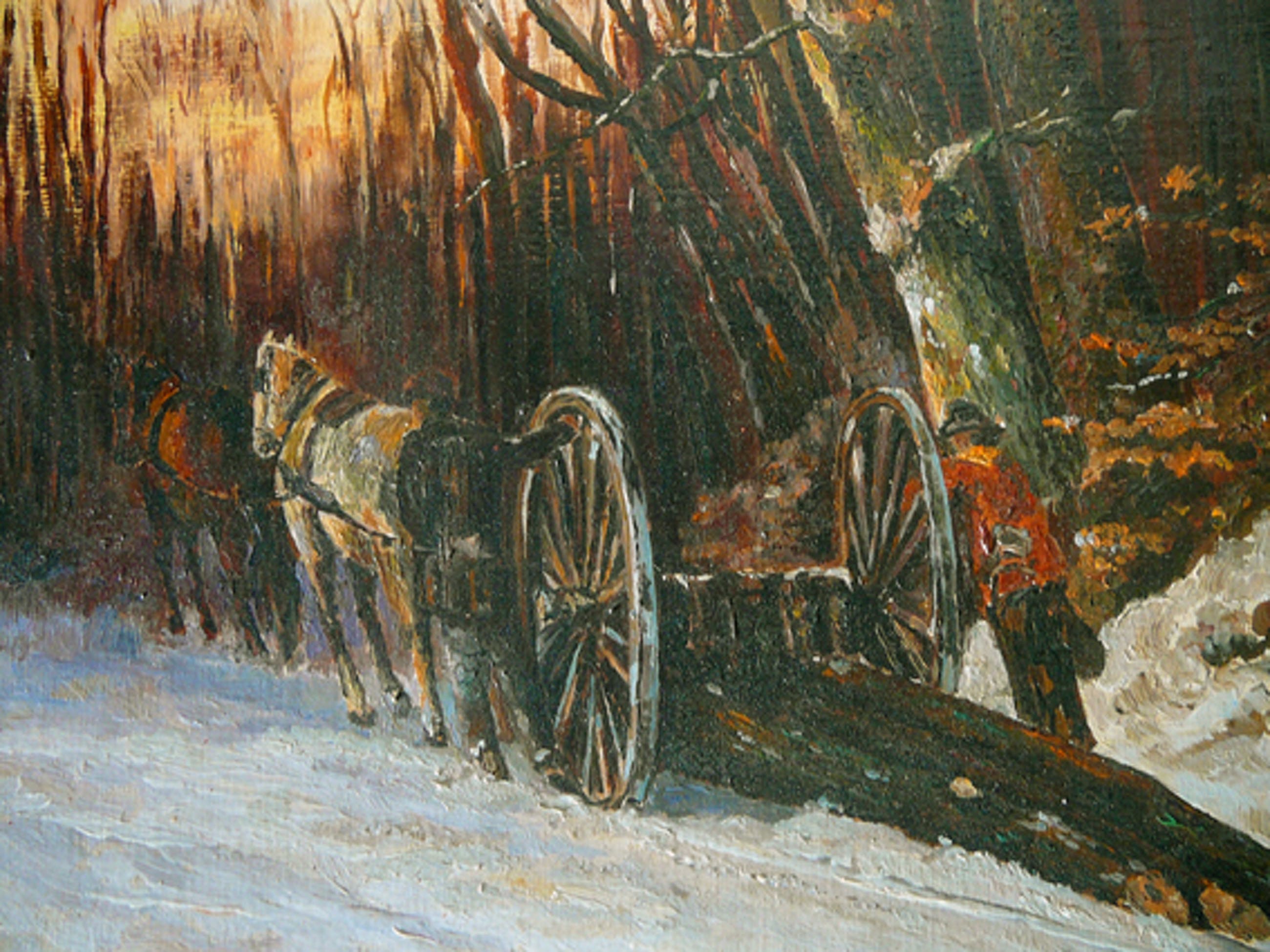 Niet of onleesbaar gesigneerd - Bosarbeider in de winter -olieverf op doek- kopen? Bied vanaf 10!Niet of onleesbaar gesigneerd - Bosarbeider in de winter -olieverf op doek- kopen? Bied vanaf 10!