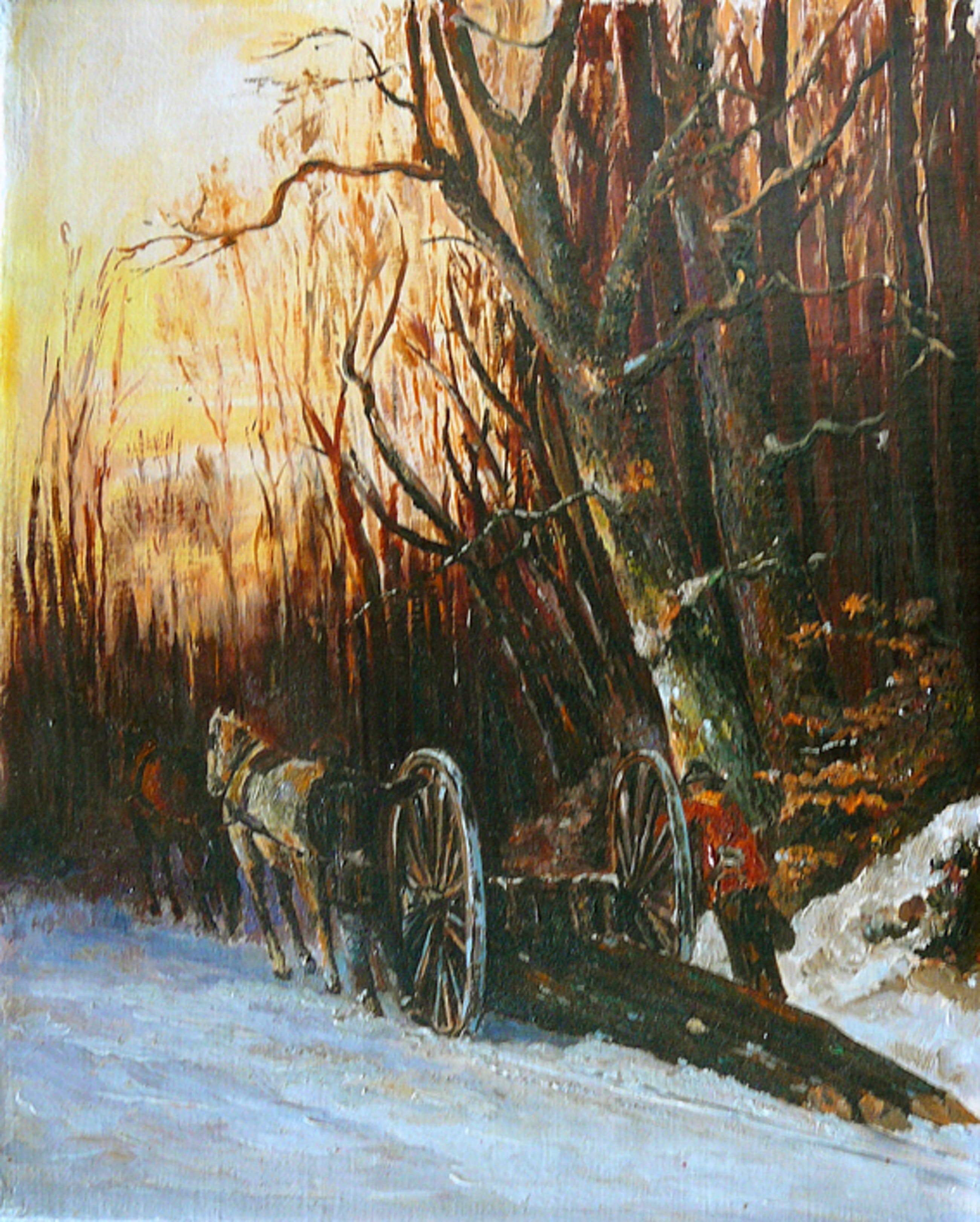 Onbekend - Bosarbeider in de winter -olieverf op doek- - Verkocht