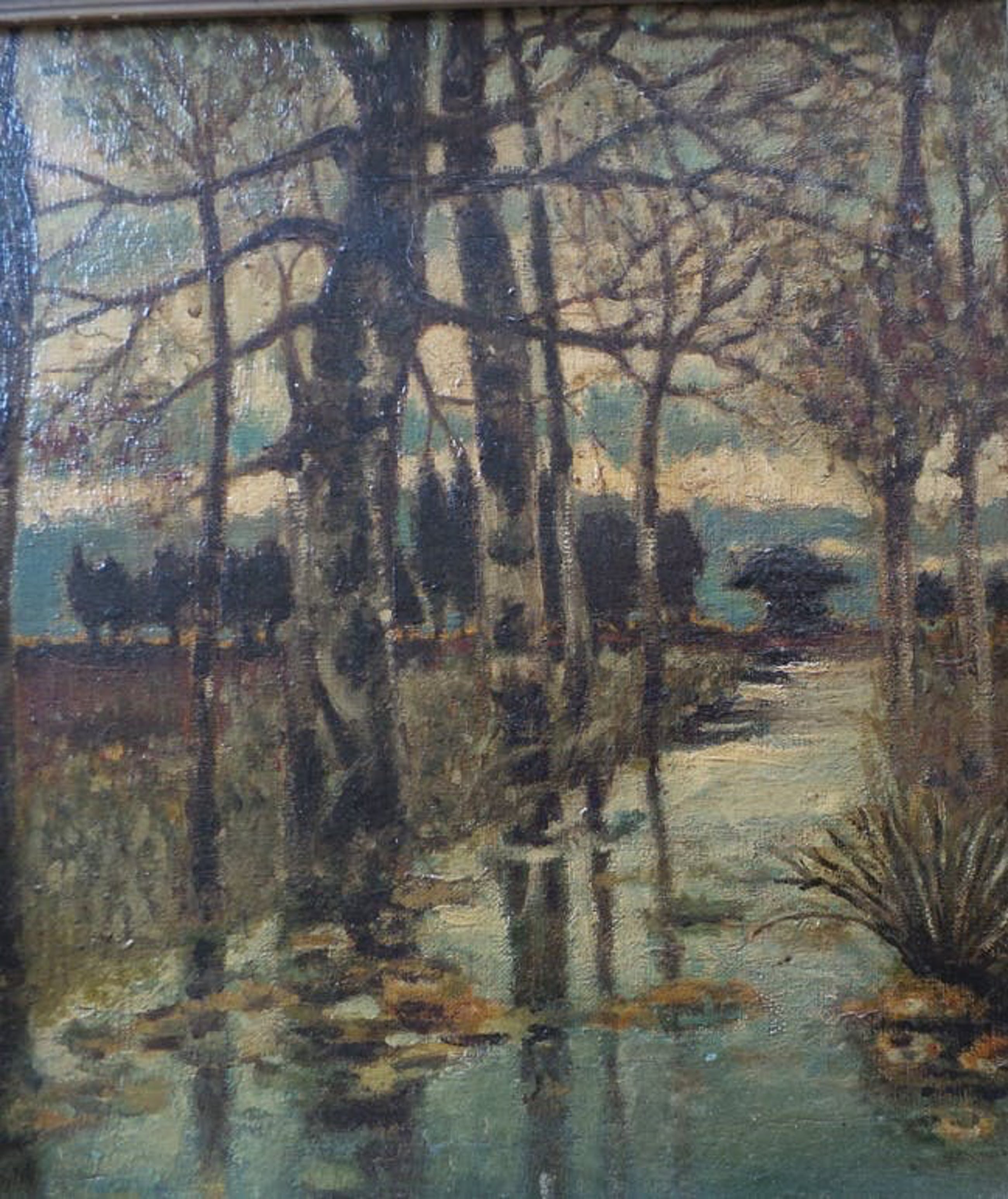 Bosgezicht Olieverf op doek Maroufle In redelijke goed staat