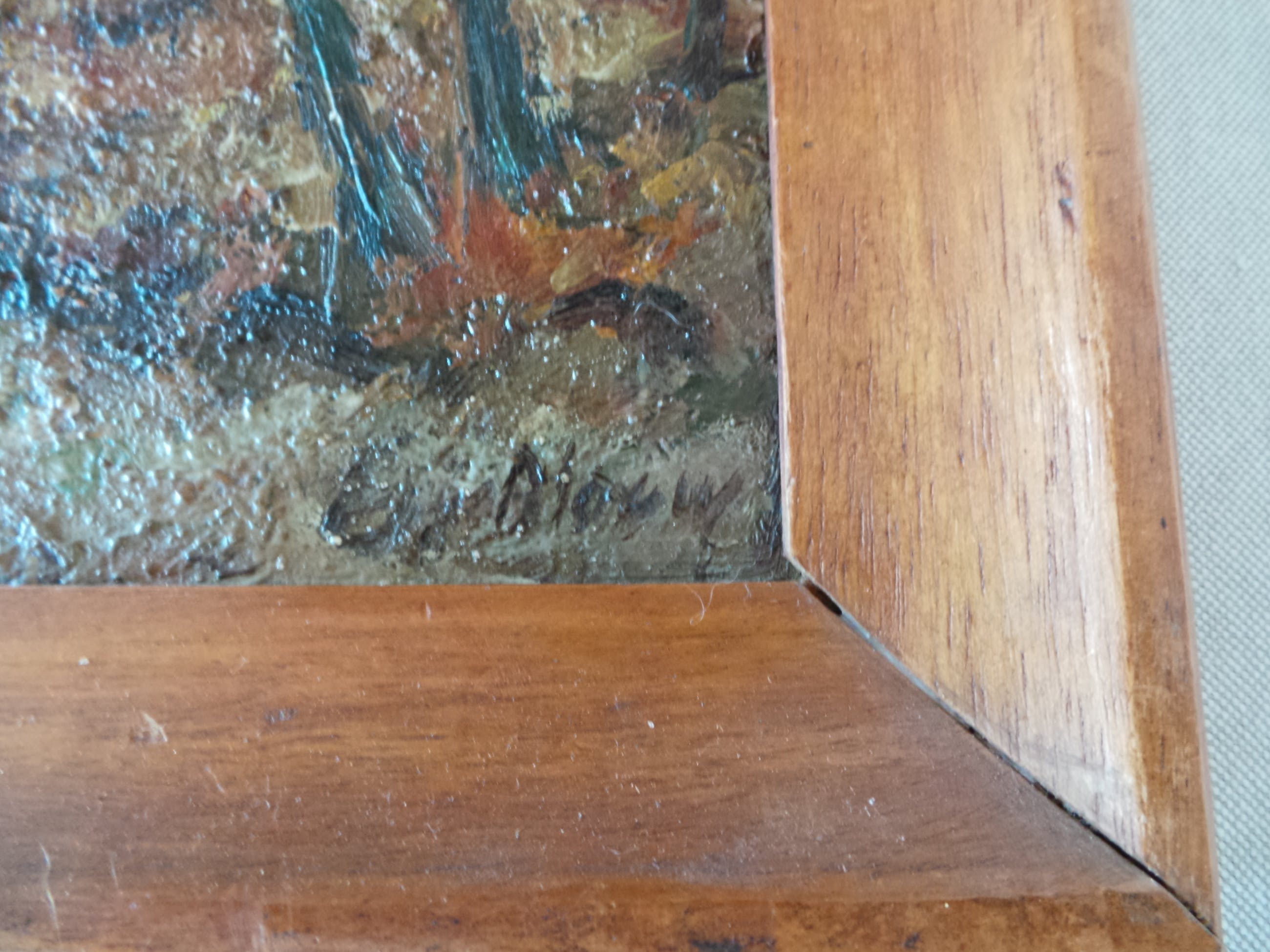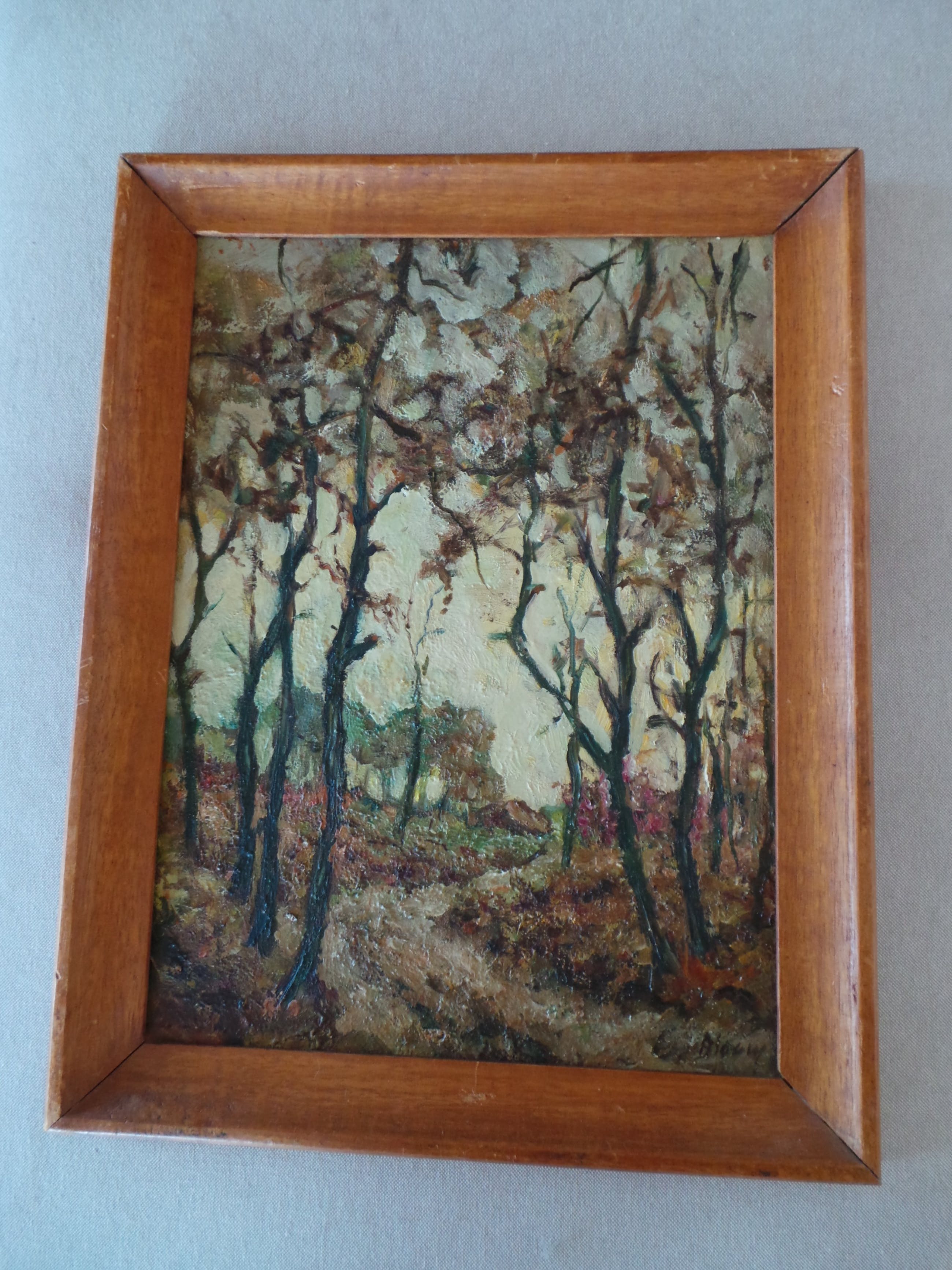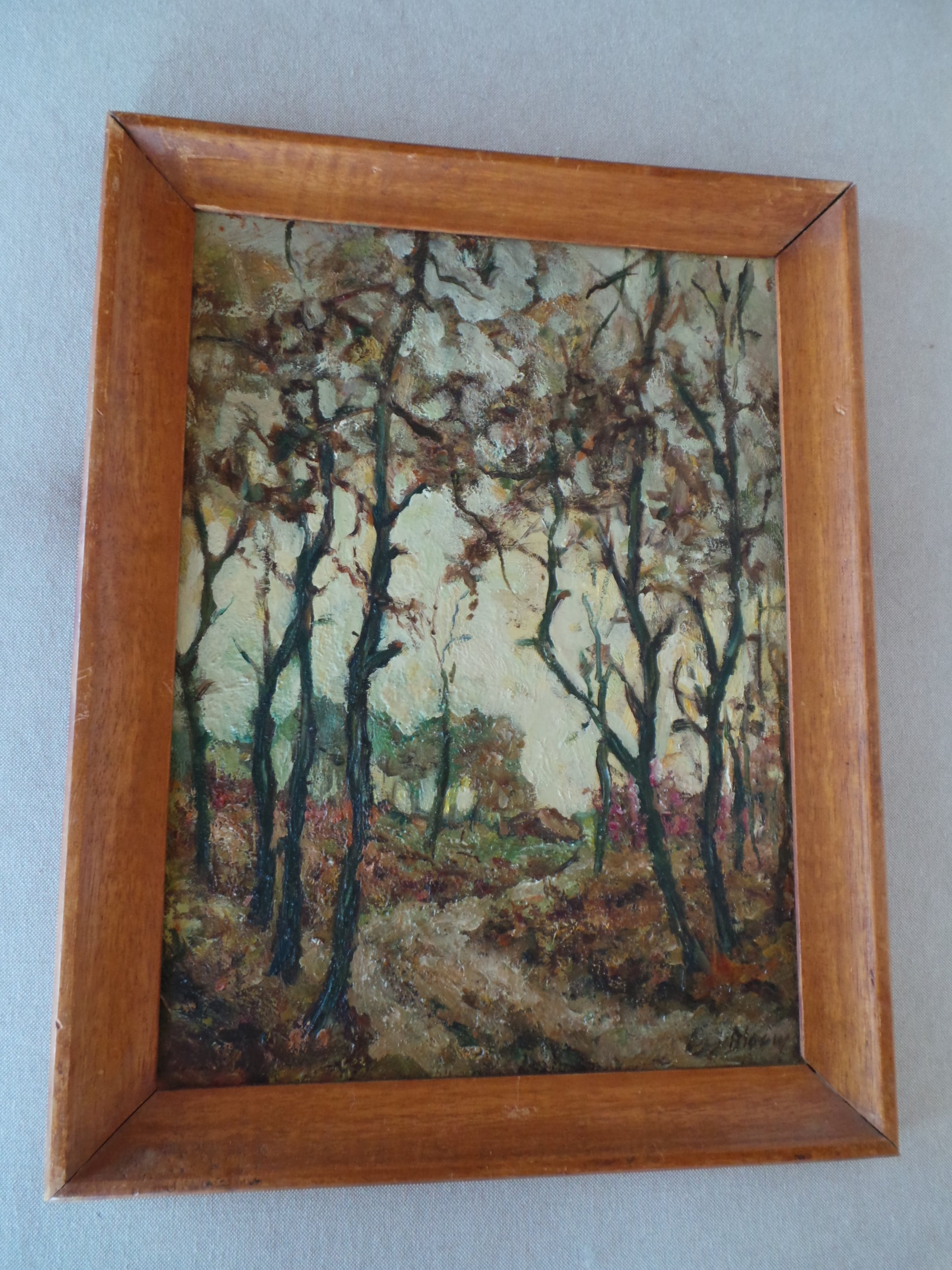 Bosgezicht Olieverf op board afmeting beeldmaat 30 x 40 cm Afmeting met lijst 36 x 46 cm Gesigneerd rechts onder ?