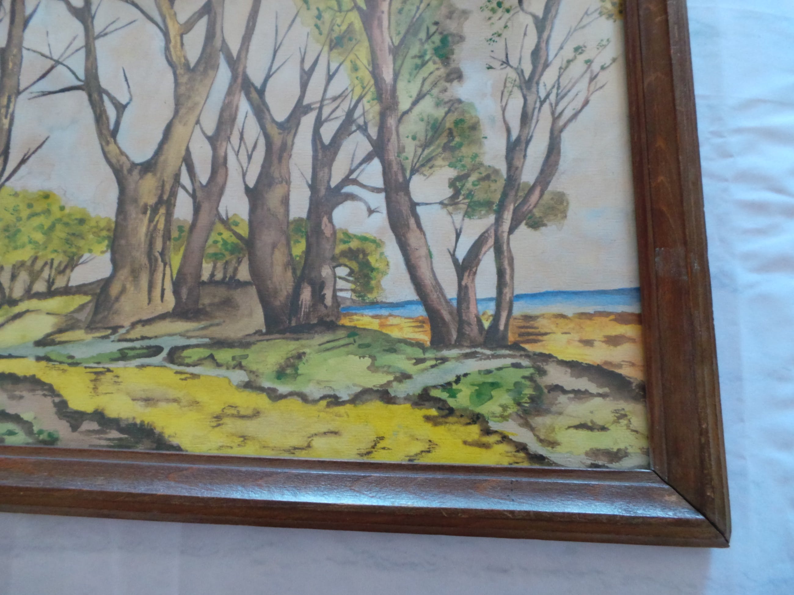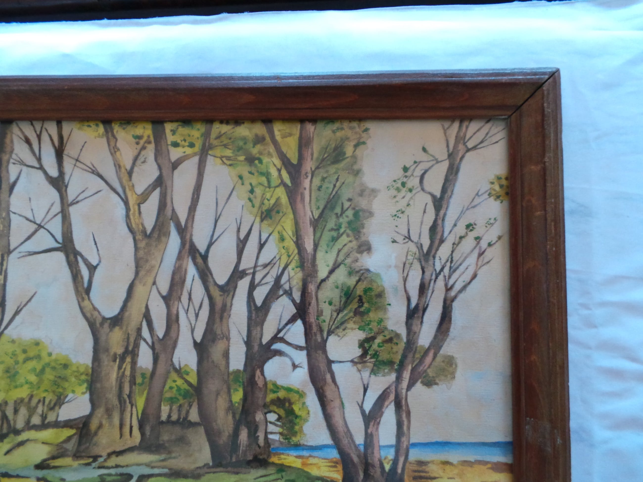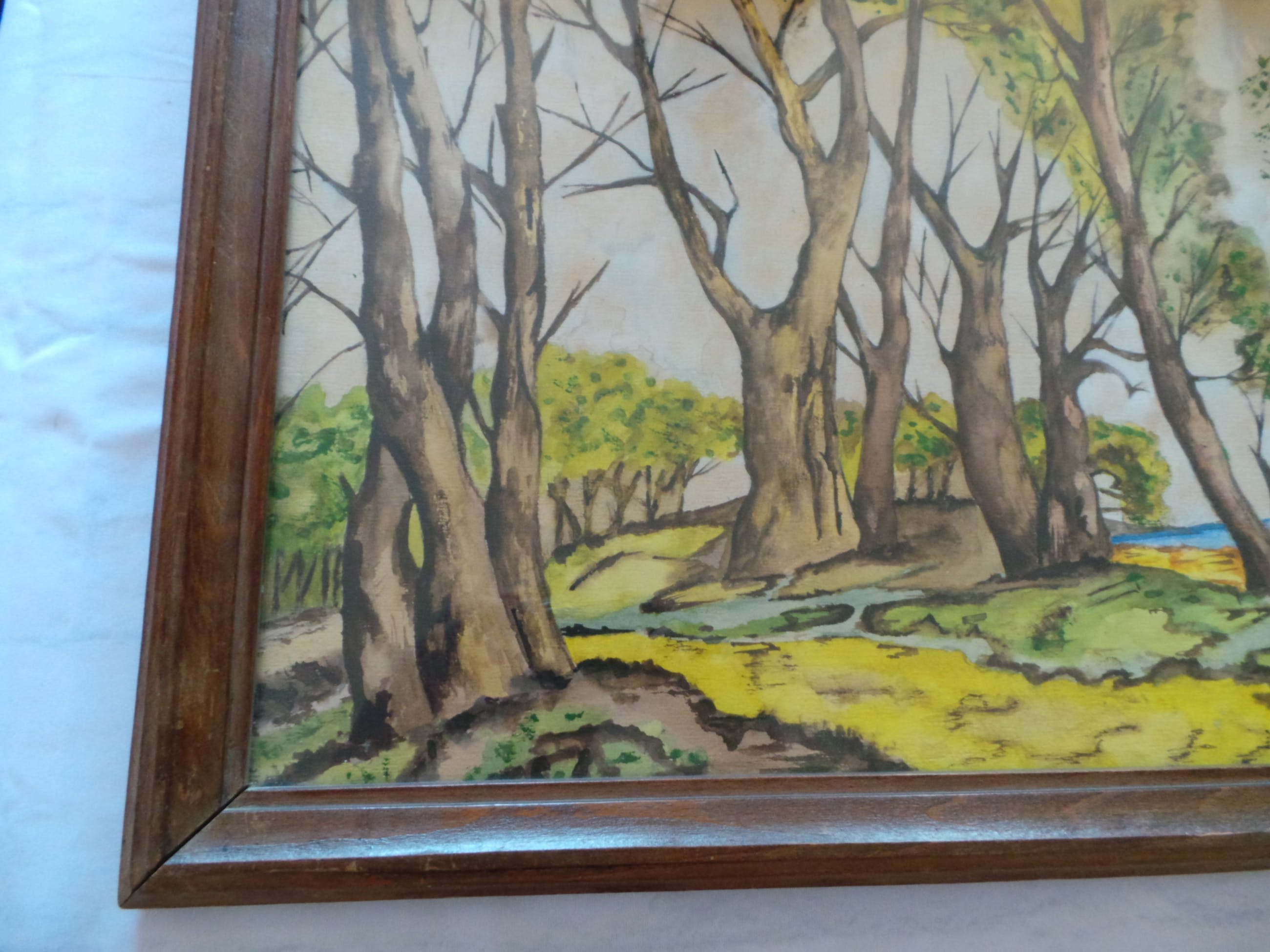 Bosgezicht Aquarel Afmeting beeldmaat 35 x 51 cm Afmeting met lijst 42 x59 cm Gesigneerd ?