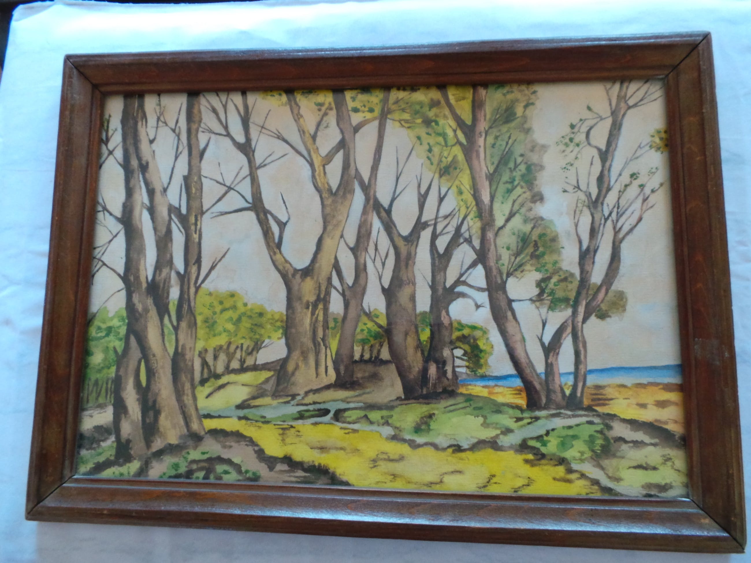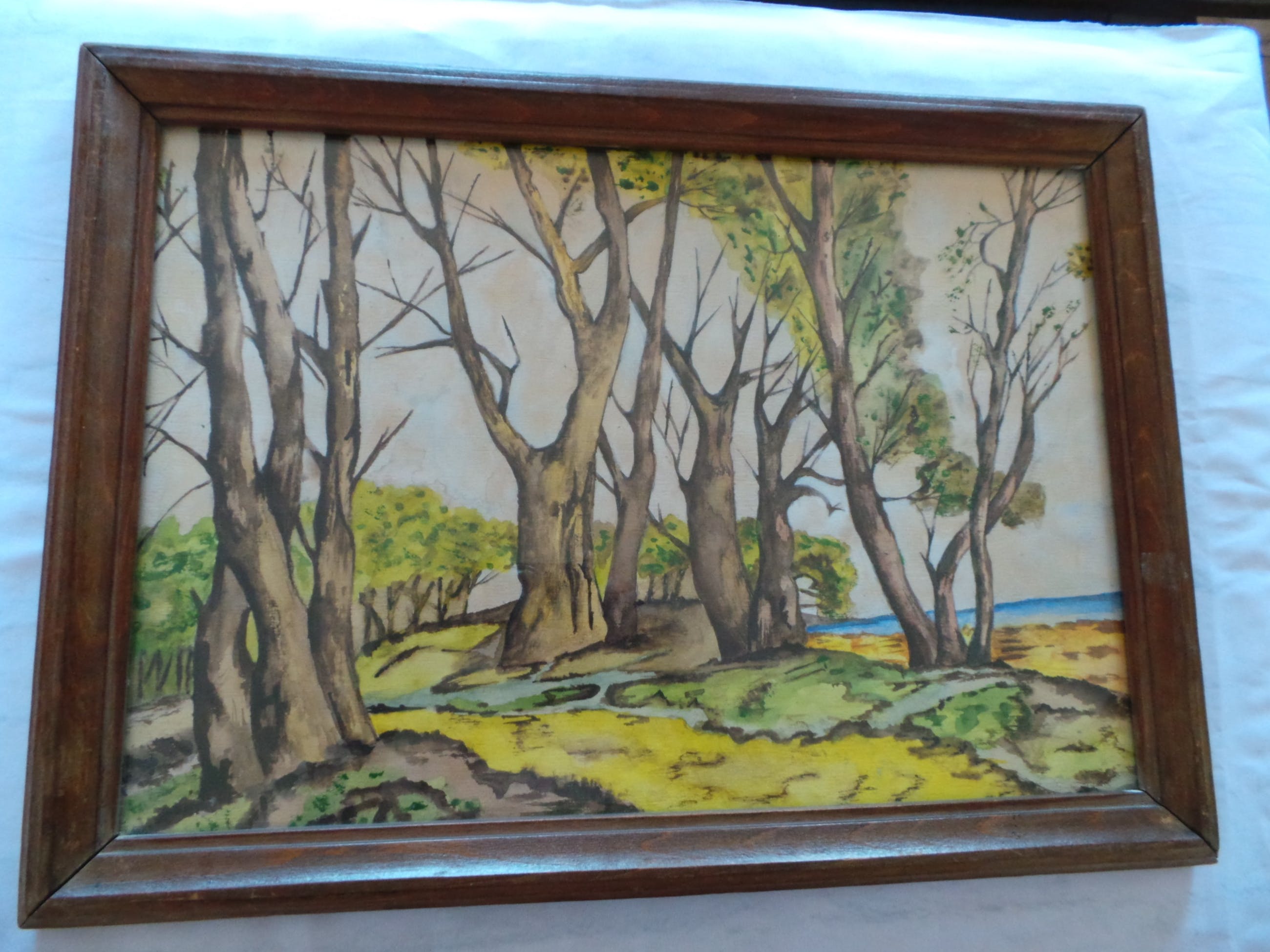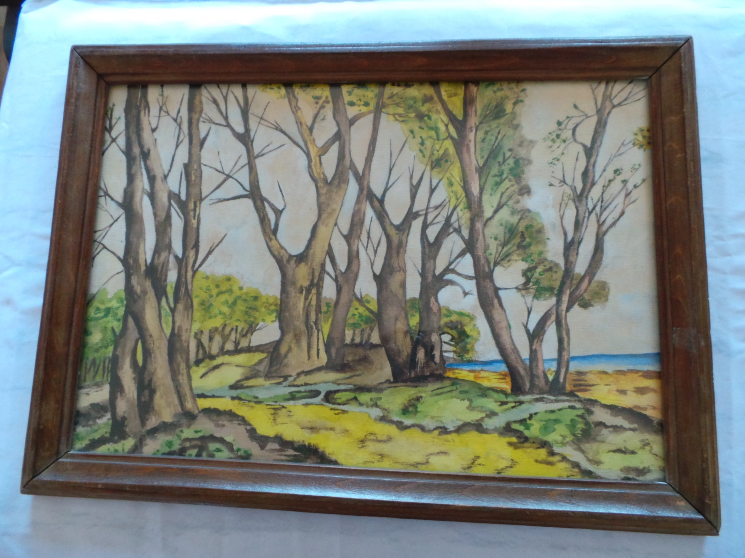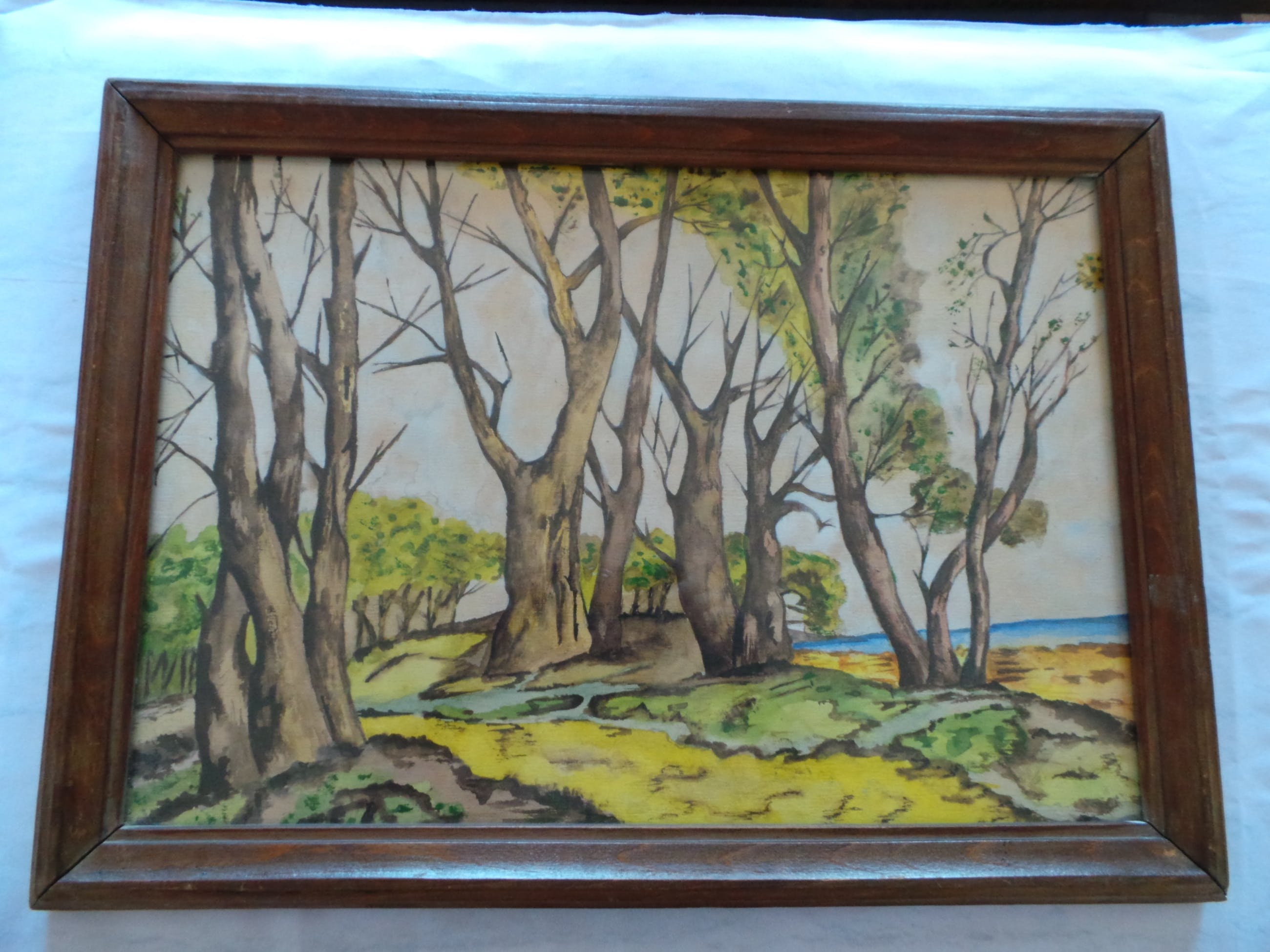 Bosgezicht Aquarel Afmeting beeldmaat 35 x 51 cm Afmeting met lijst 42 x59 cm Gesigneerd ?