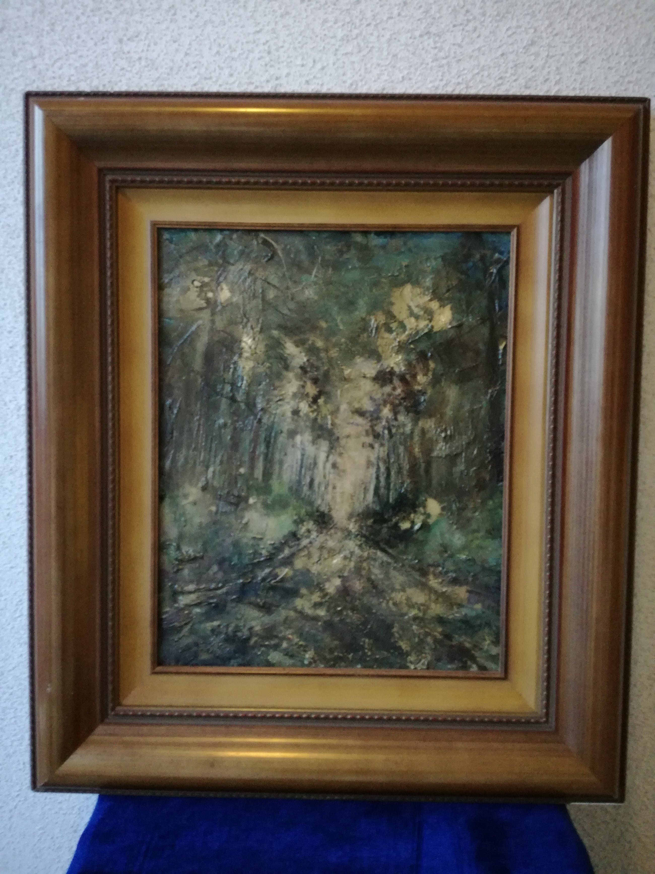 BoszichtMidden 20 ste eeuwAfm : 75 cl x 65 cm // 50 cm x 40 cmOlieverf op doekIn zeer goede staatMooie kleuren en dikke verfstructuur met bladgoud accenten, intense en realistische weergave.Ingelijst in authentieke kader.