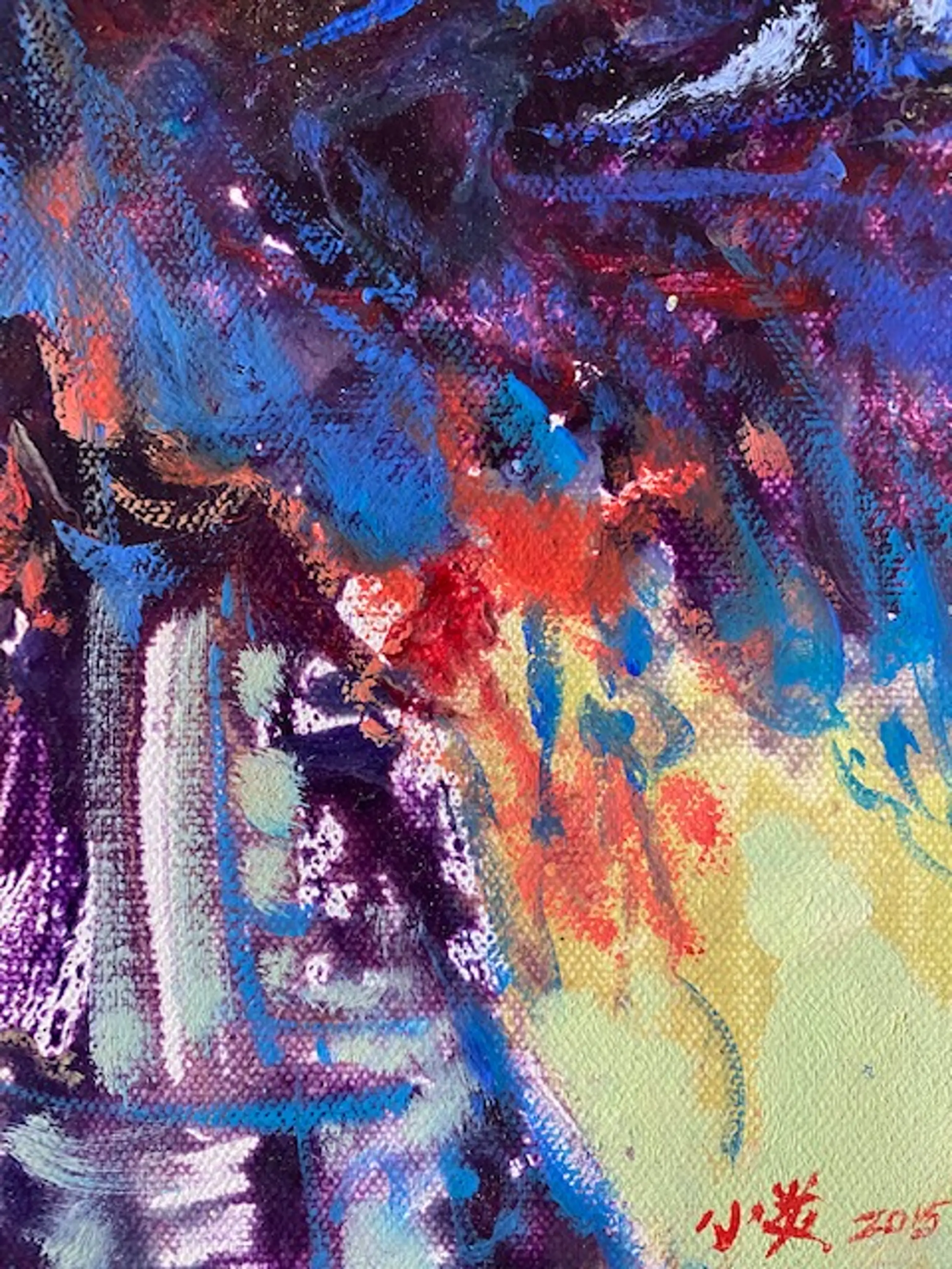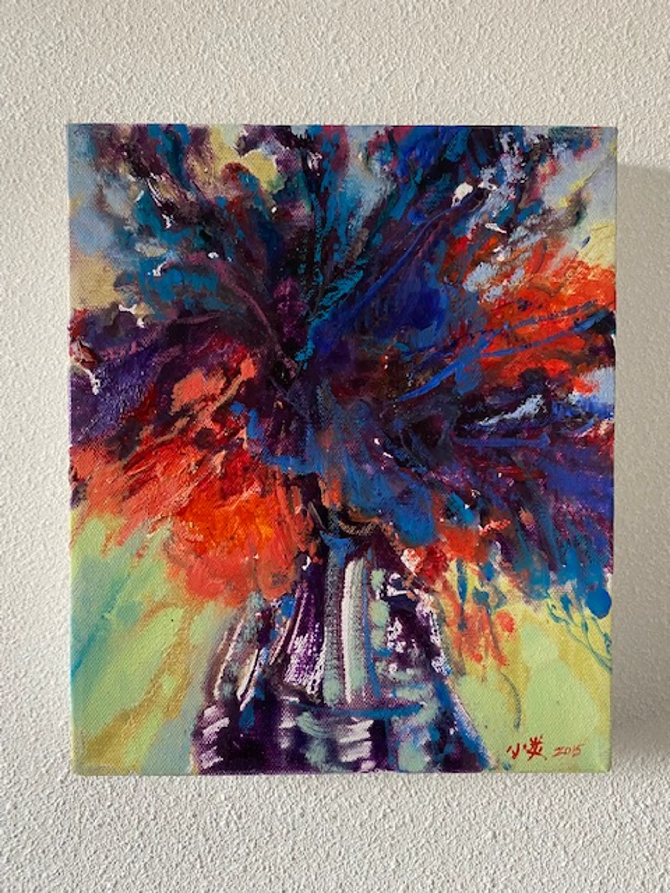het werk zou toegeschreven kunnen worden aan de Chinese schilderes Xiaoyan uit Shanghai maar de handtekening is onleesbaar bedoelde kunstenares is lid van de Shanghai kring van schilders en heeft o.a. les gehad van de bekende kunstenaar Xu Xu Dong