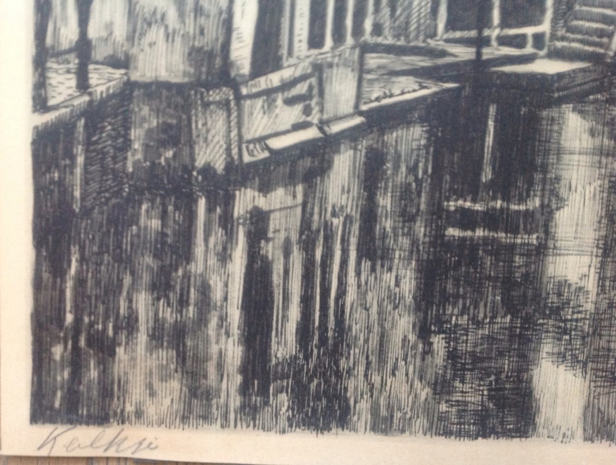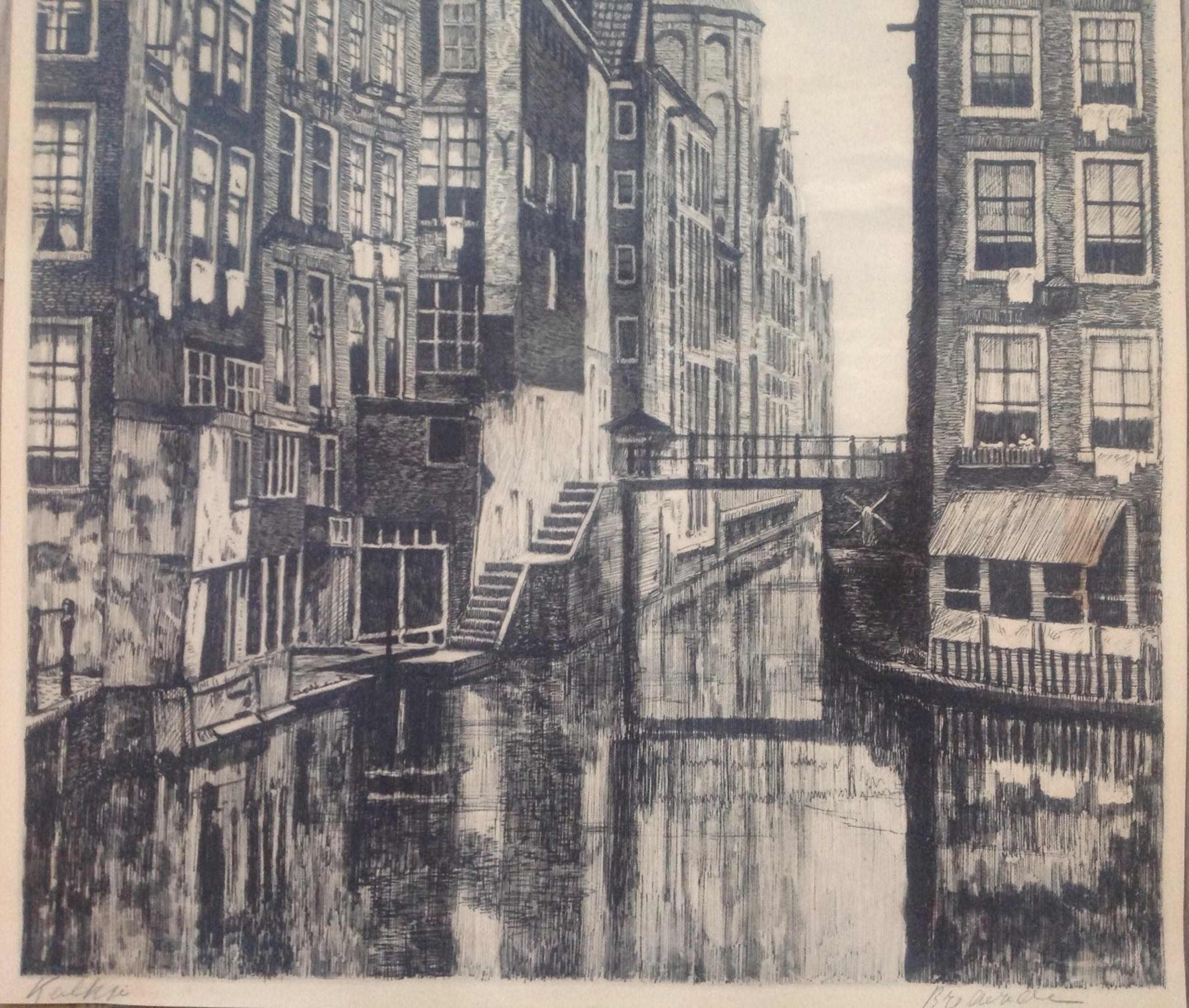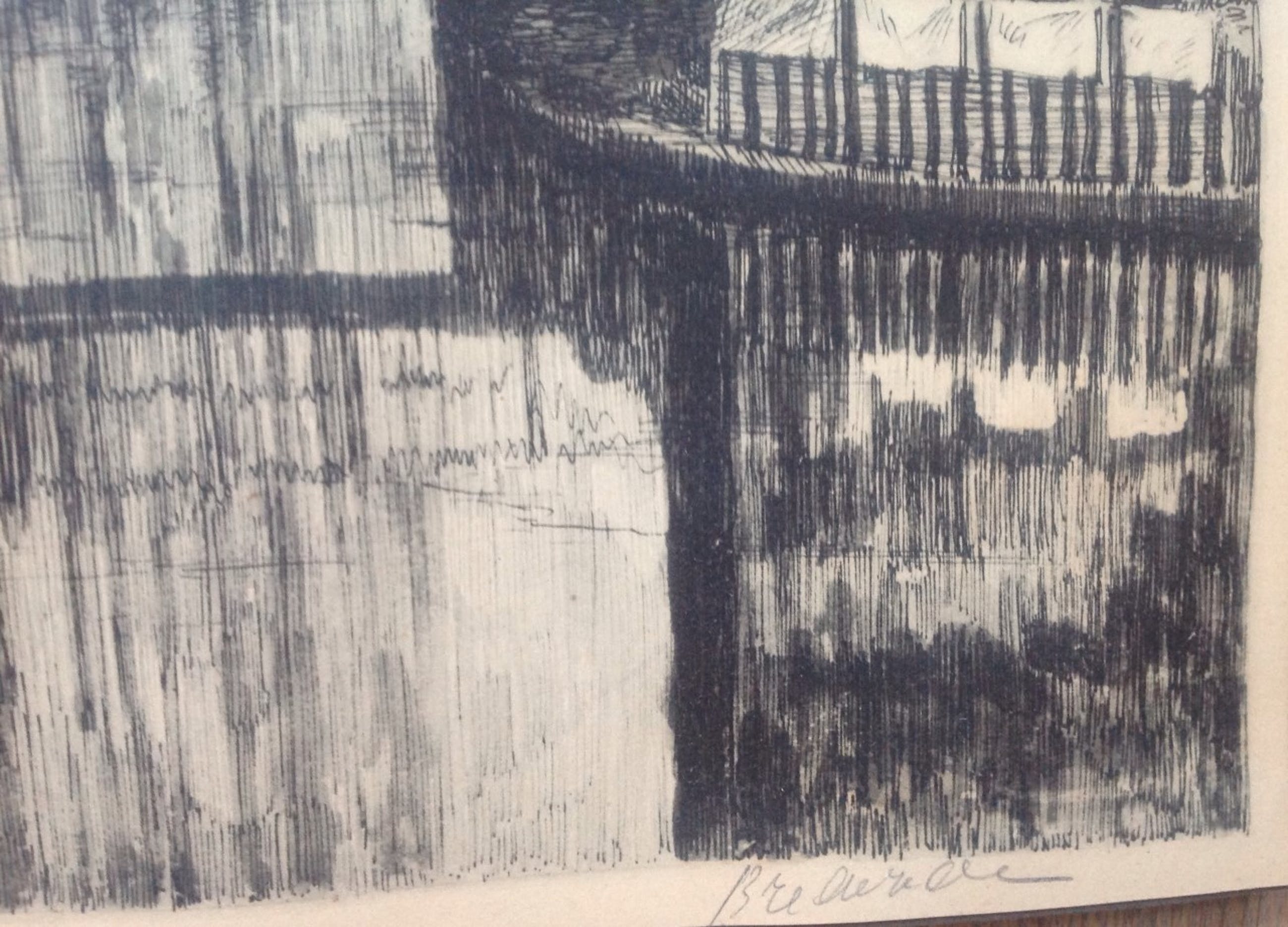 Mooie grote handgesigneerde ets door A. van Brederode van Het kolkje te Amsterdam.