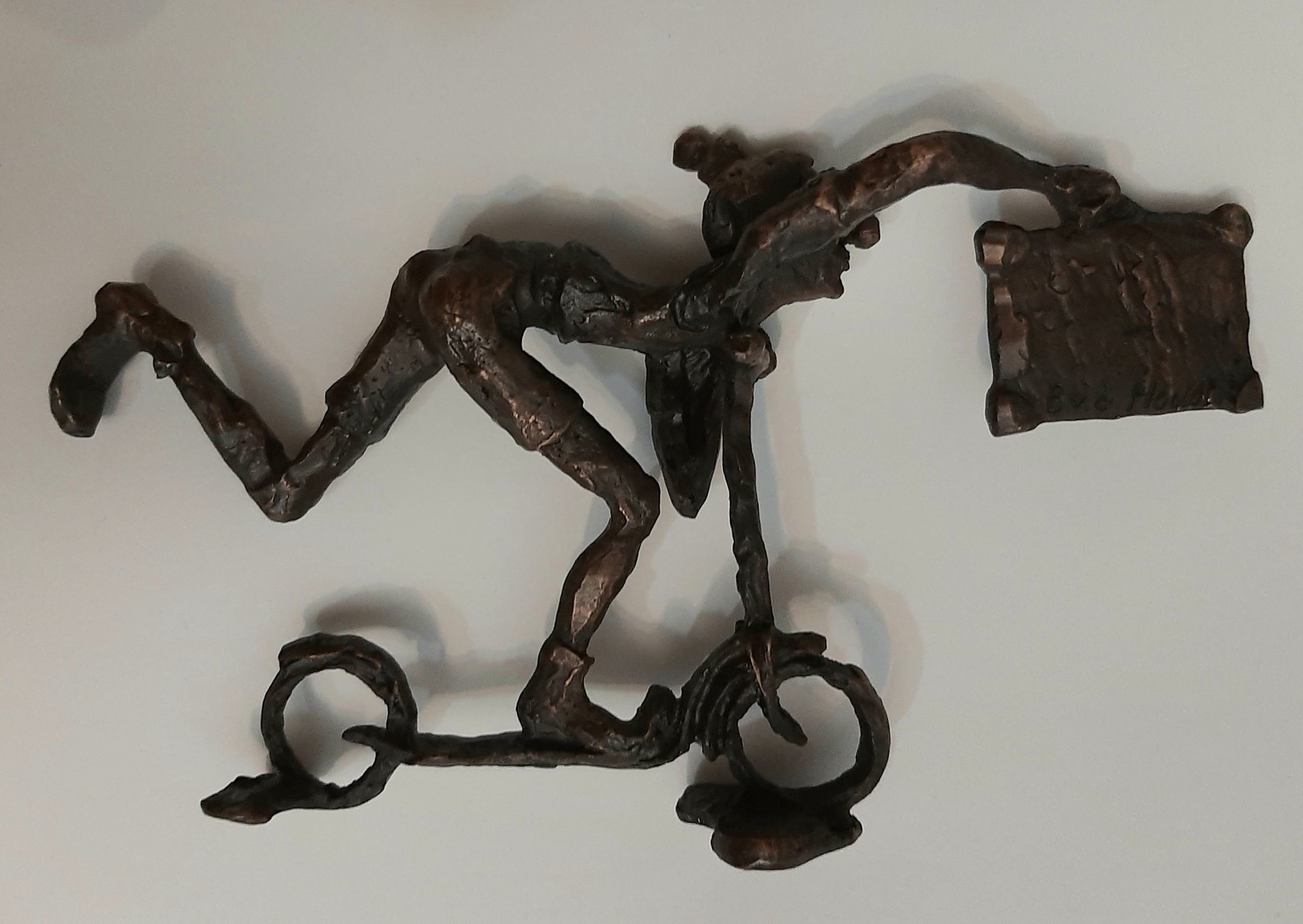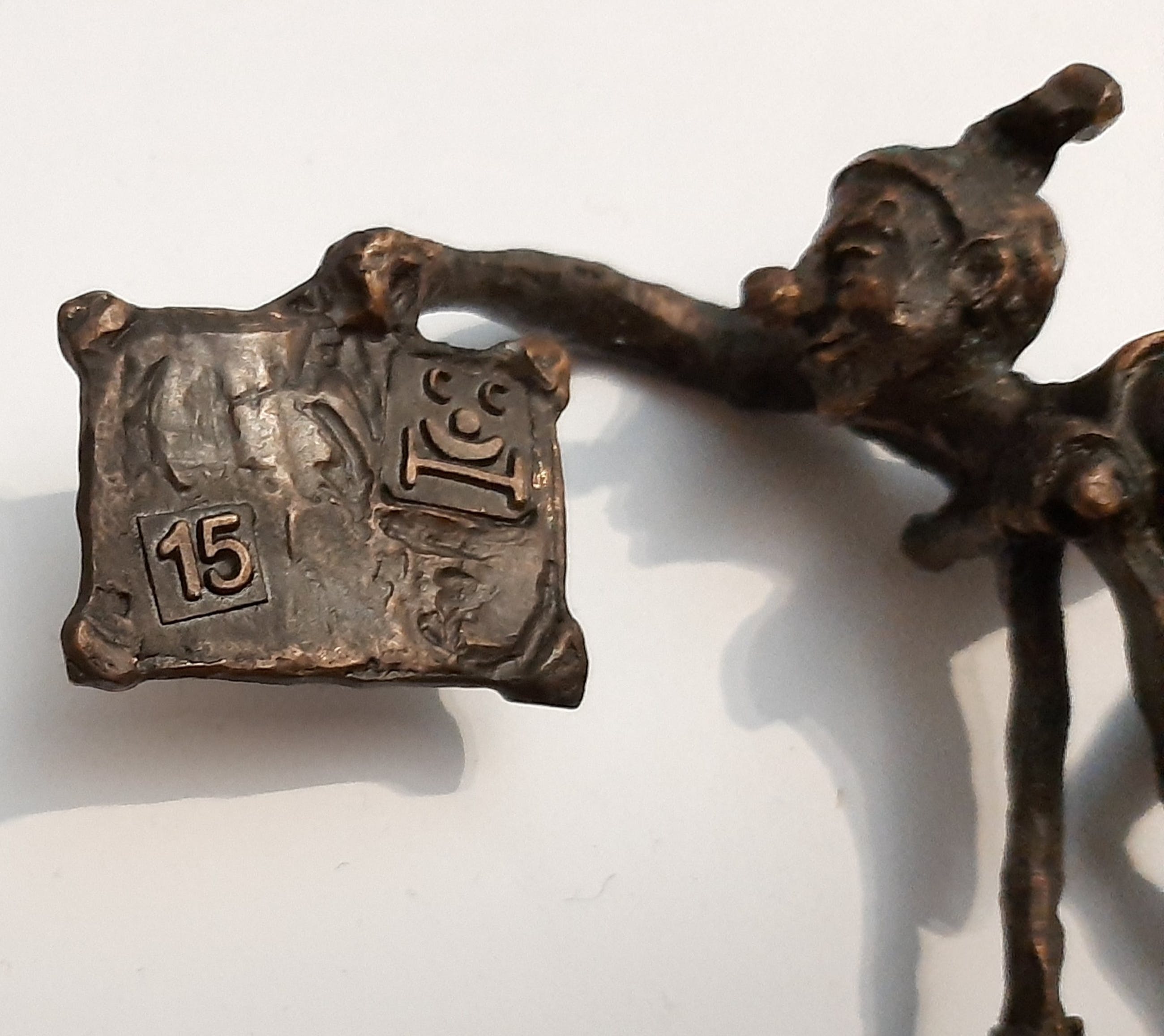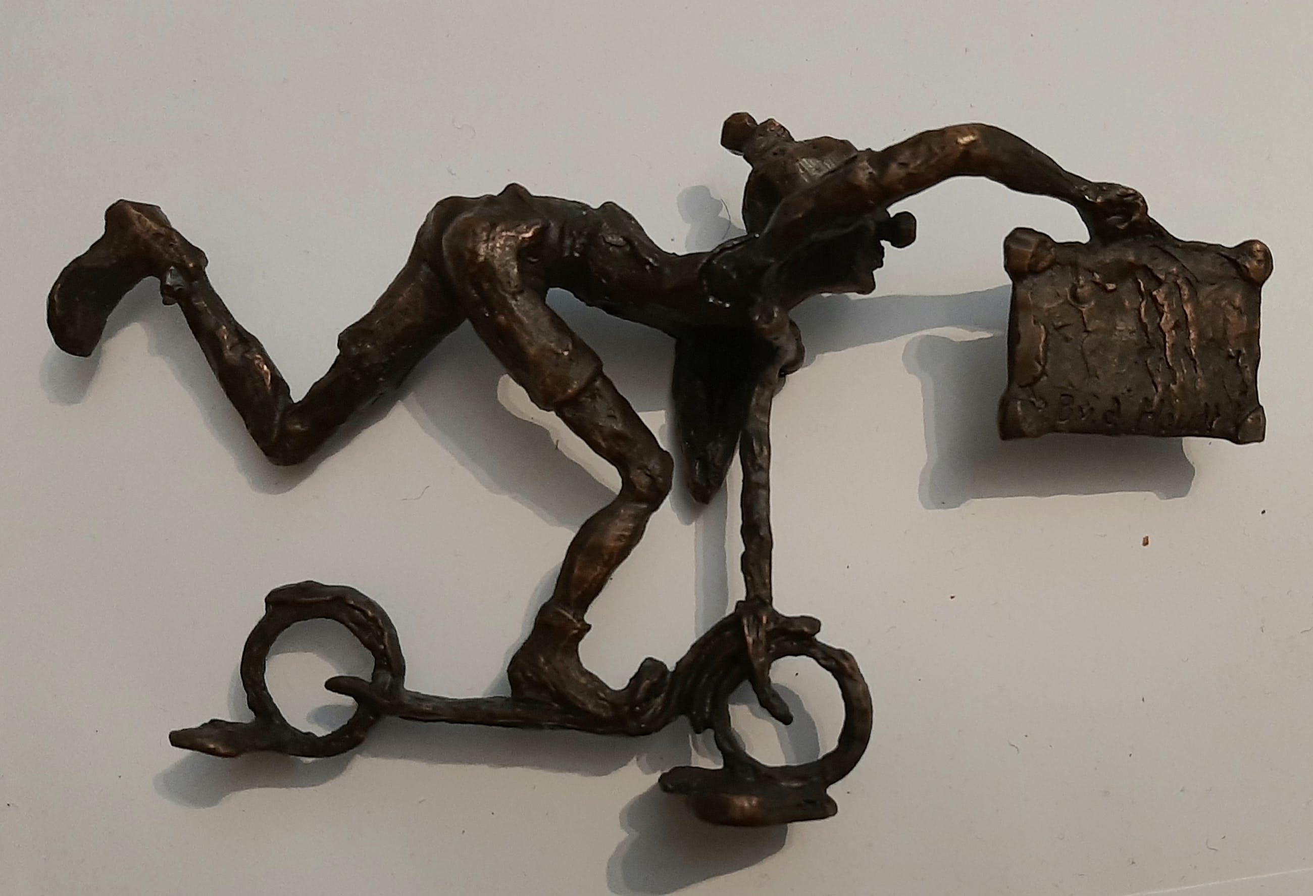 Bronzen beeld van een clown op een step. Gesigneerd door Brigitte van den Houdt. Dit object wordt zorgvuldig verpakt en verzonden.