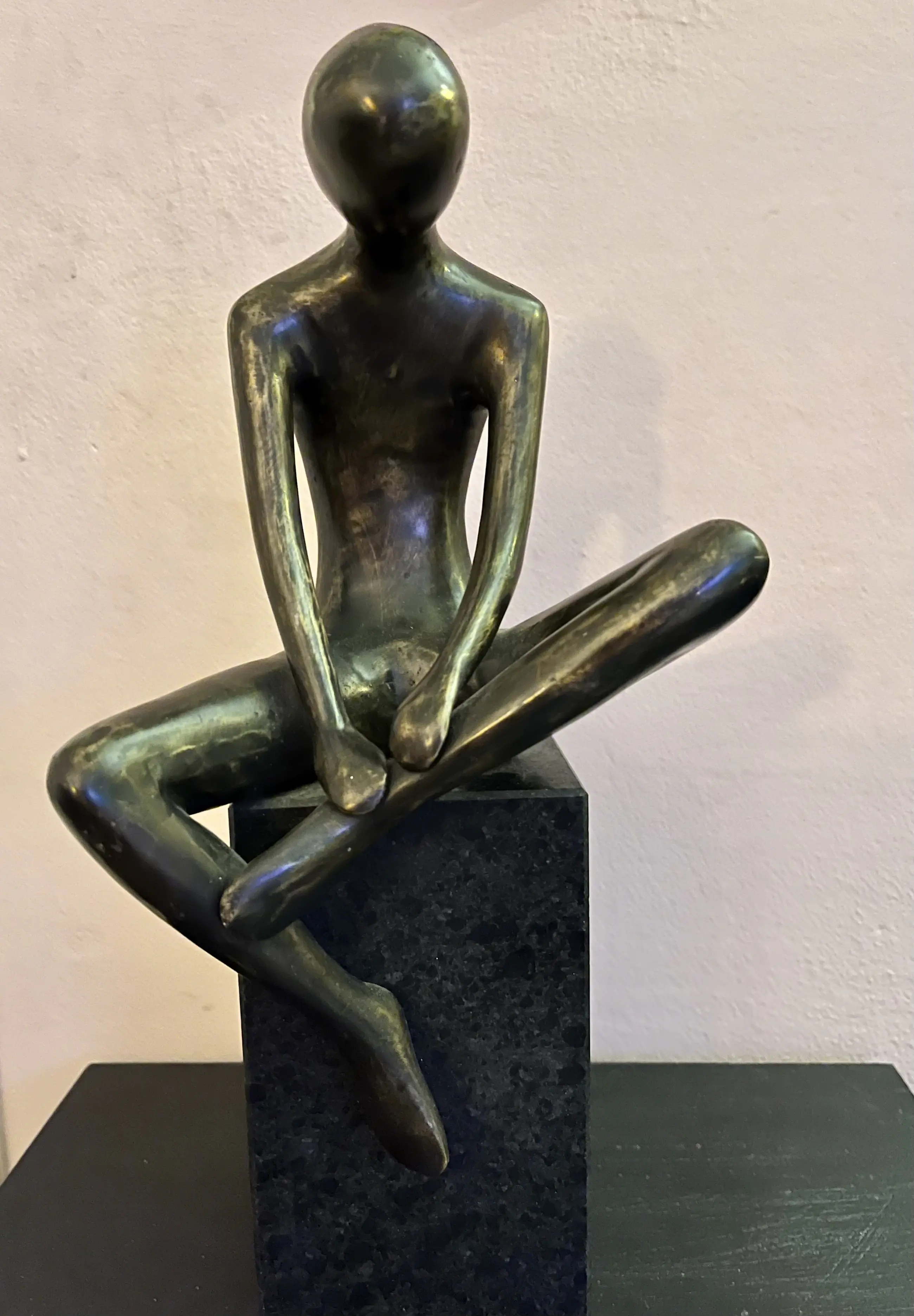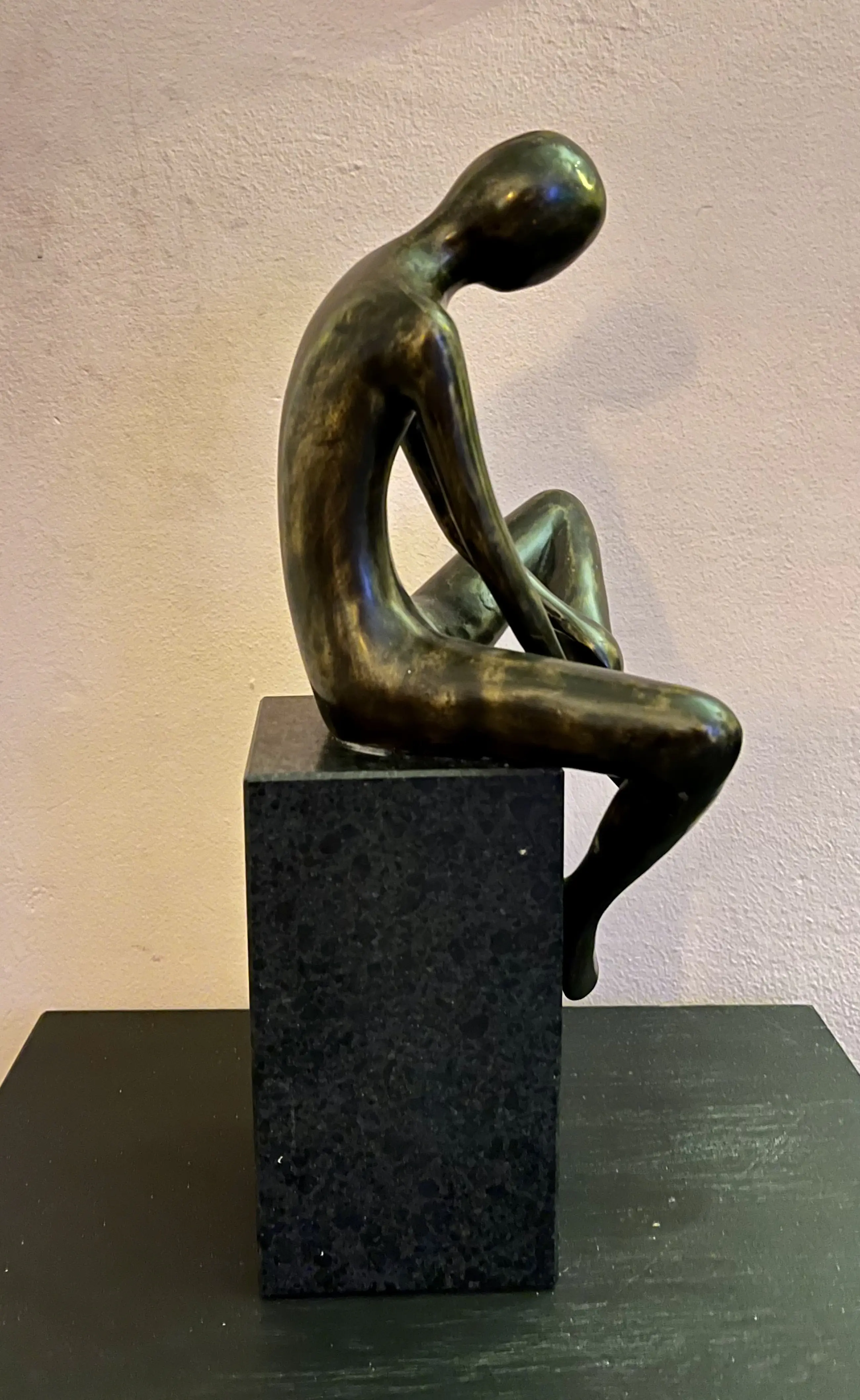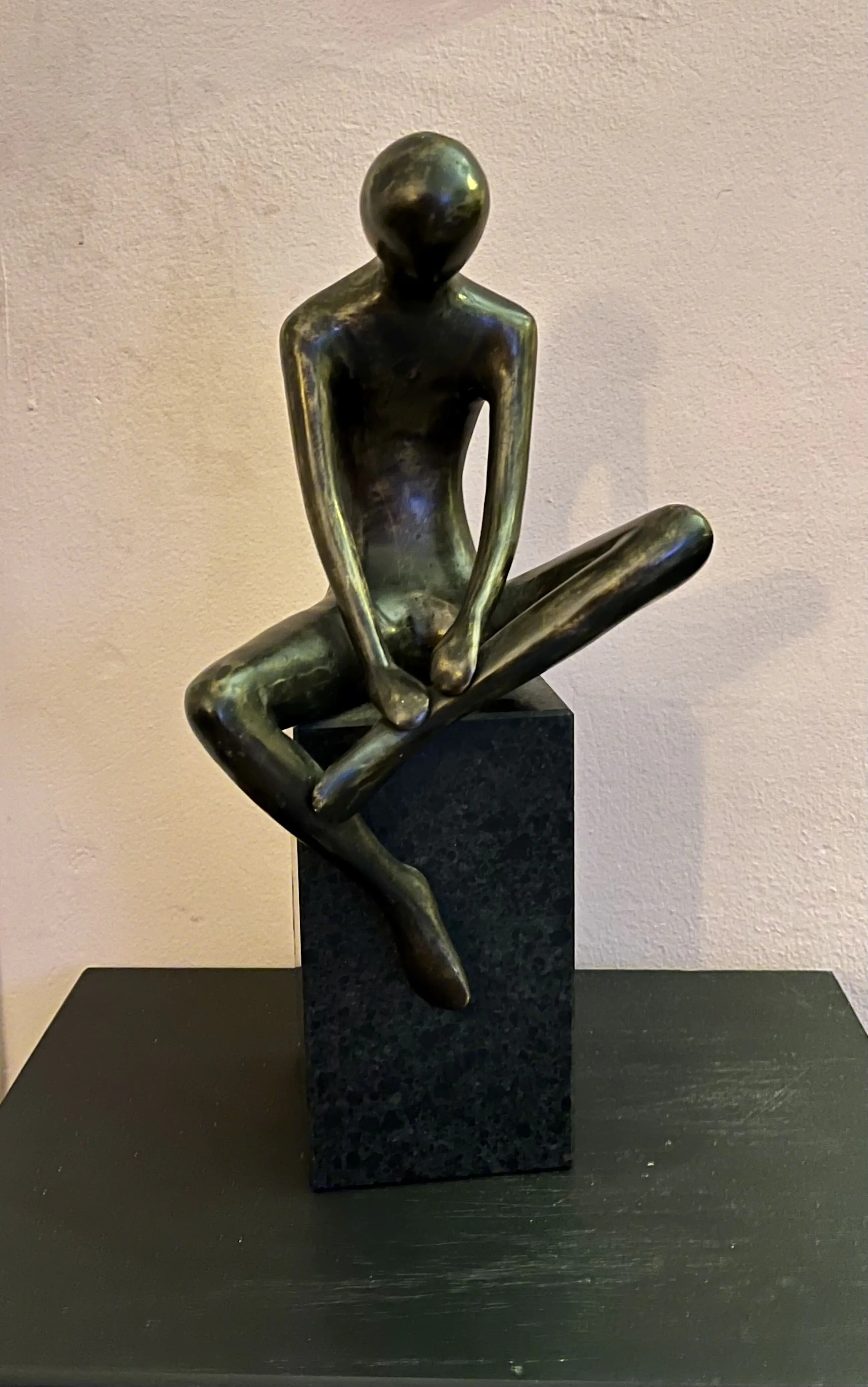 Prachtig exclusief en zeer zwaar bronzen sculptuur (mediteren) op een sokkel van graniet.