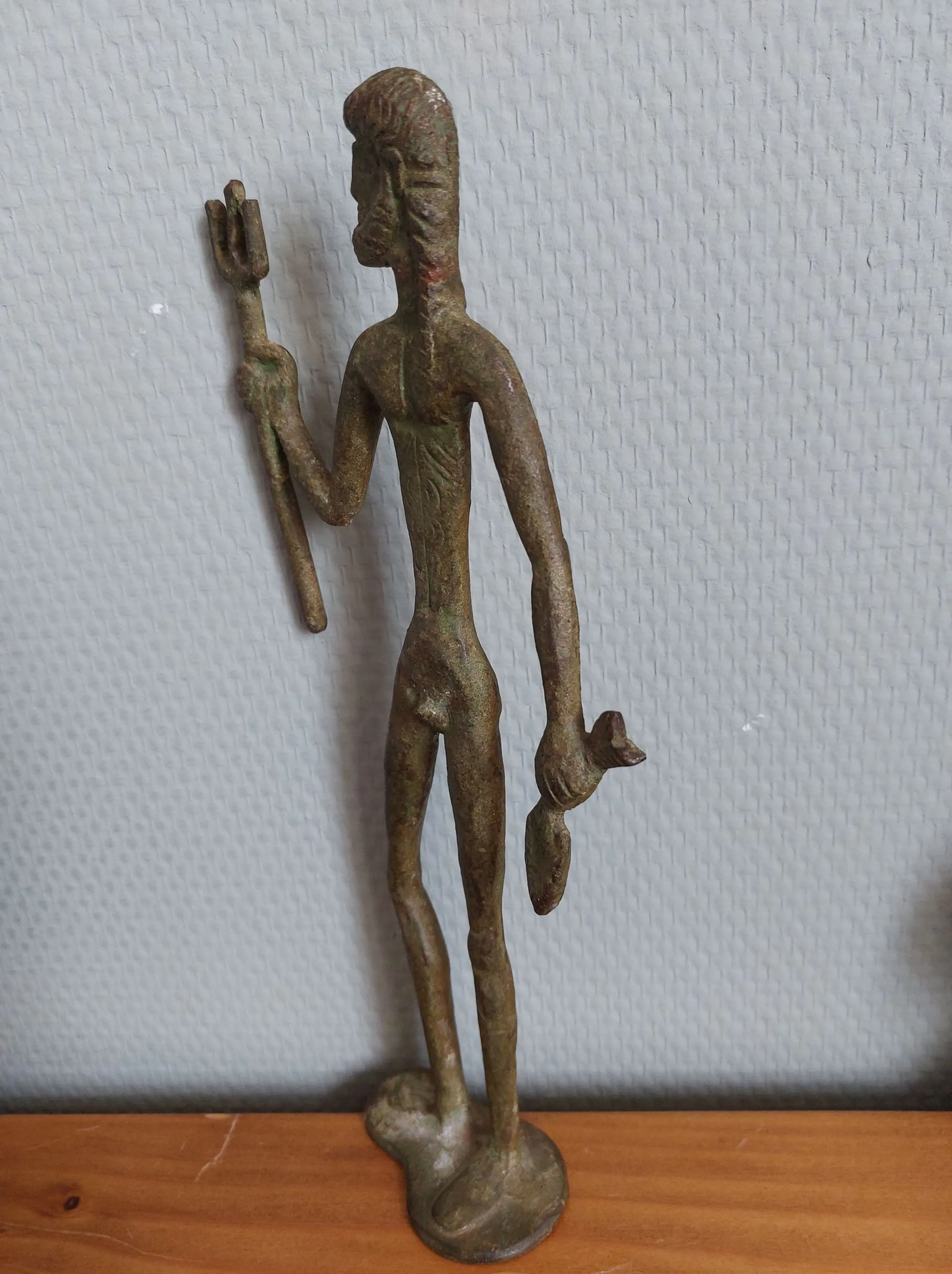 prachtig gedetailleerd bronzen beeldje van de "God van de Zee" is in zeer goede staat voor zijn leeftijd