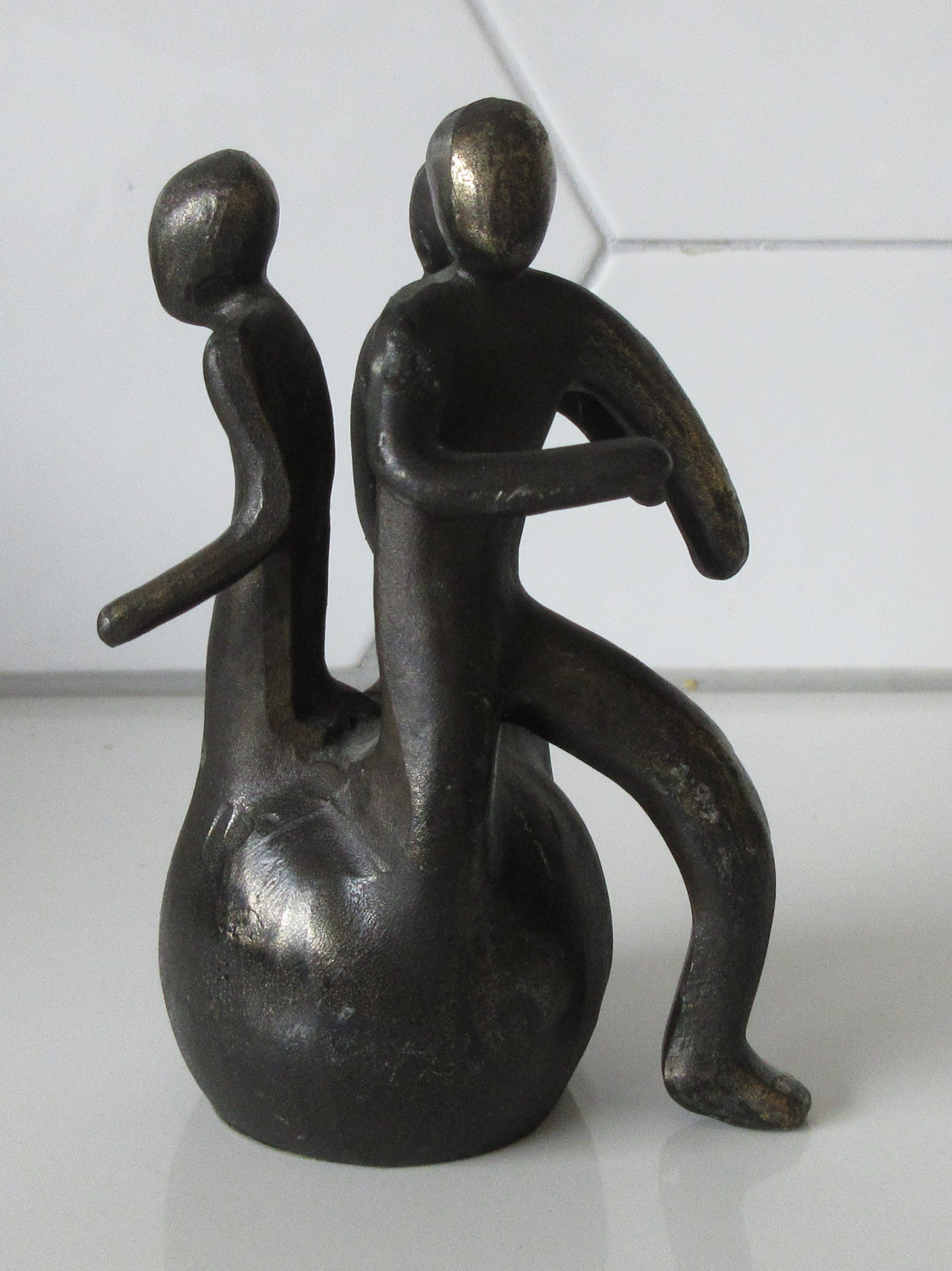 Bronzen beeldje gemaakt voor de Universiteit Utrecht ontwerp Maarten Benschop. Niet gemerkt, aan de onderzijde staat wel de naam van de Universiteit Utrecht.