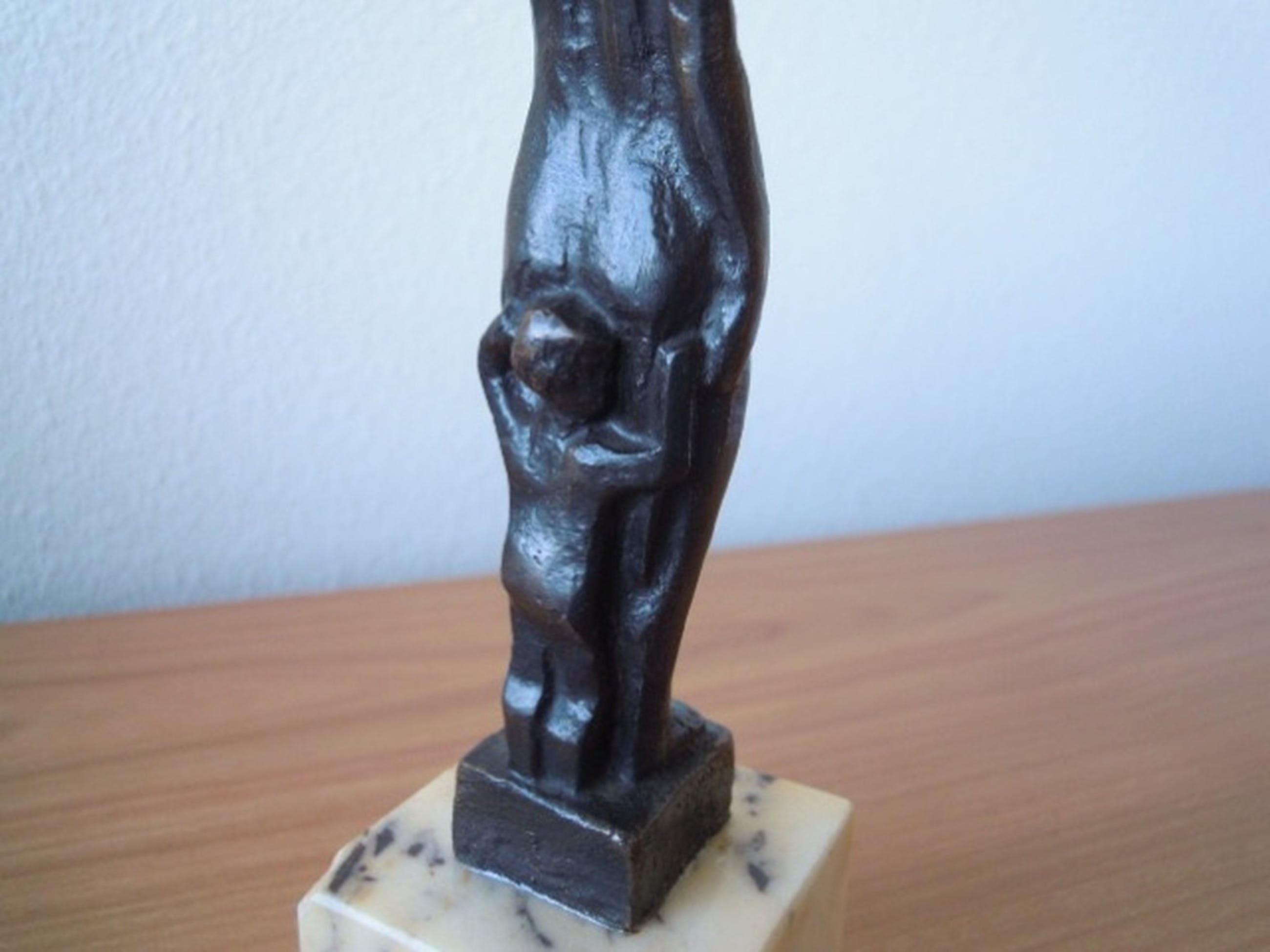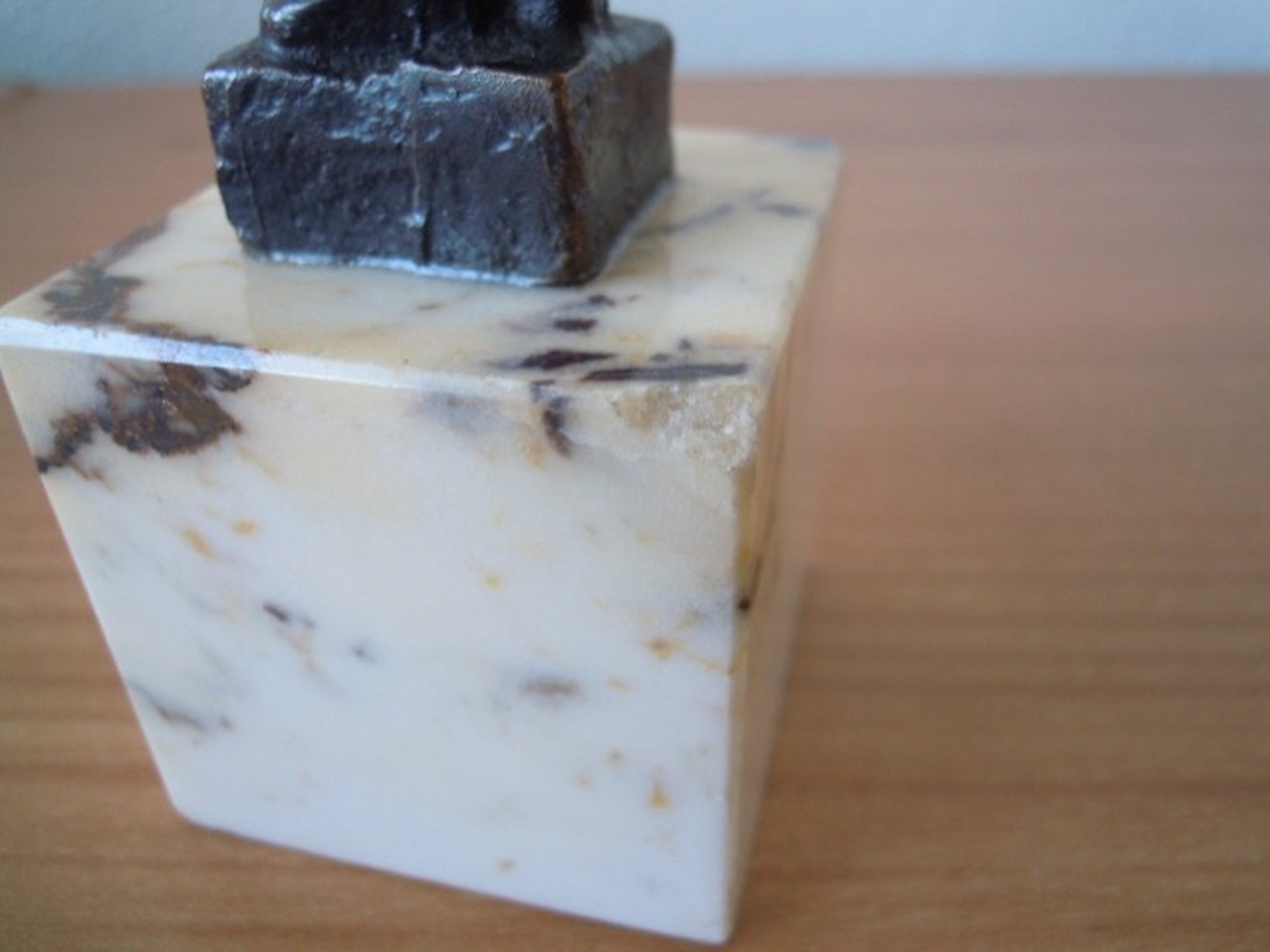 Van de sokkel is een heel klein hoekje af - waarvan foto is bijgevoegd.