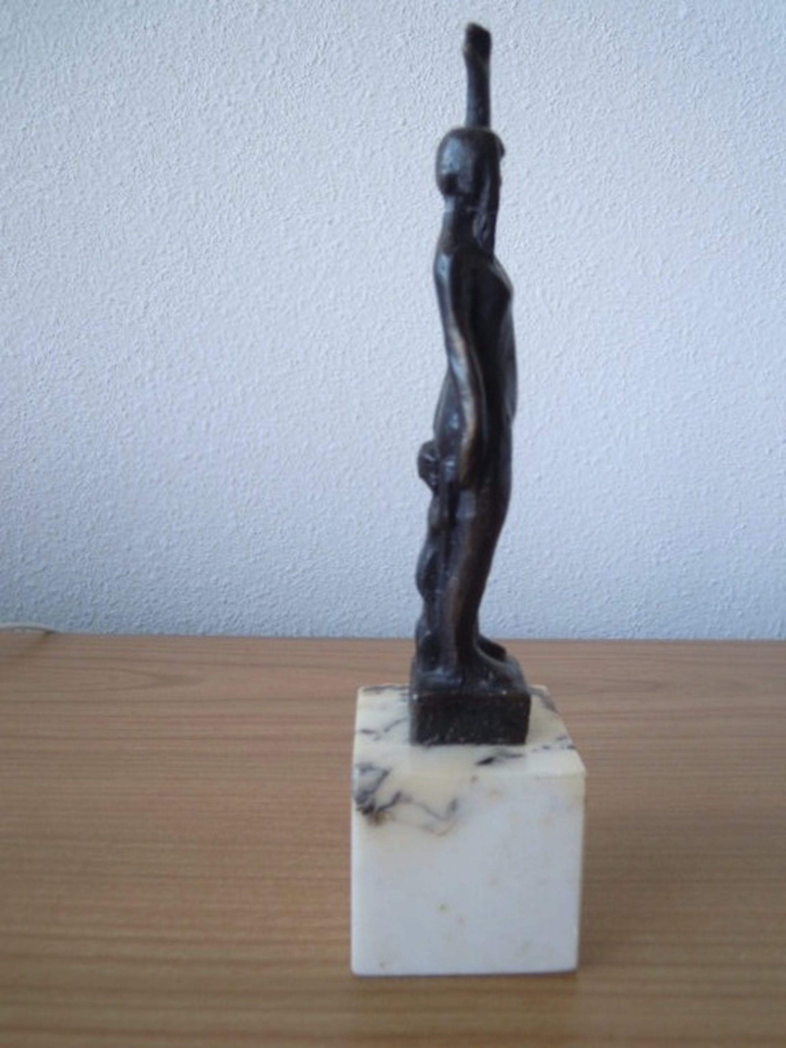Het beeldje is inclusief de sokkel 20 cm hoog.