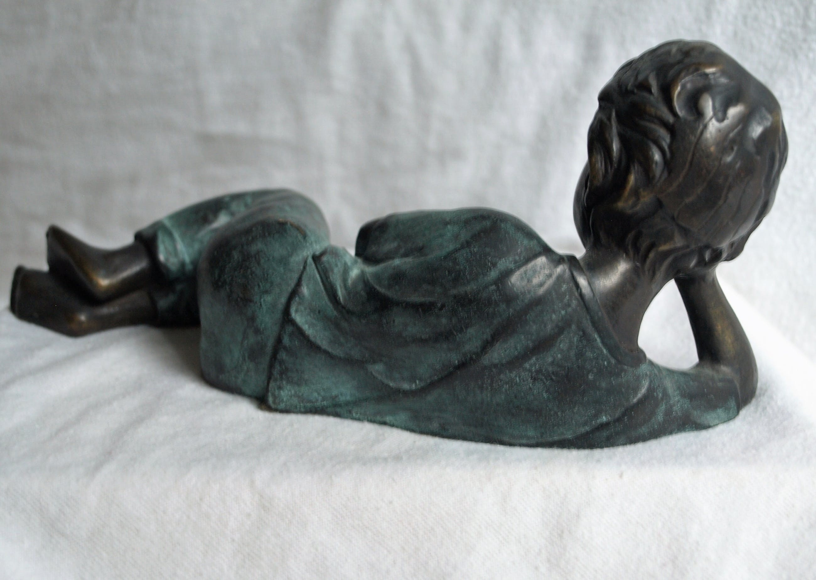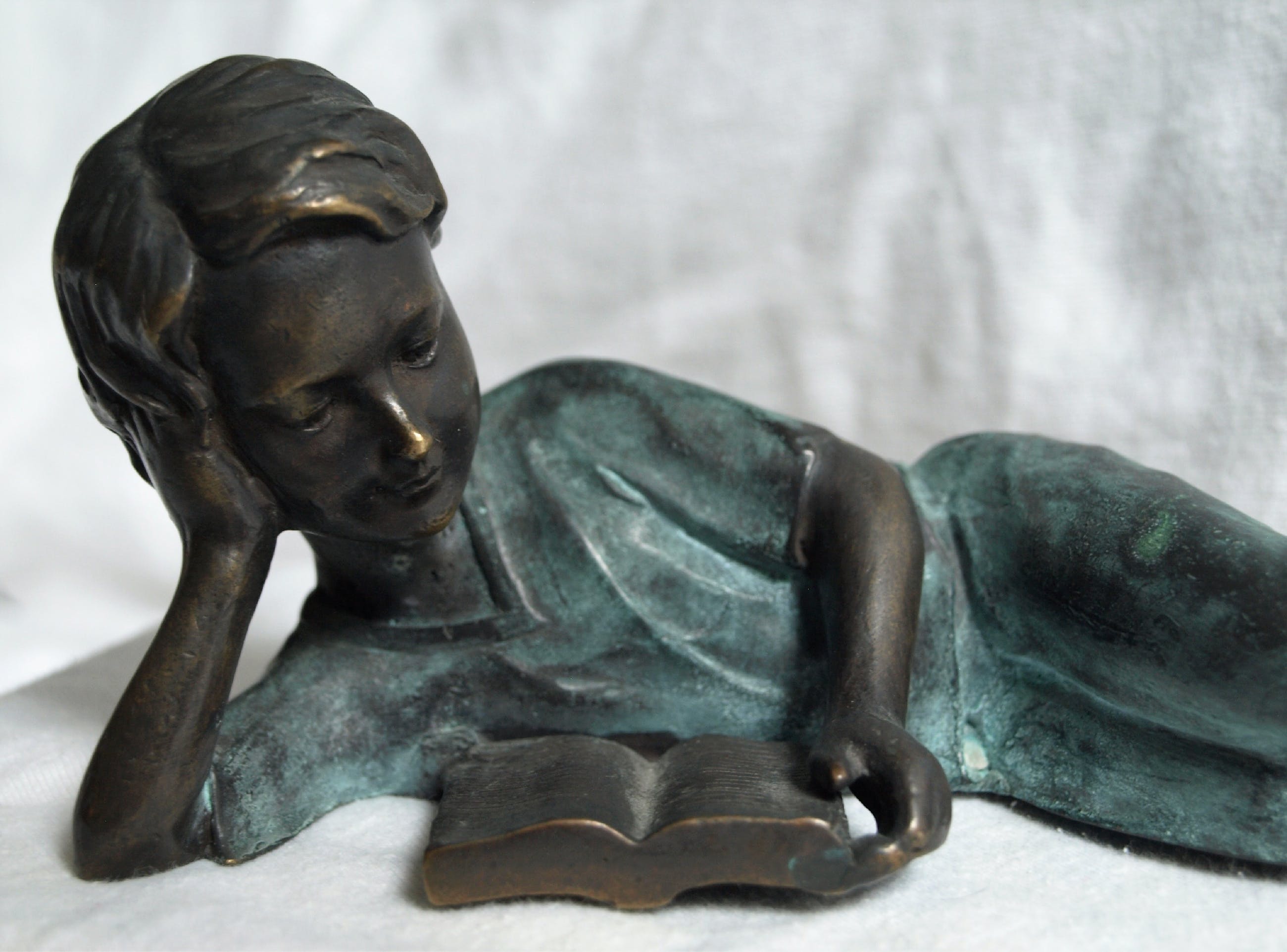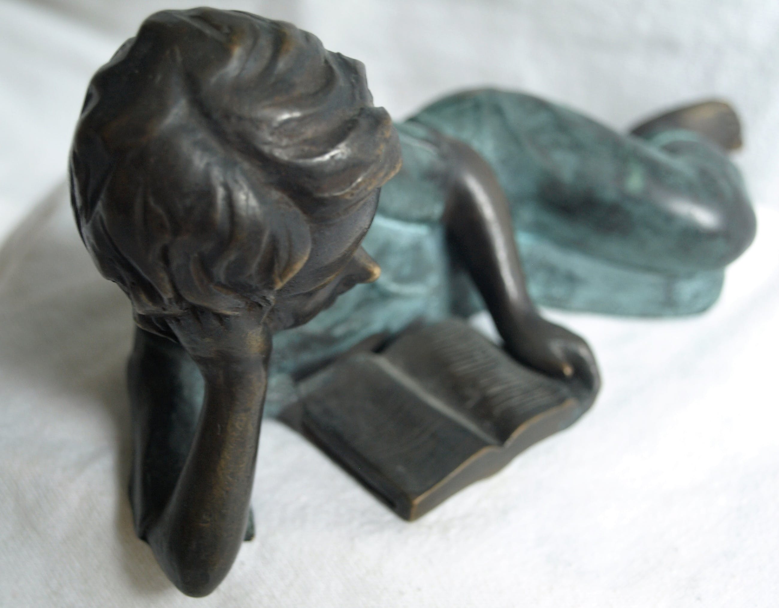Een bronzen leesbeeldje van een ons onbekende kunstenaar.