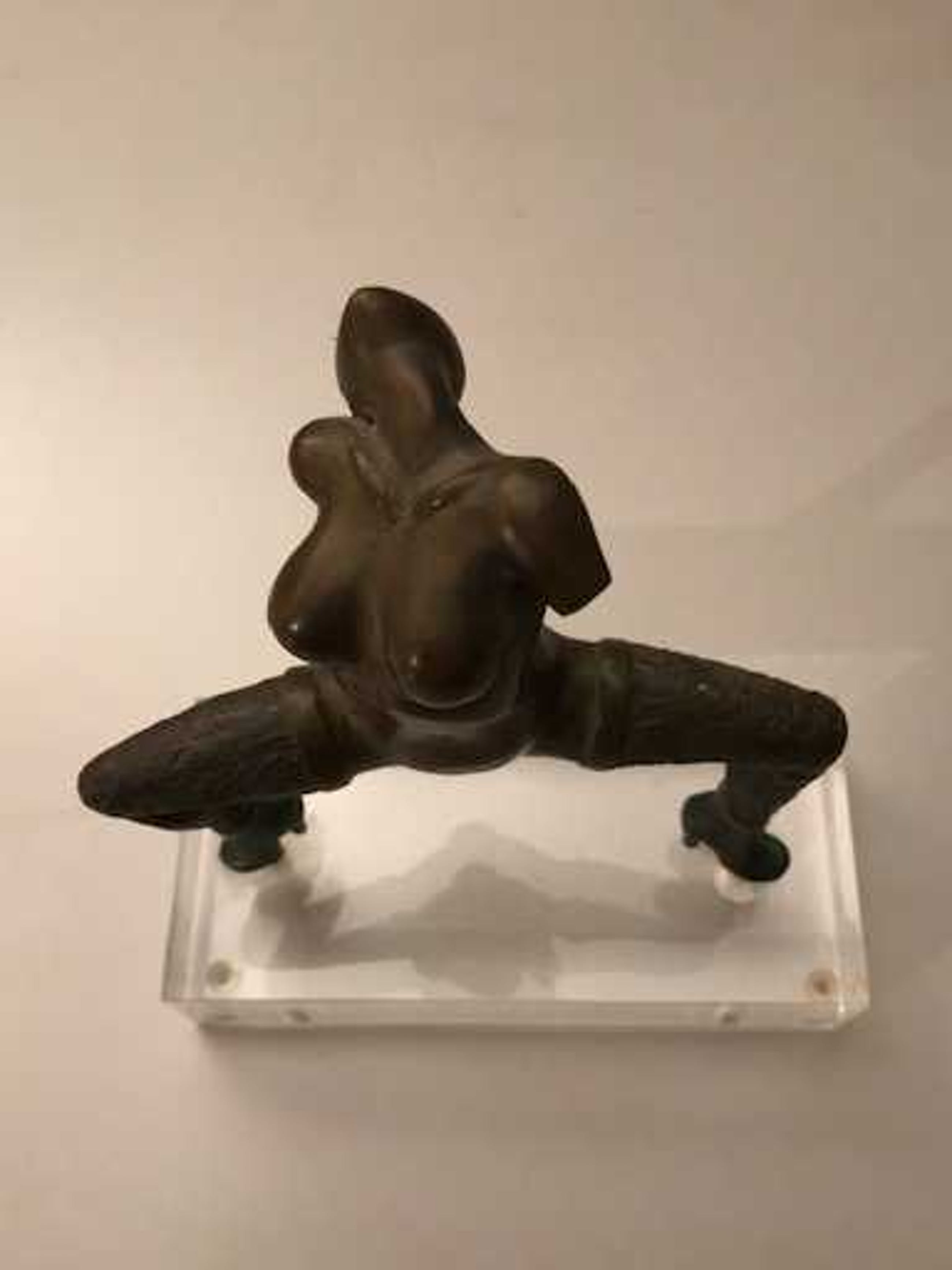 Helaas is de kunstenaar van dit mooie bronzen sculptuur onbekend. Het bronzen beeld is 16 cm hoog en staat op een plexiglas sokkel van 3 cm hoog.