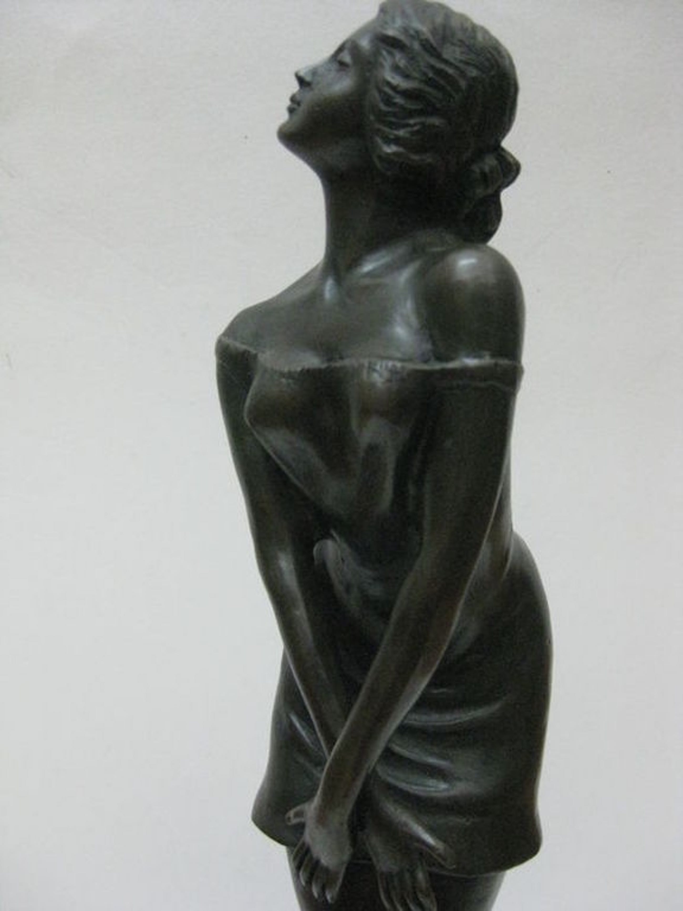 Bronzen sculptuur van een vrouw op een marmeren voetstuk - 20e eeuw kopen? Bied vanaf 195!