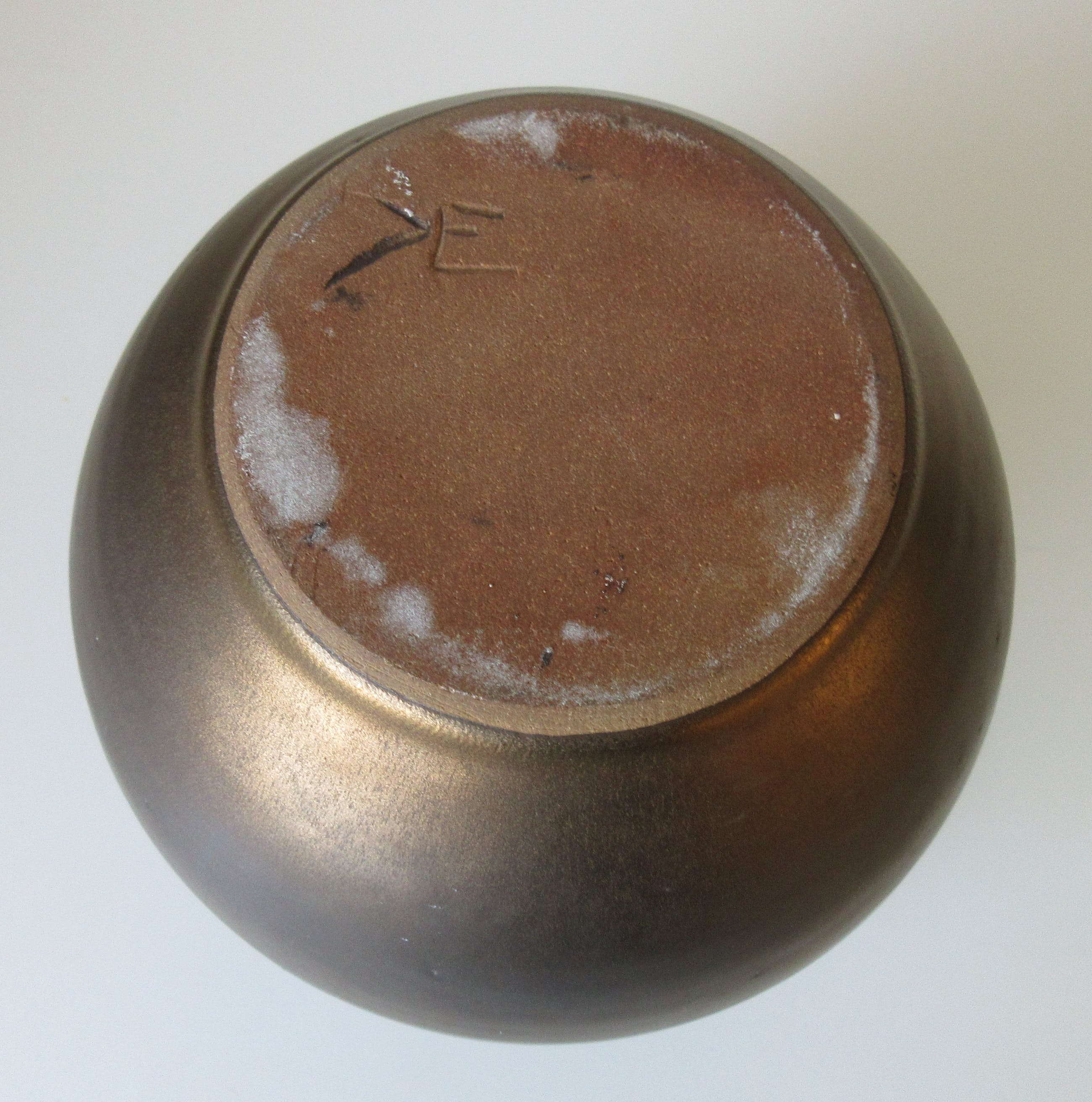 Bronzen steengoed bolvaas van Ecri Katwijk. In zeer goede gebruikte conditie, gesigneerd EK aan de onderzijde.