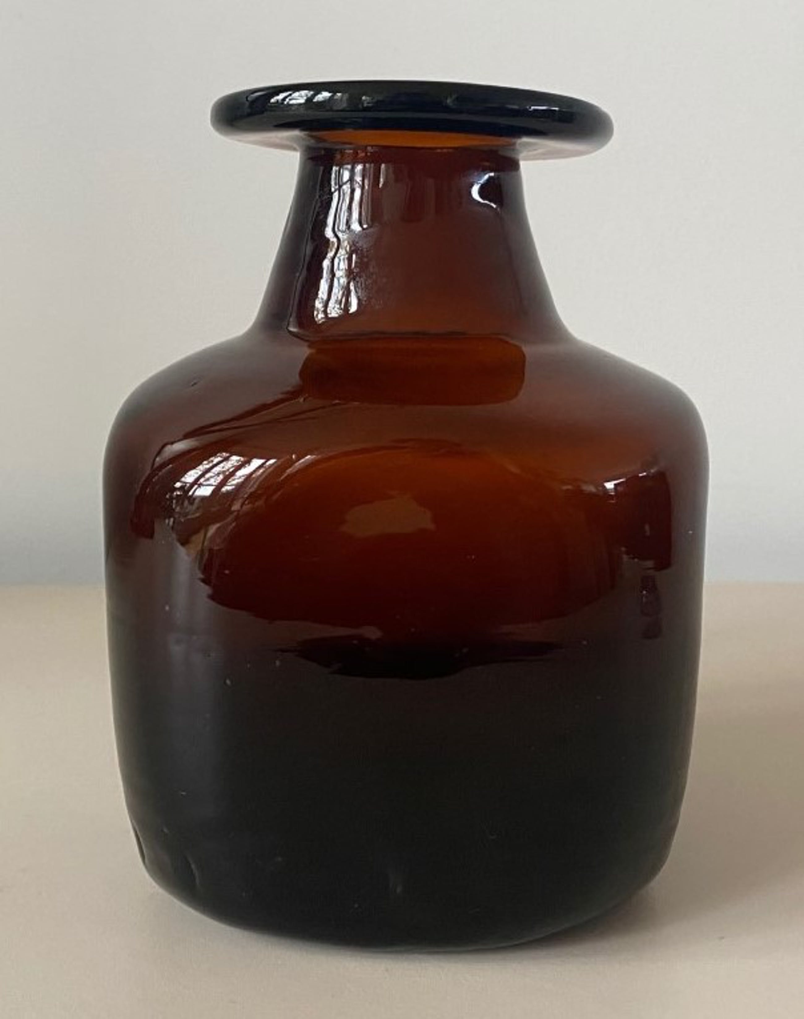 Bruin glazen Flesvaasje ontwerp Erik Hoglund, in prima onbeschadigde conditie voorzien van een pontil merk aan de achterzijde.