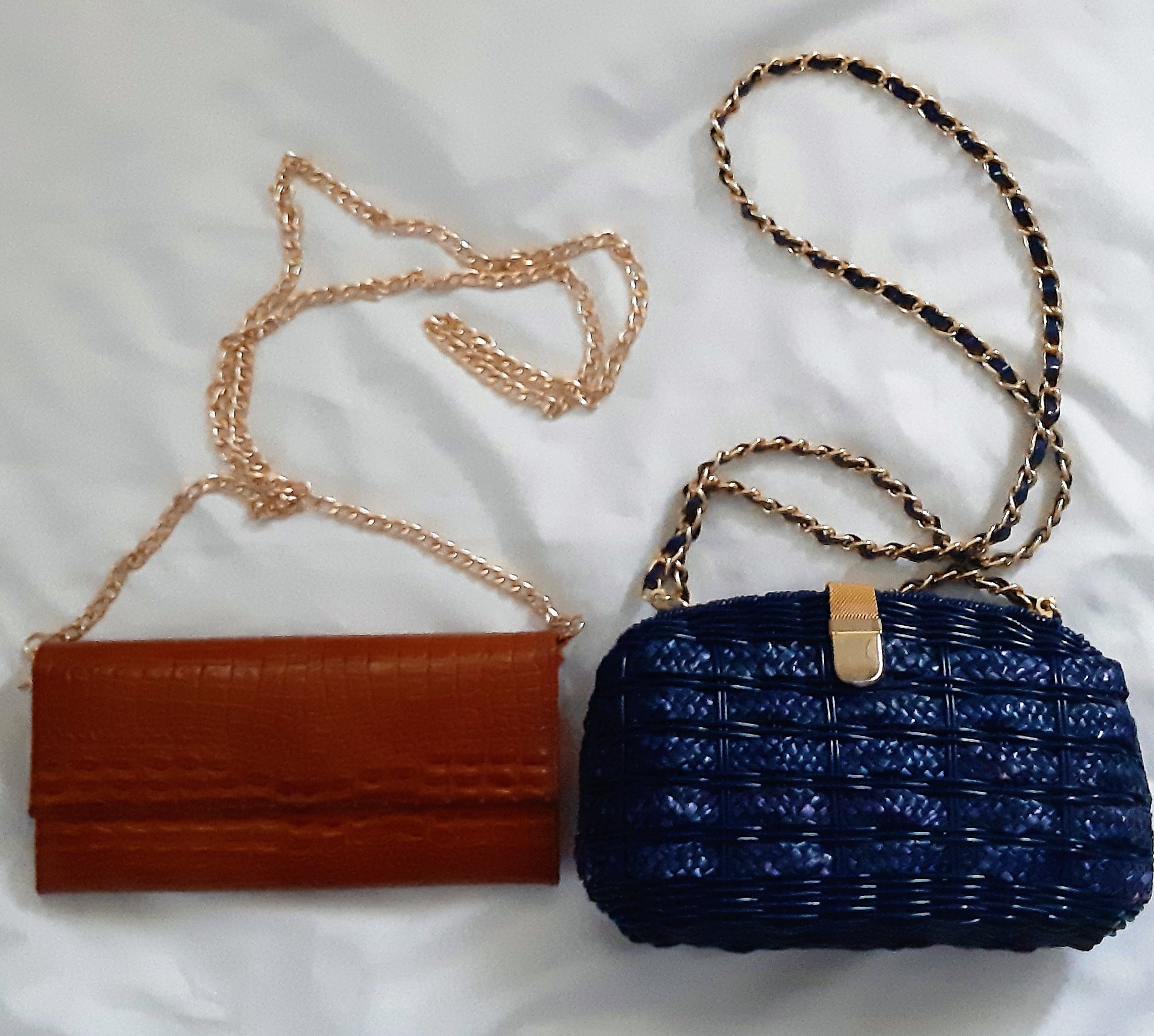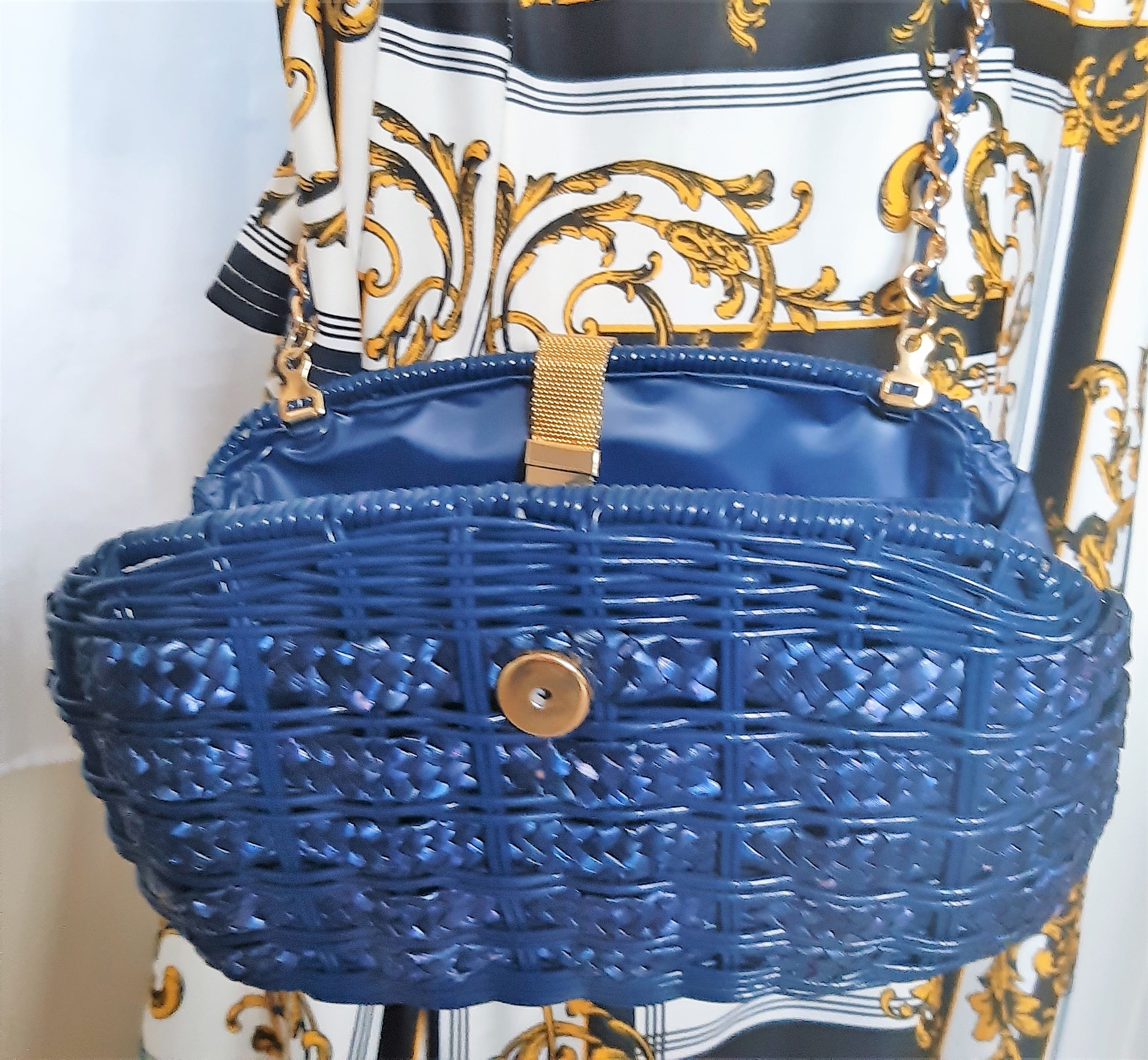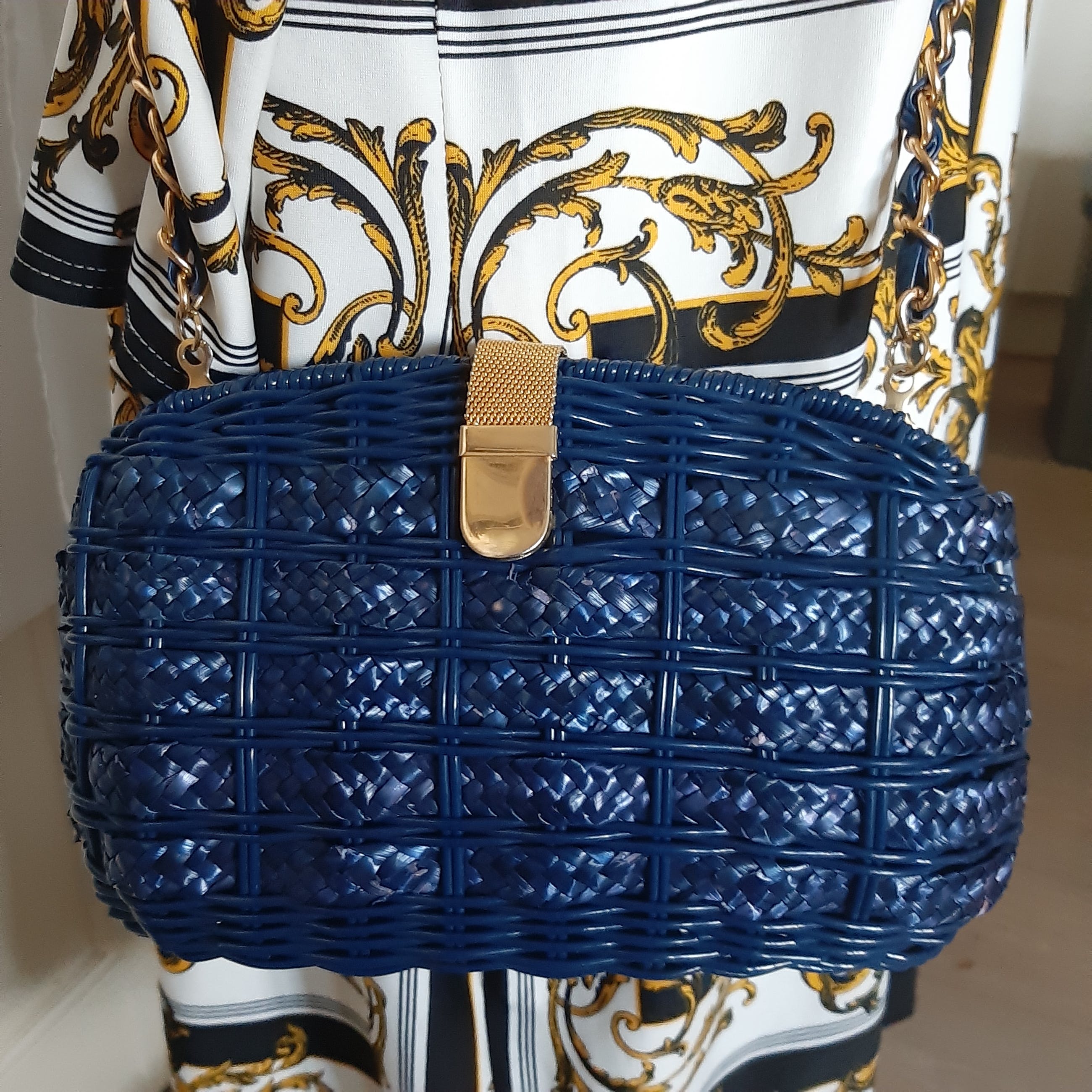 2.tas van echt stro,gemerkt,riem van echt leer met metaal,binnenvoering