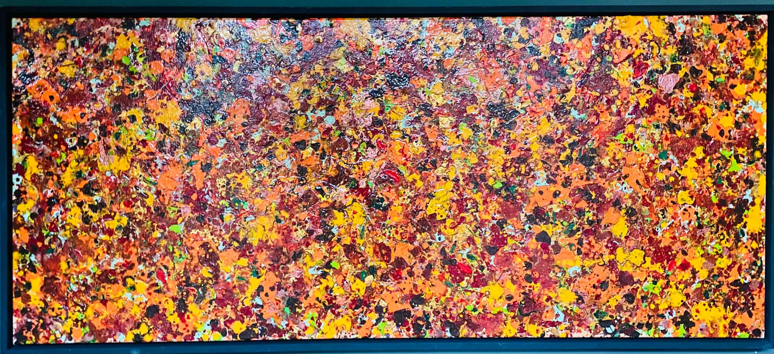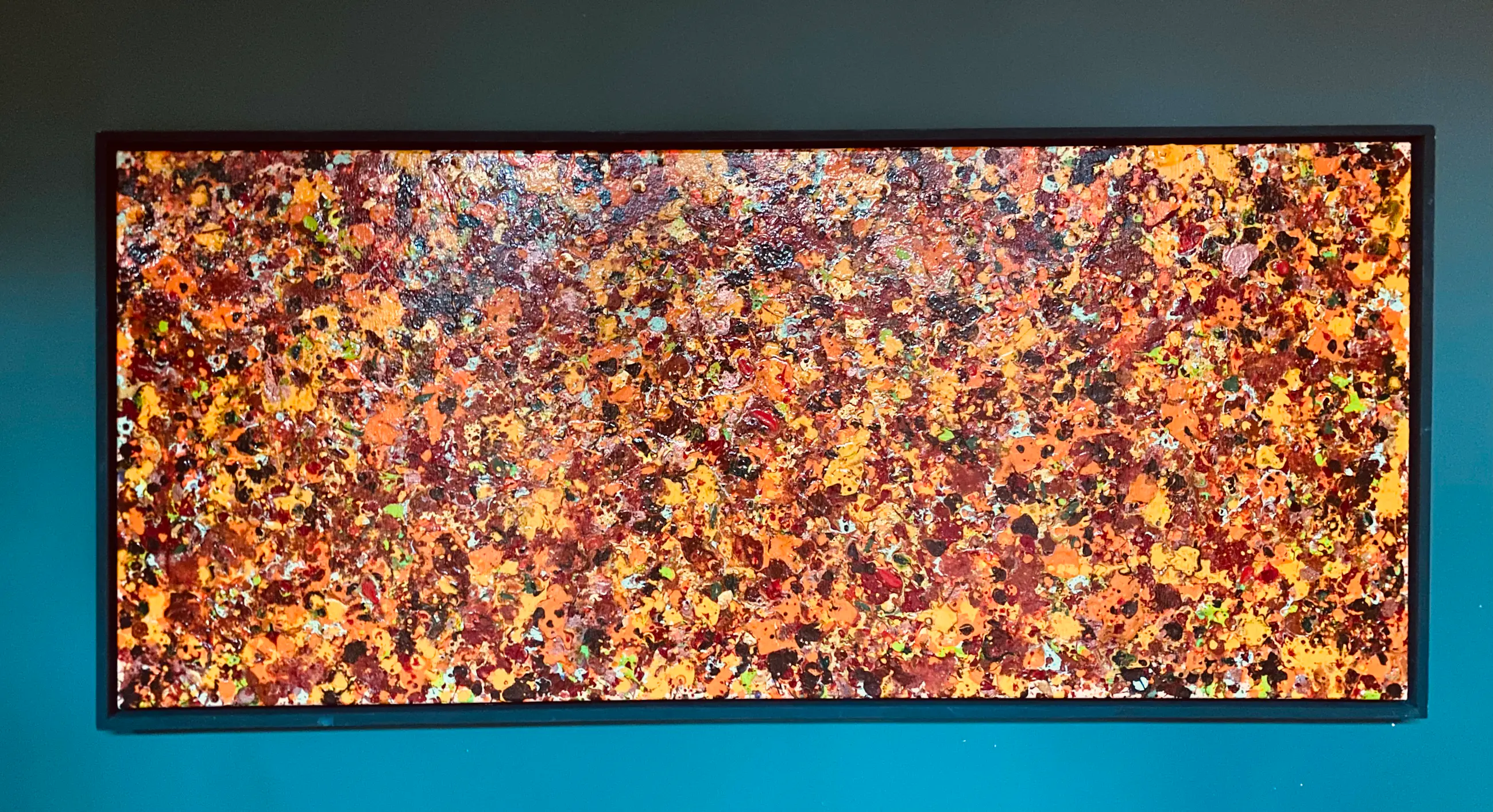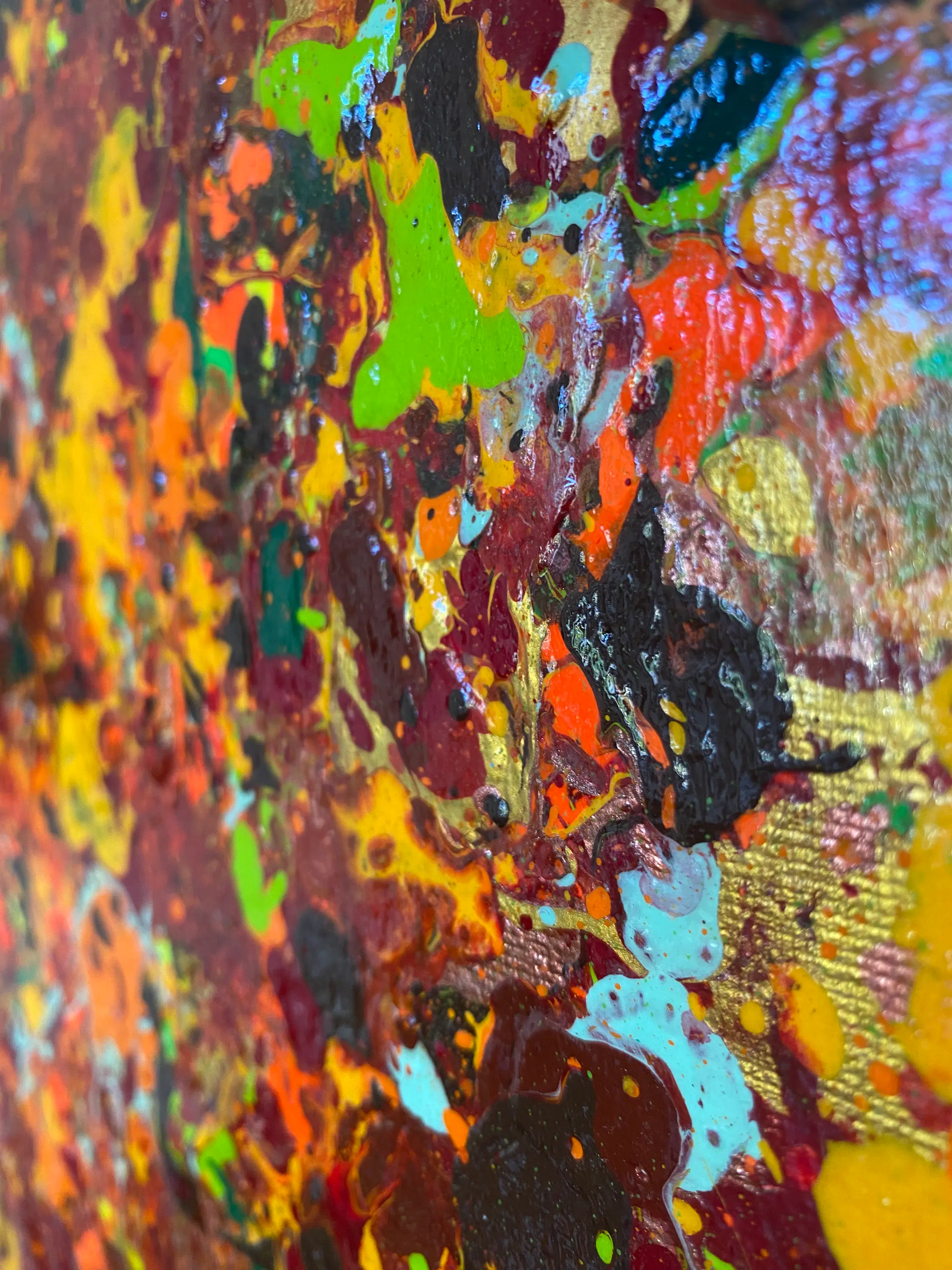 Schilderij in Action Painting. Geïnspireerd door kunstenaars als Jackson Pollock, waarbij verf op het doek wordt gespat, gedruppeld of gegooid om beweging en energie vast te leggen.