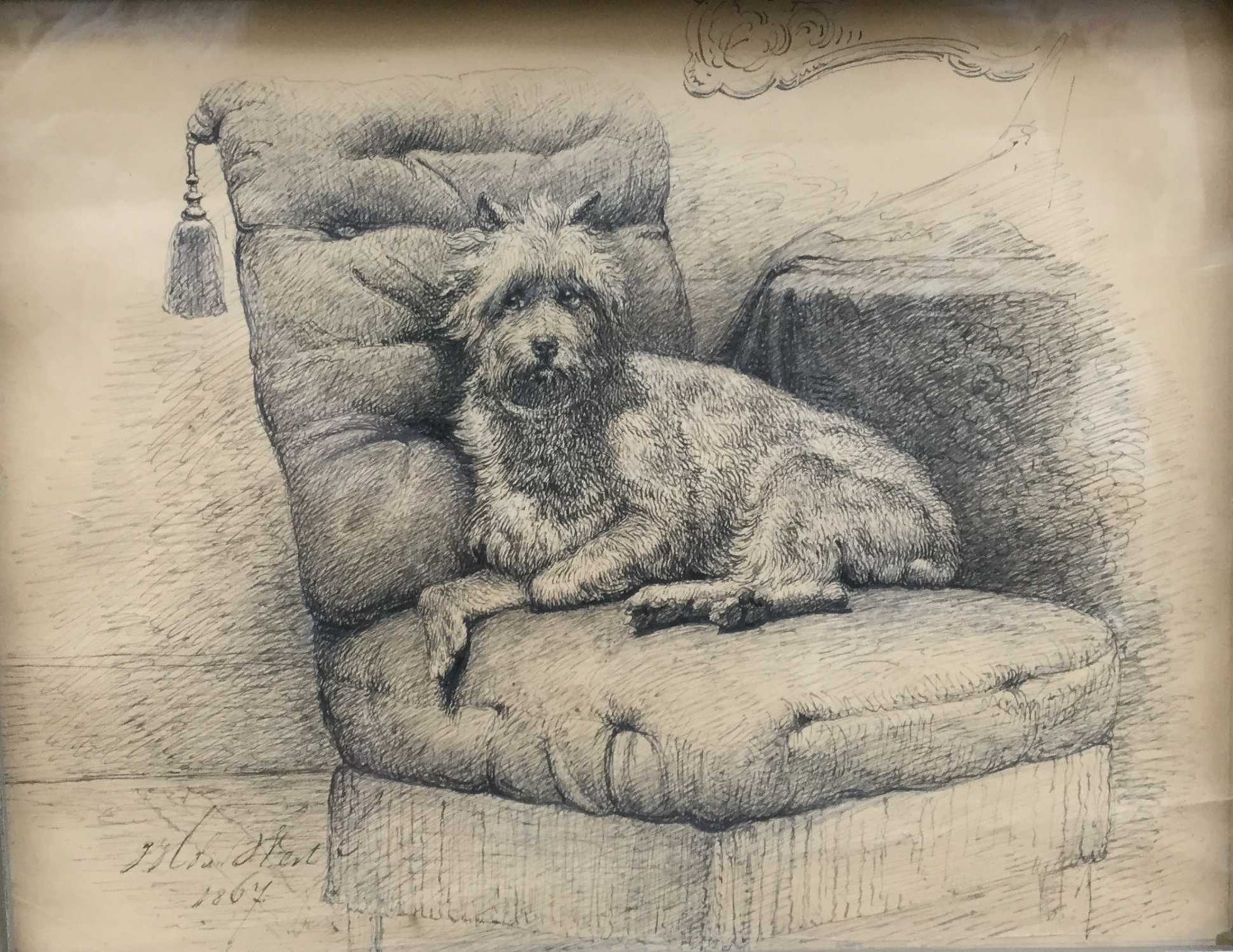 Aandoenlijk pentekeningetje van hond uit 1867.