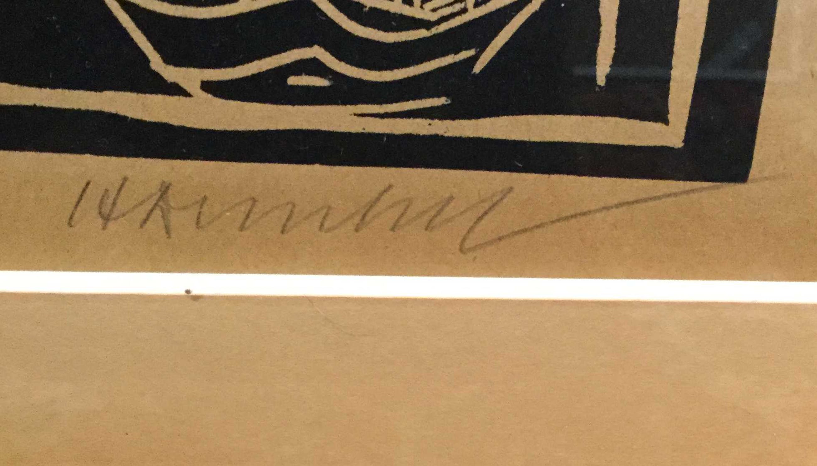 Onleesbaar gesigneerd, portret van Afrikaanse man en vrouw, houtsnede op papier, r.o. gesign. afmeting 29x19, lijstmaat 47x37.