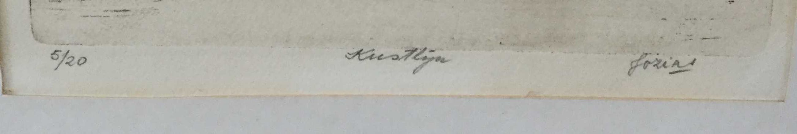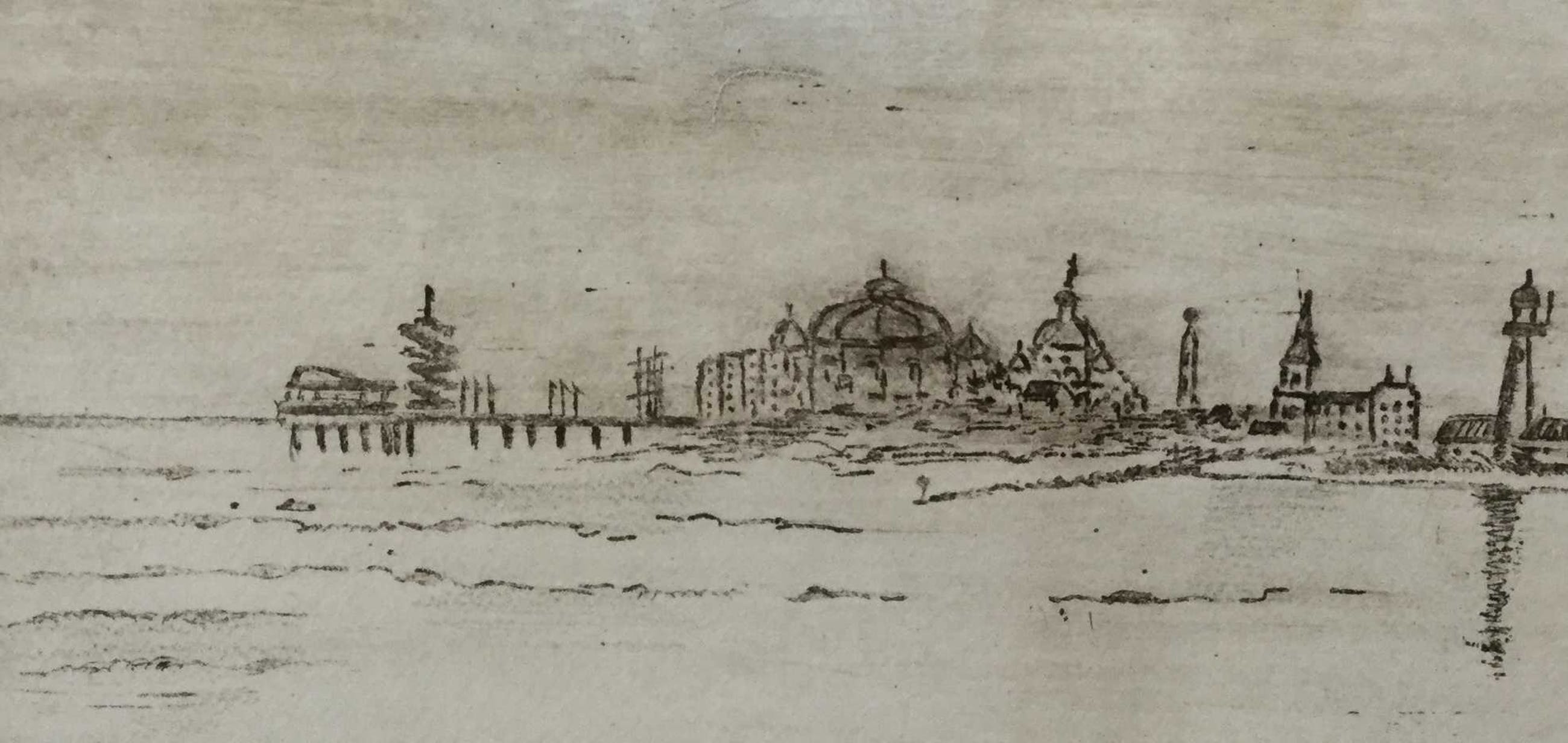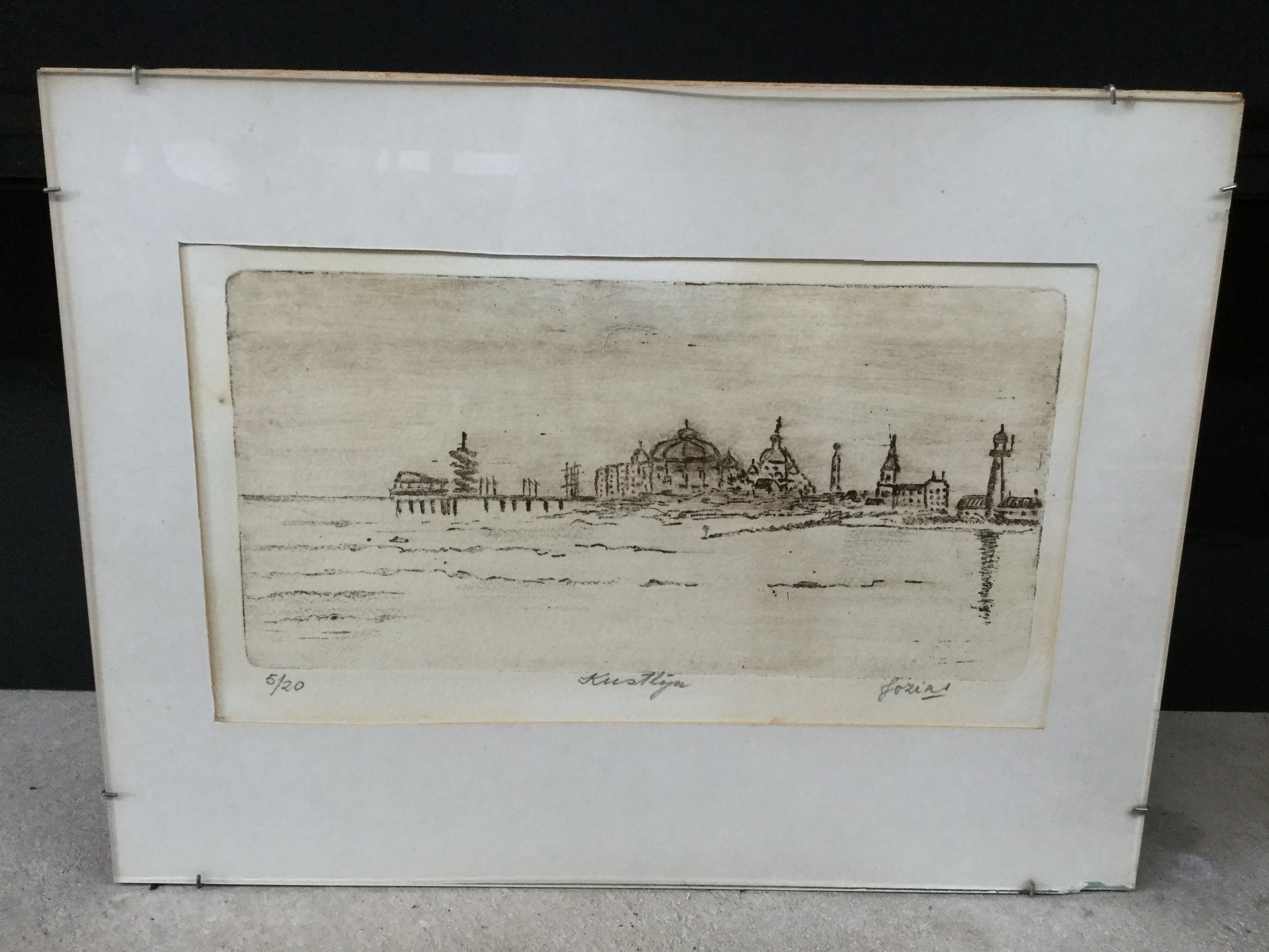 Onbekende kunstenaar, kustlijn, ets, oplage 5/10, beeldmaat 12x23,5 cm, glasmaat 24x32 cm.