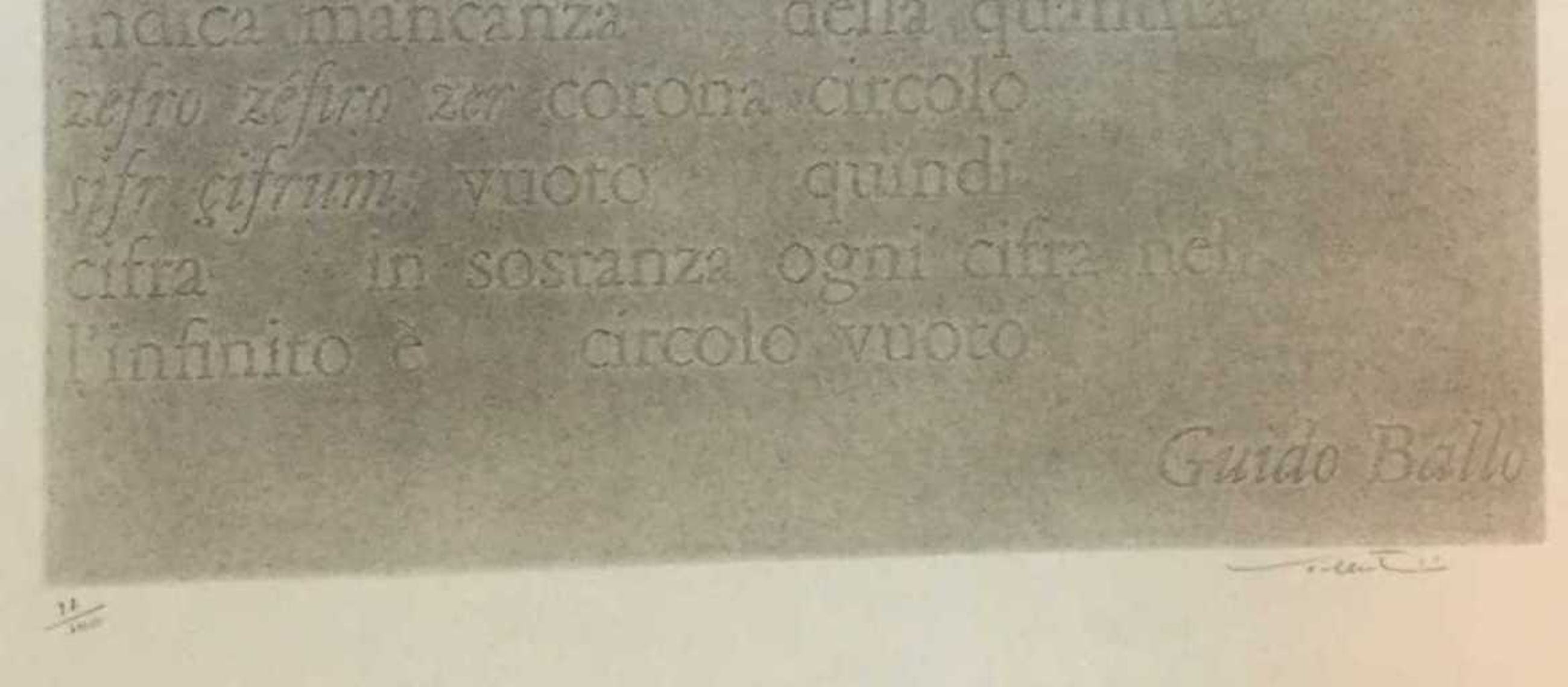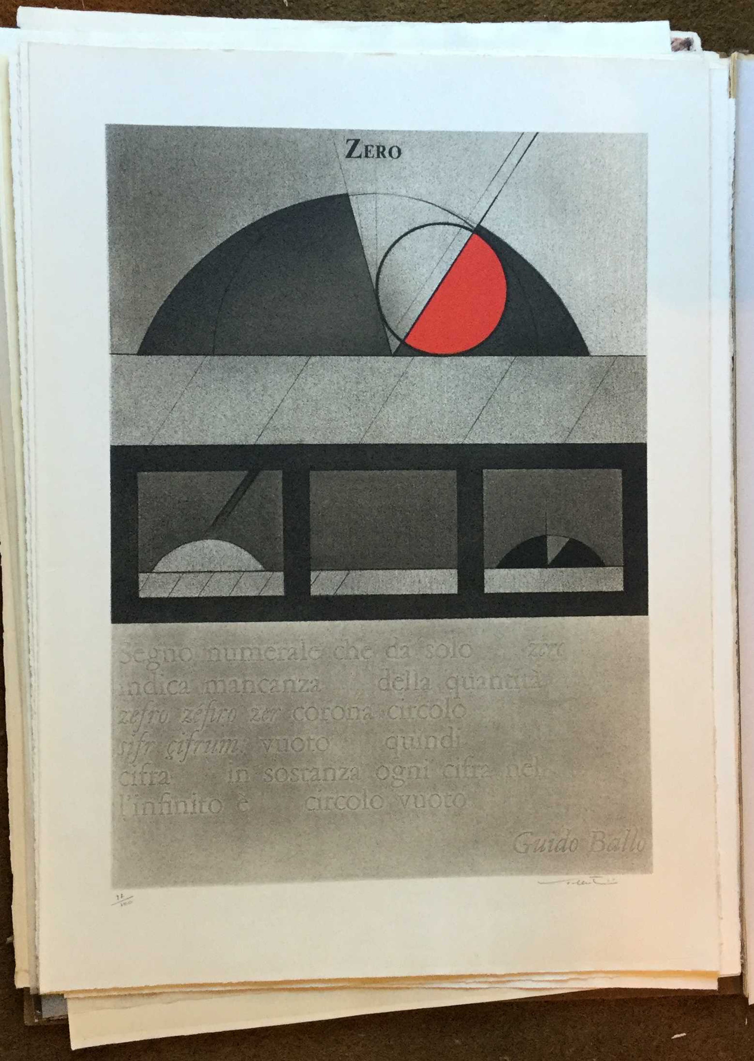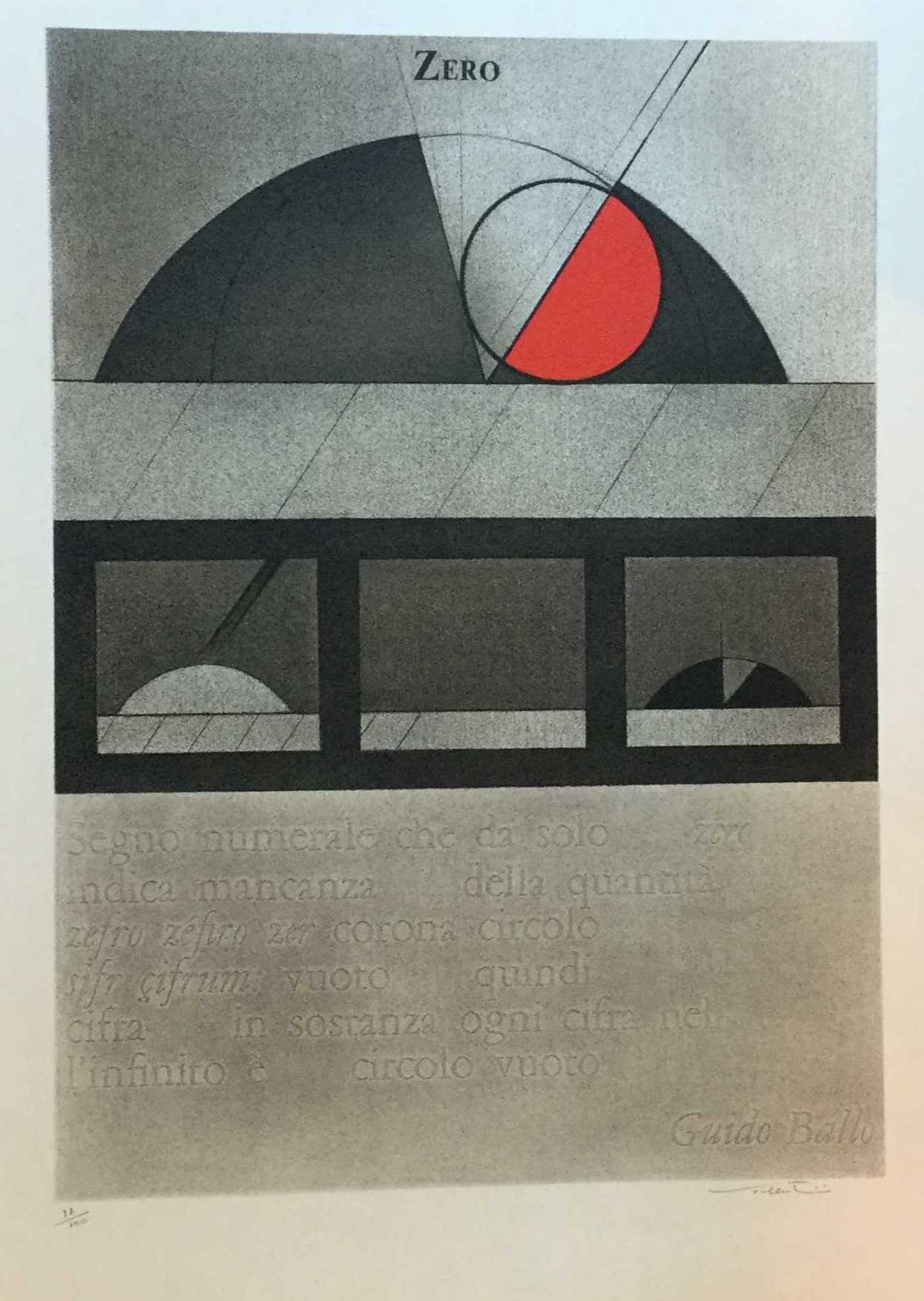 C4393-2O , kunstenaar onbekend zeefdruk, titel: zero, 97/100, ro gesigneerd met tekst van Guido Ballo, beeldmaat 76.5 x 56.5 cm