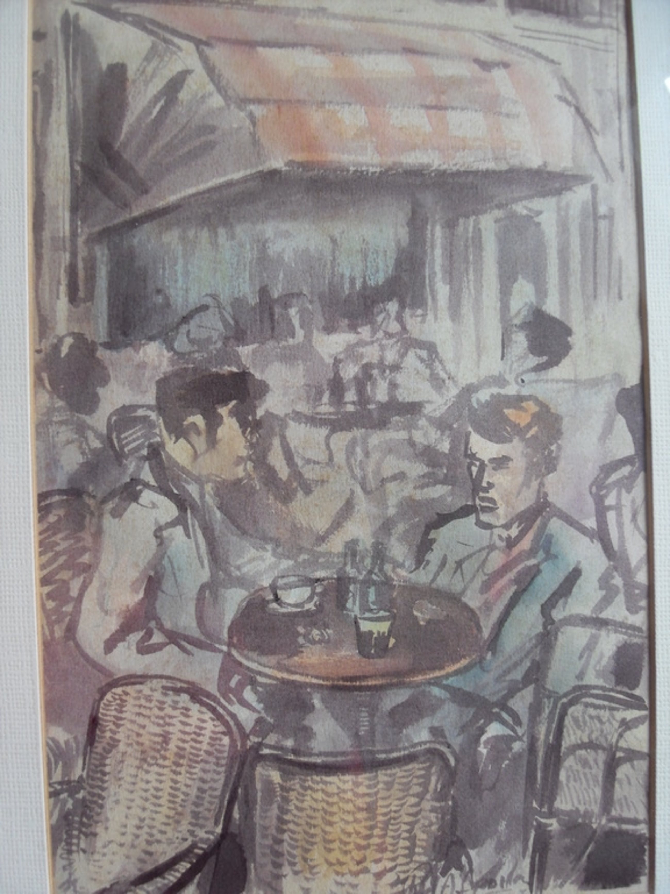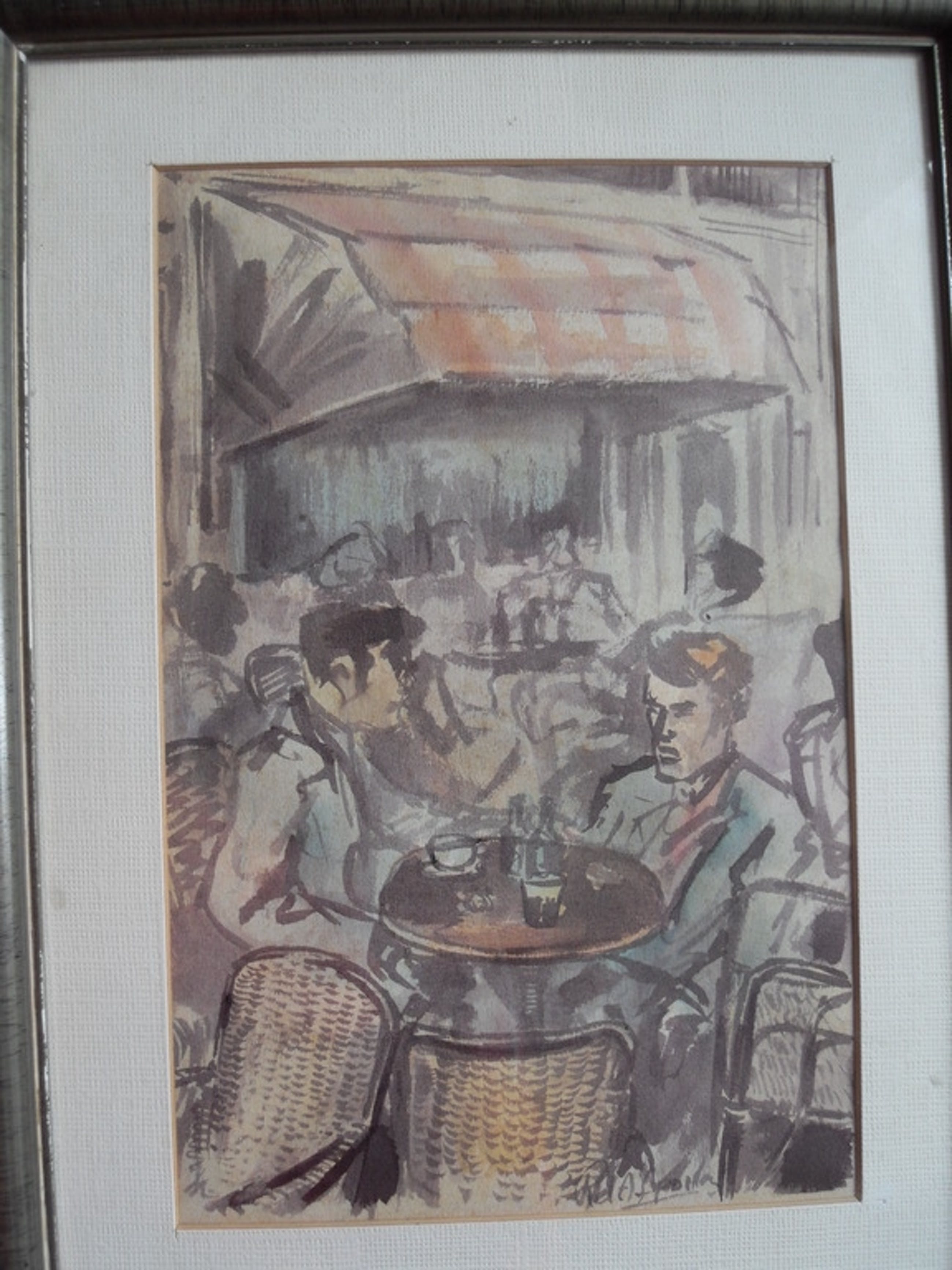 Bijzonder leuke aquarel met cafescene te Parijs gemaakt 1935en gesigneerd door voor mij onbekende kunstenaar. Wordt geleverd met passepartout en in lijstje.