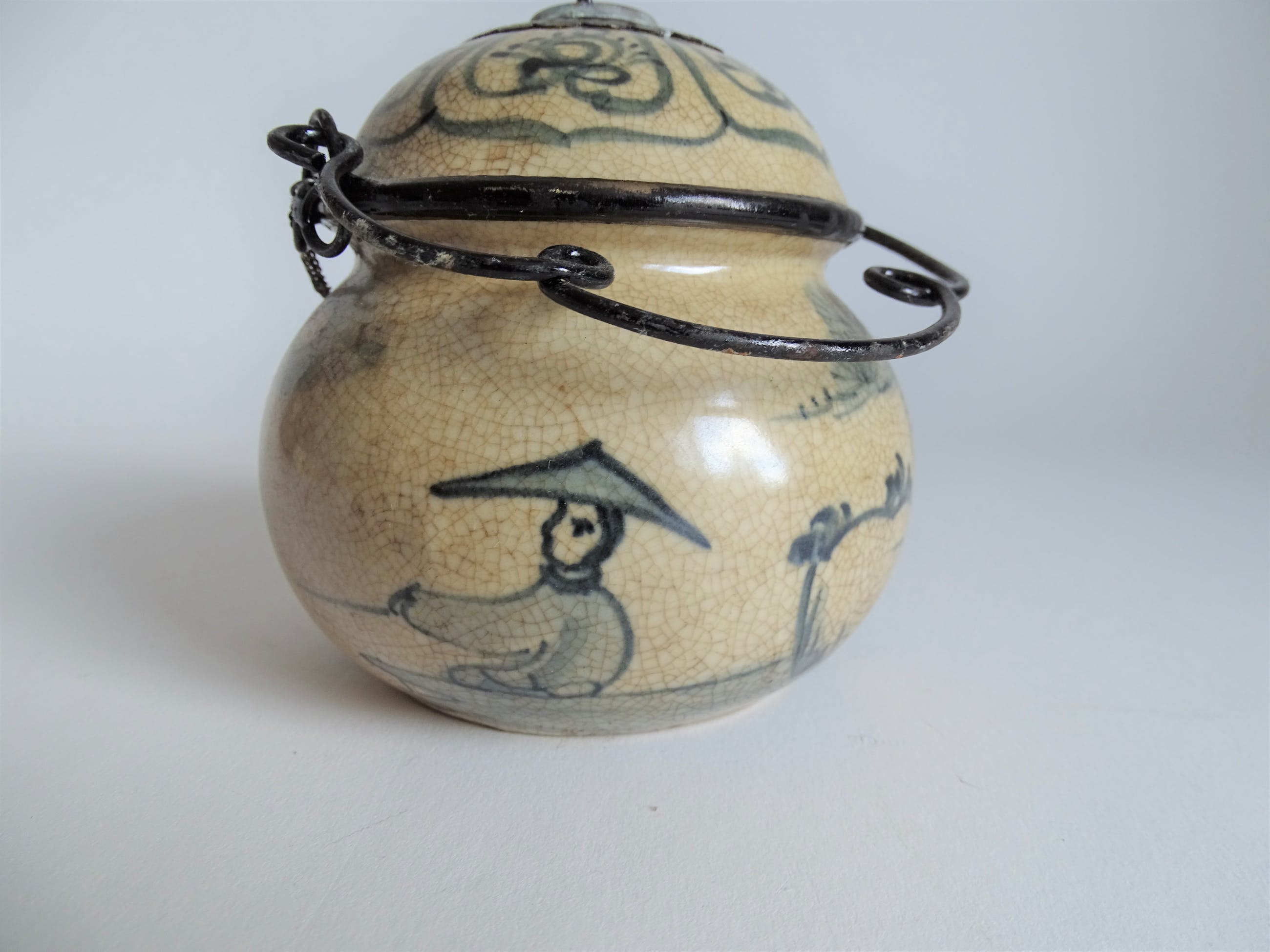 Chinees porselein potje met decoratie en karakters
