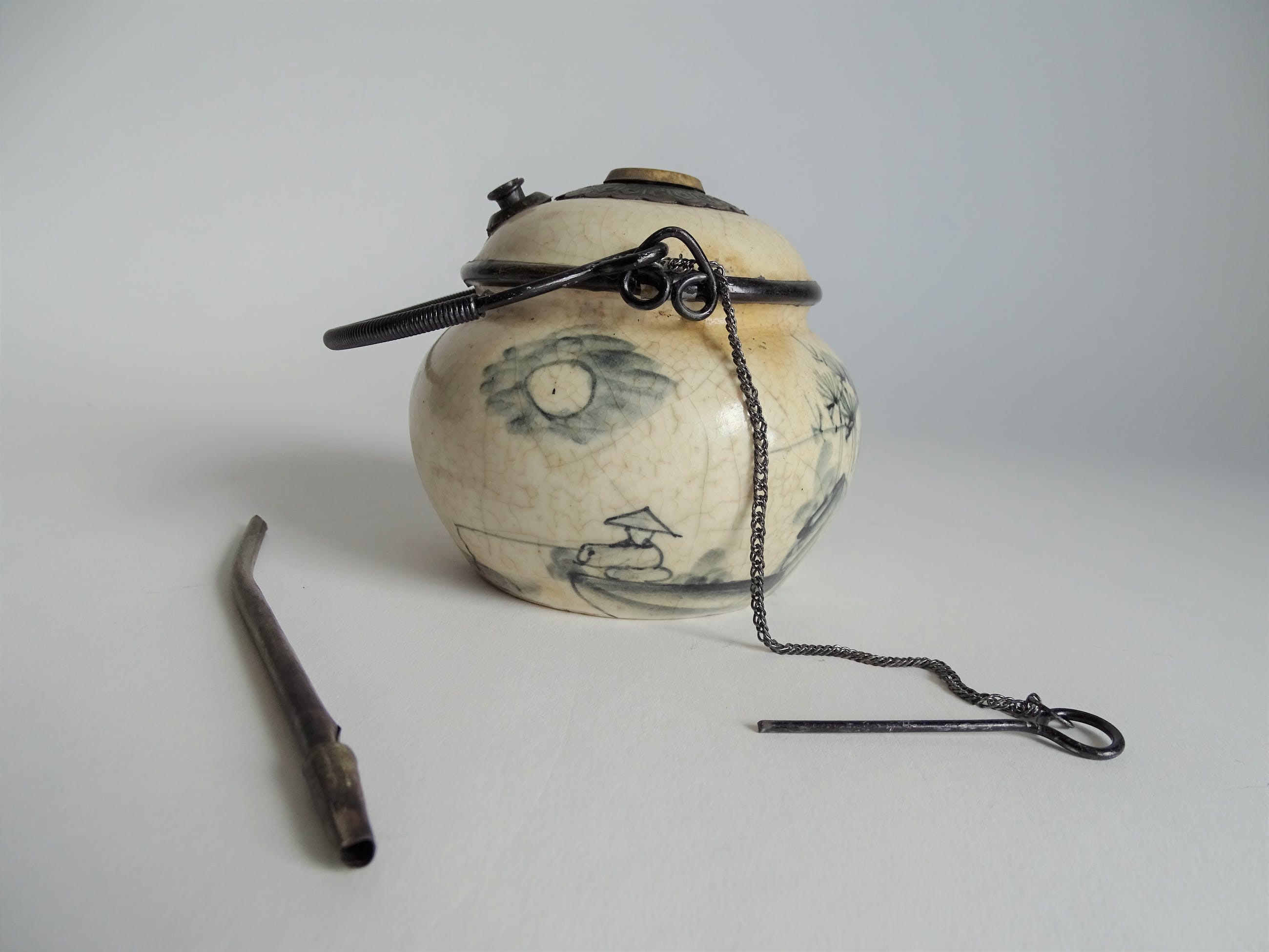 Opium pot is gecraqueleerd en is zo te zien niet gebruikt.