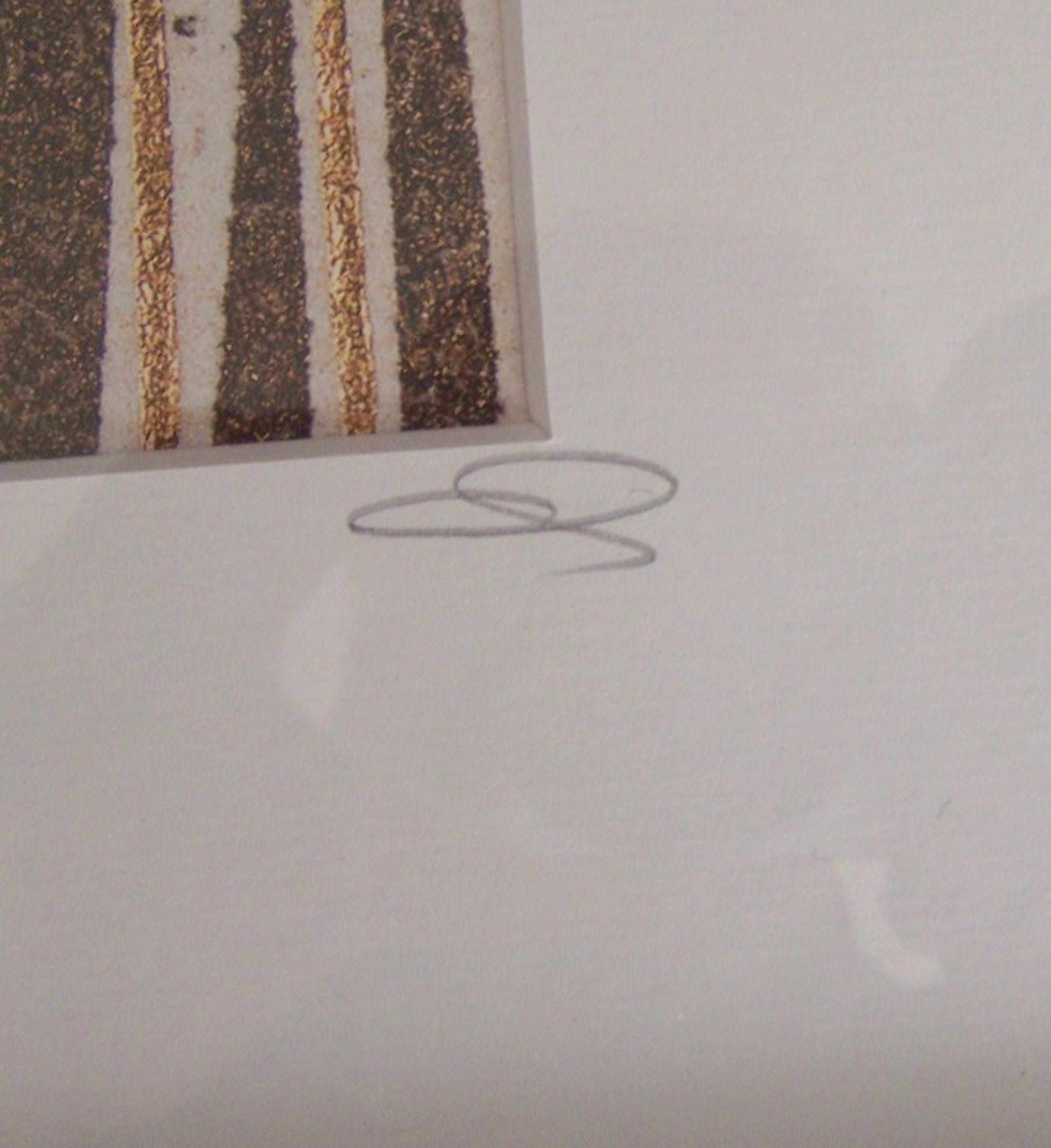zeefdruk "badwant" gesigneerd rechtsonder met paraaf.