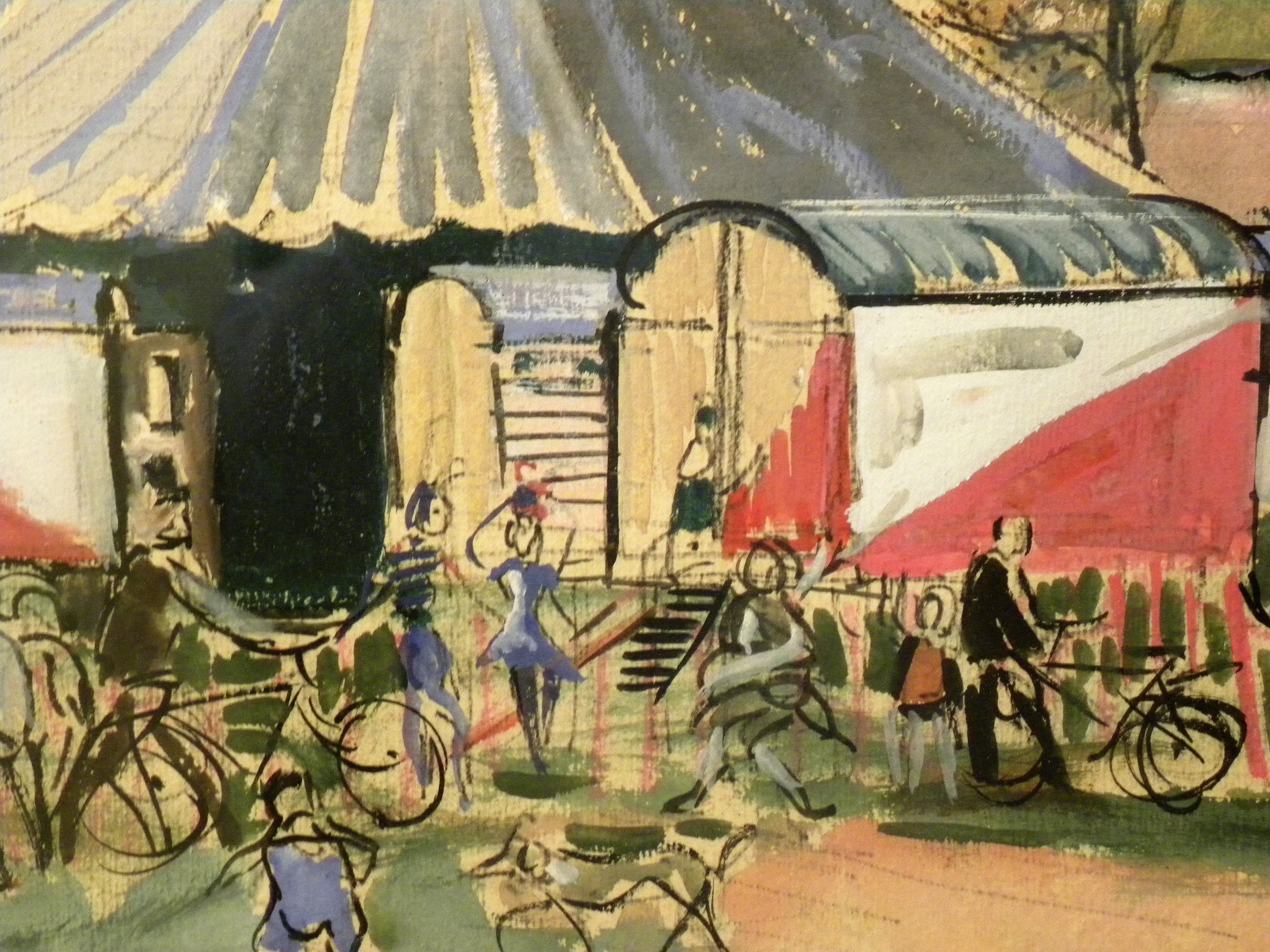 leuk ingelijste gouache/aquarel achter glas - handtekening en datum rechtsonder