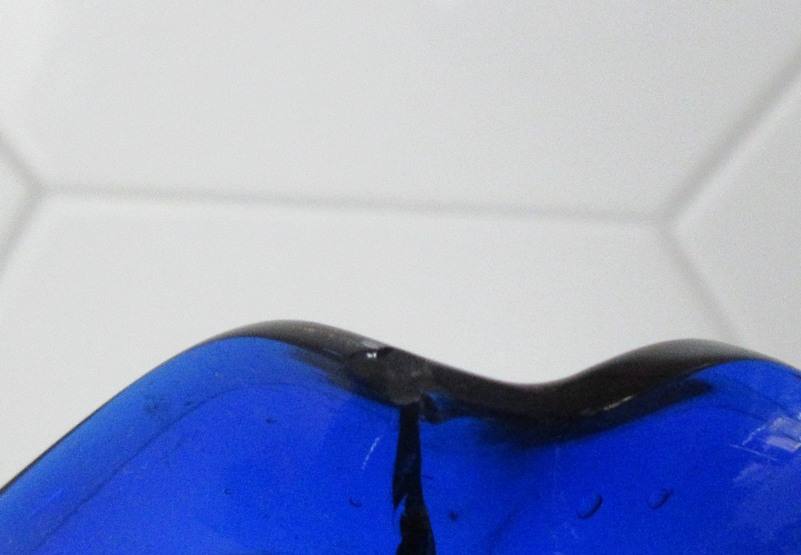 De kan heeft een glaschipje op de rand.