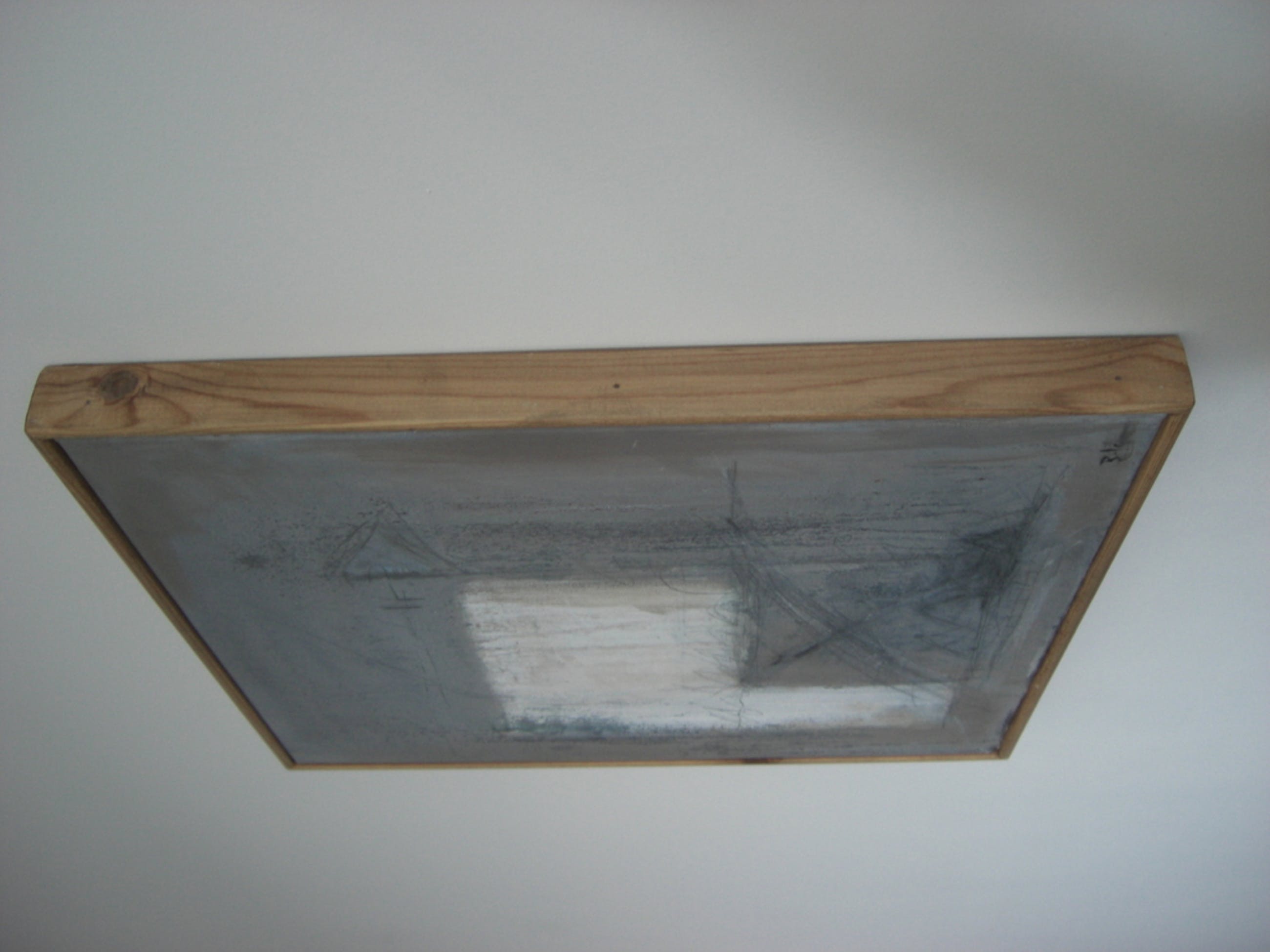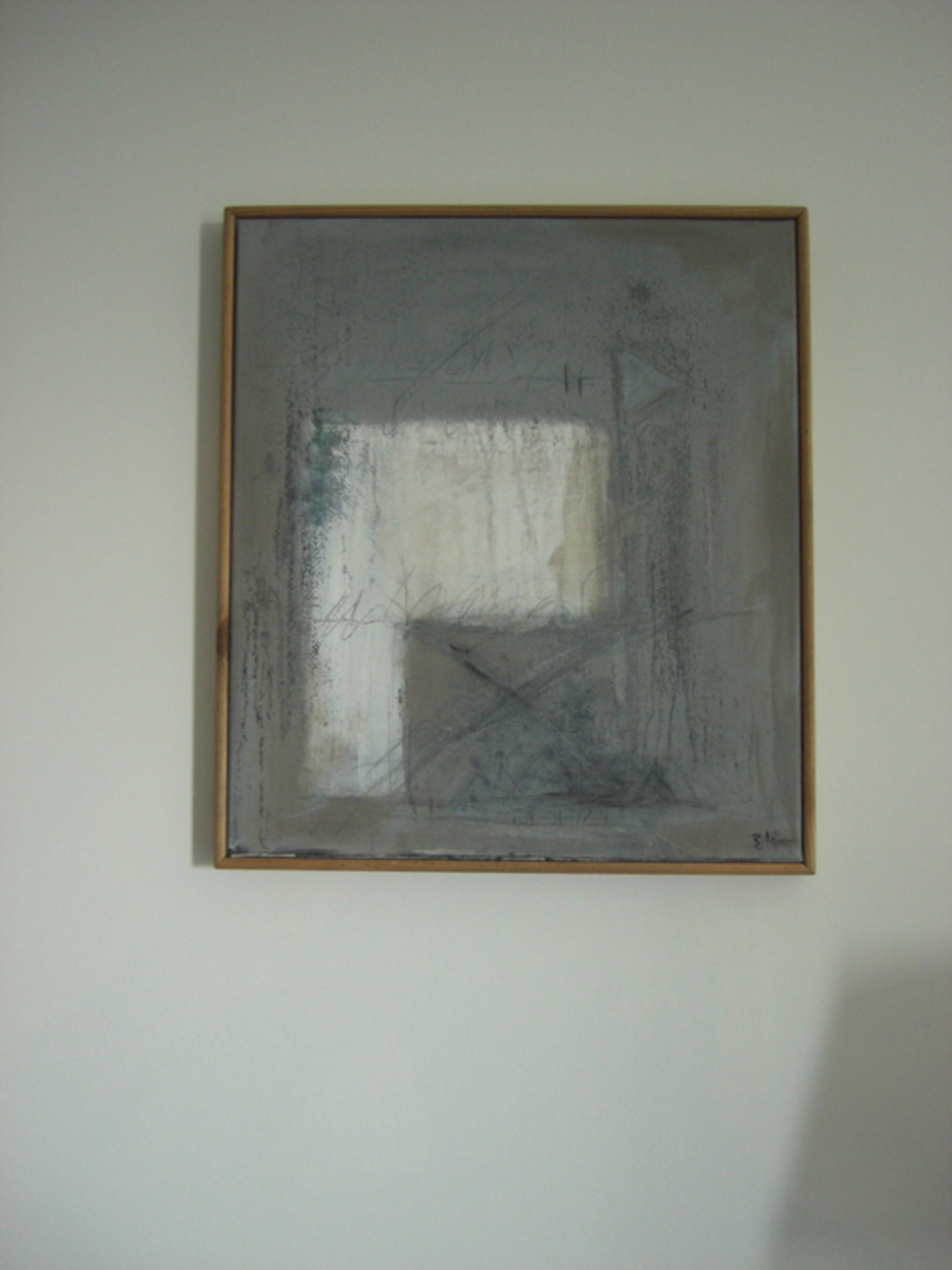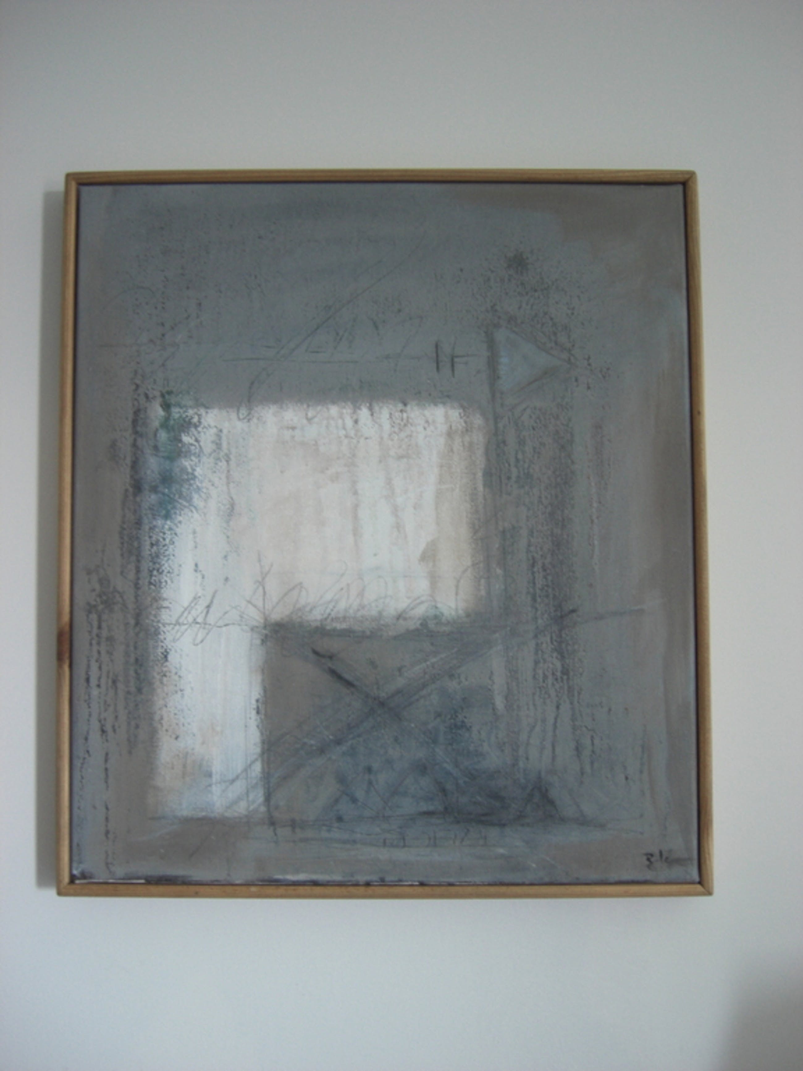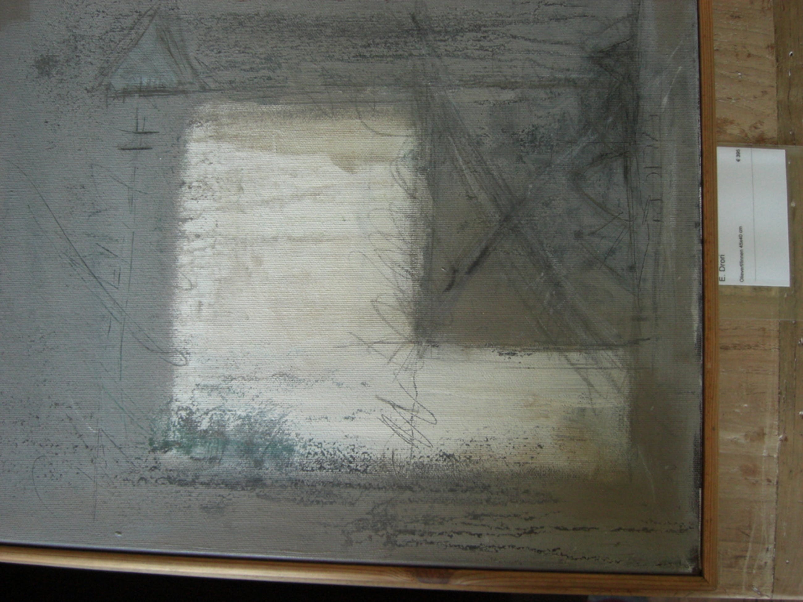 schilderij olieverf op linnen 45 bij 40 cm in grijstinten in blanken houten baklijst in perfecte conditie. Aangeschaft bij Smelik en Stokking Den Haag galerie prijs 395 Euro