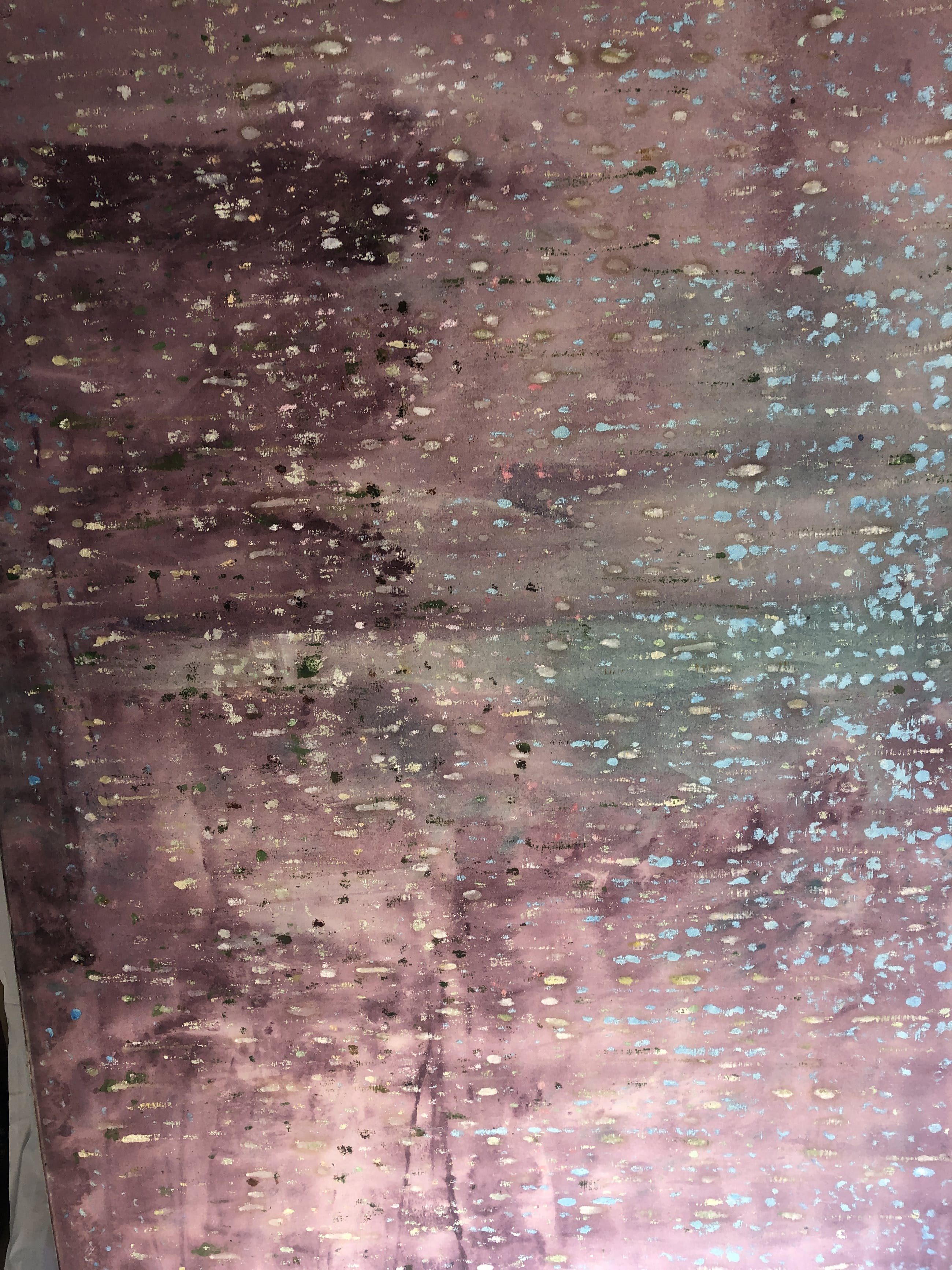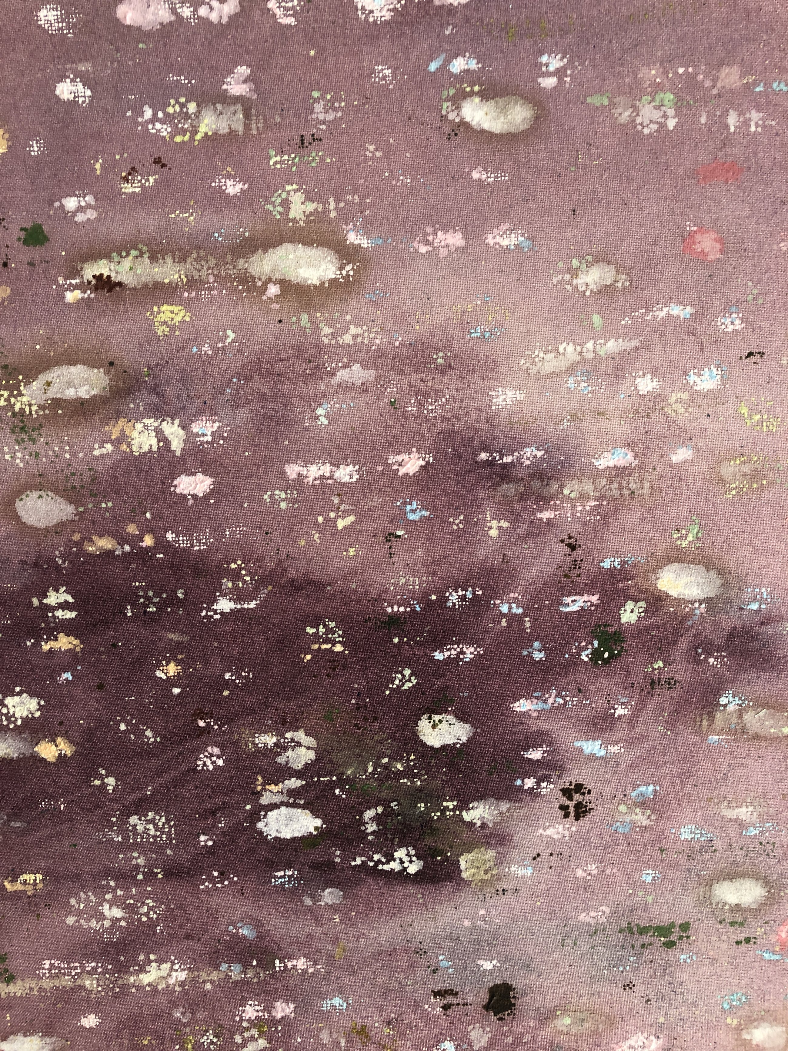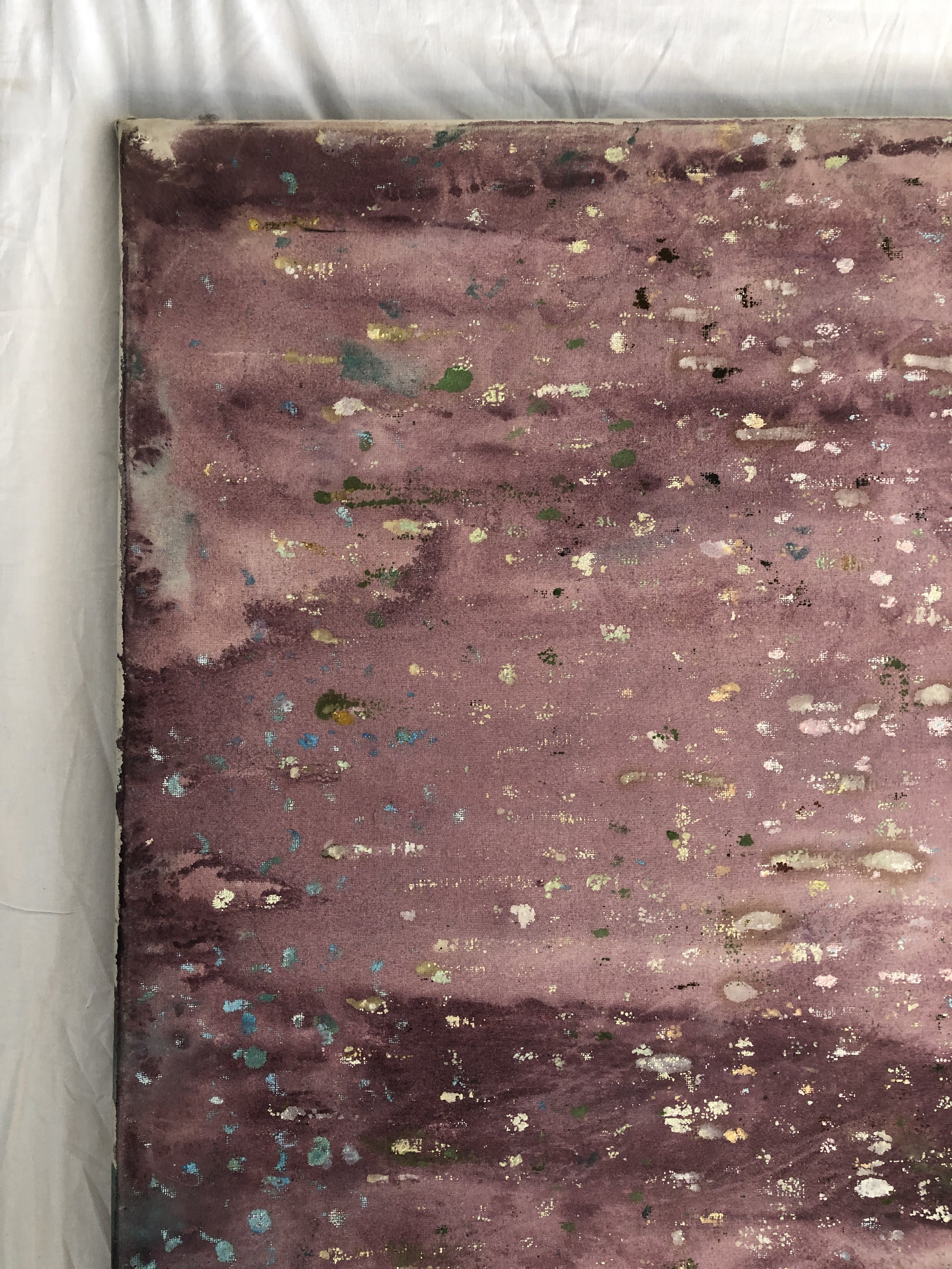 Paarse verf met doller of spachtel als achtergrond aangebracht.