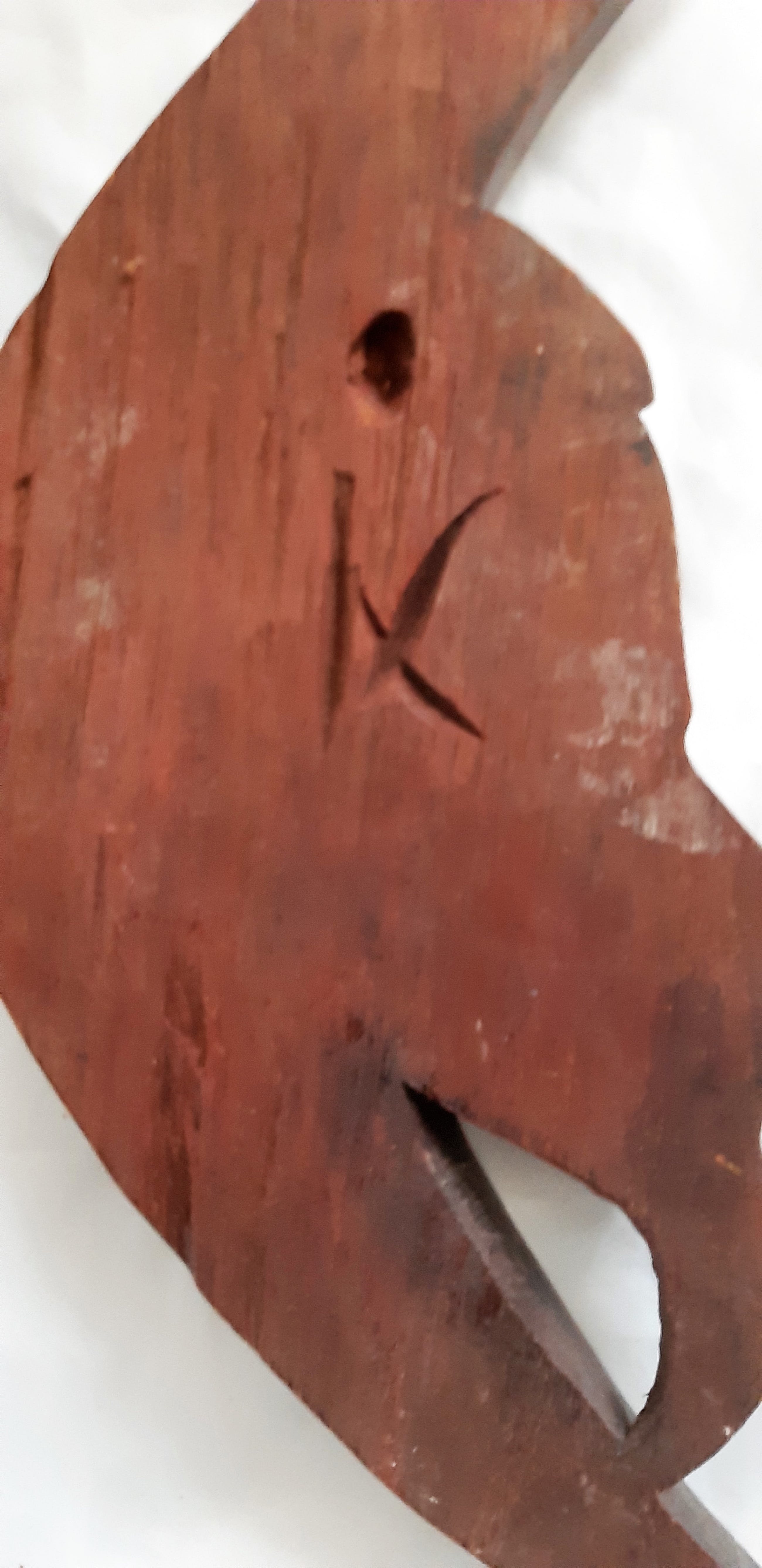 2.Een maand - twee helften - jeugd en ouderdom.Hout,gesigneerd. Afmetingen: H 42 x B 21 x D 1 cm
